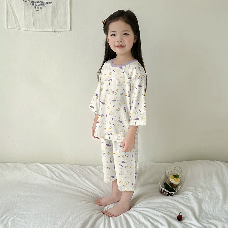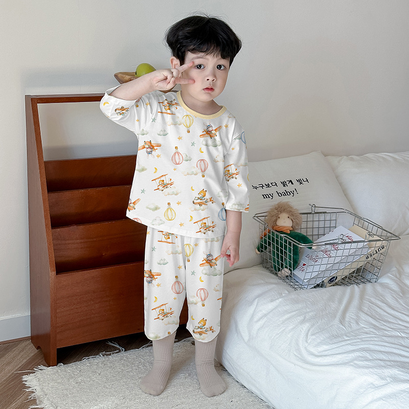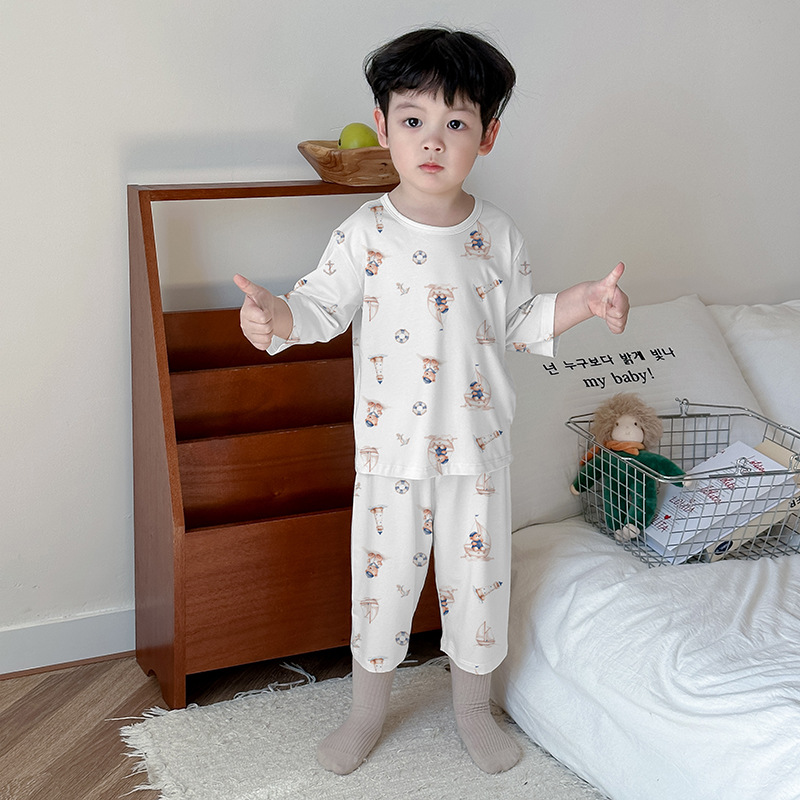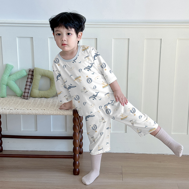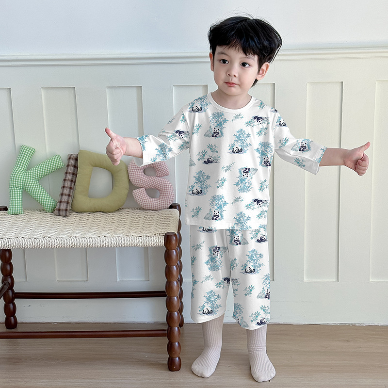어린이 여름 잠옷 느슨한 소년 소녀 7 점 소매 세트 머리카락을 대신하여 lyocell 어린이 에어컨 의류 제조업체