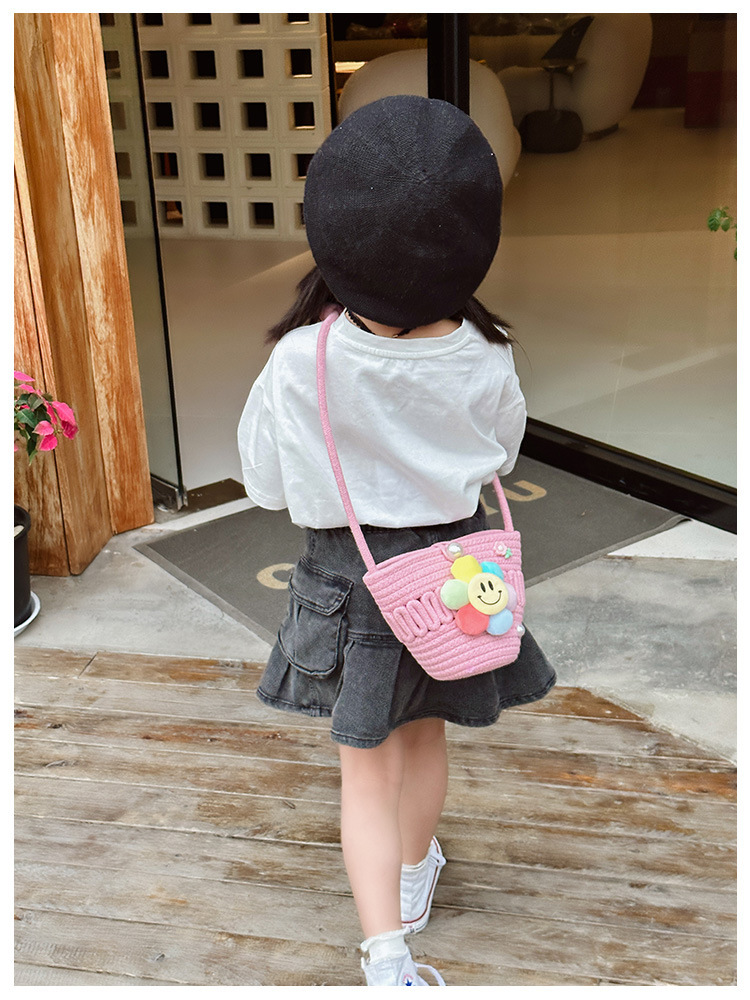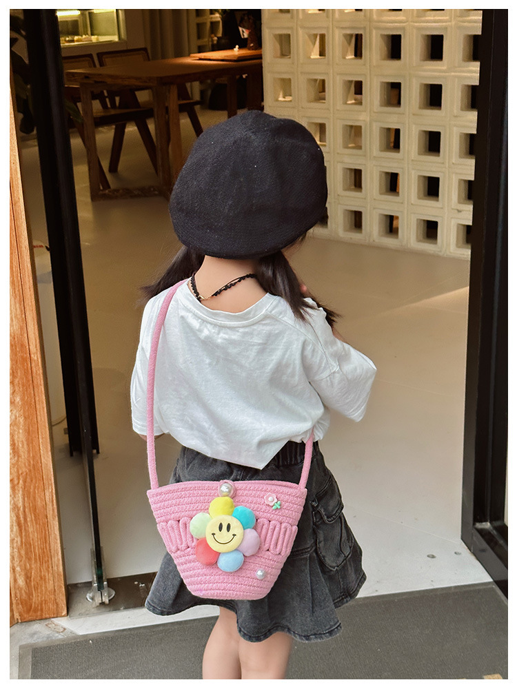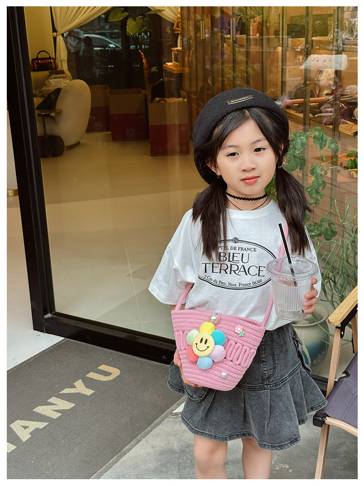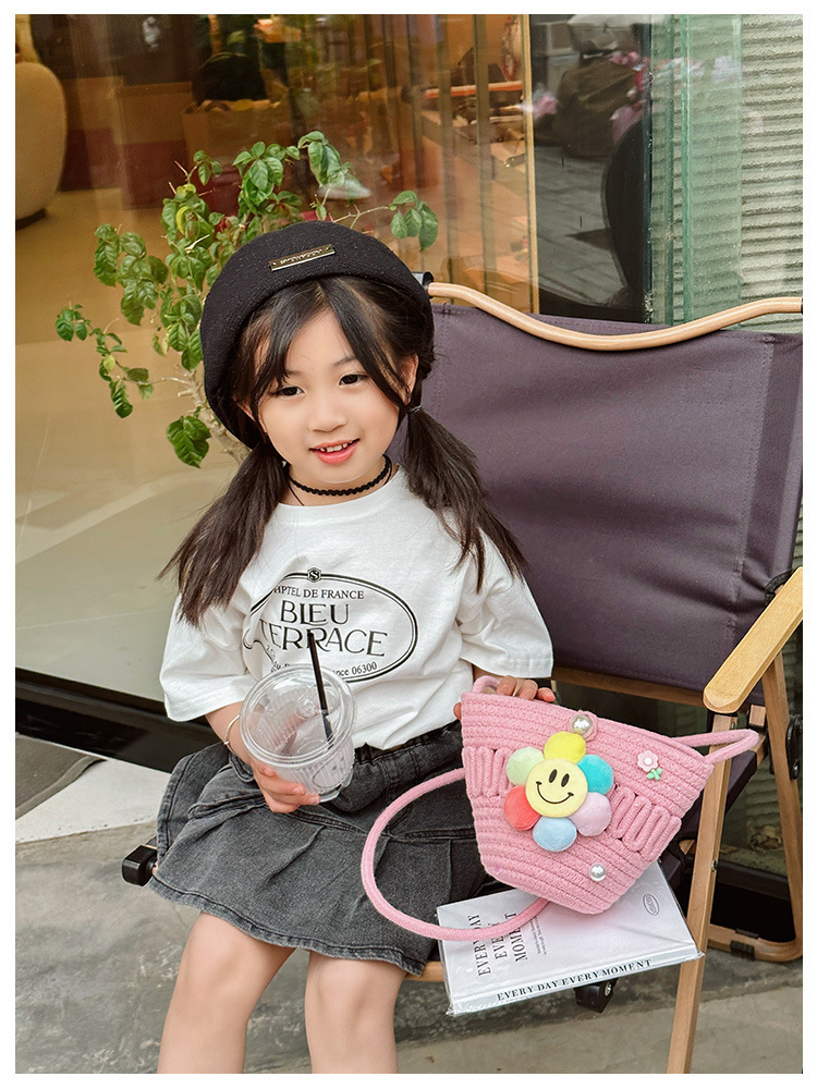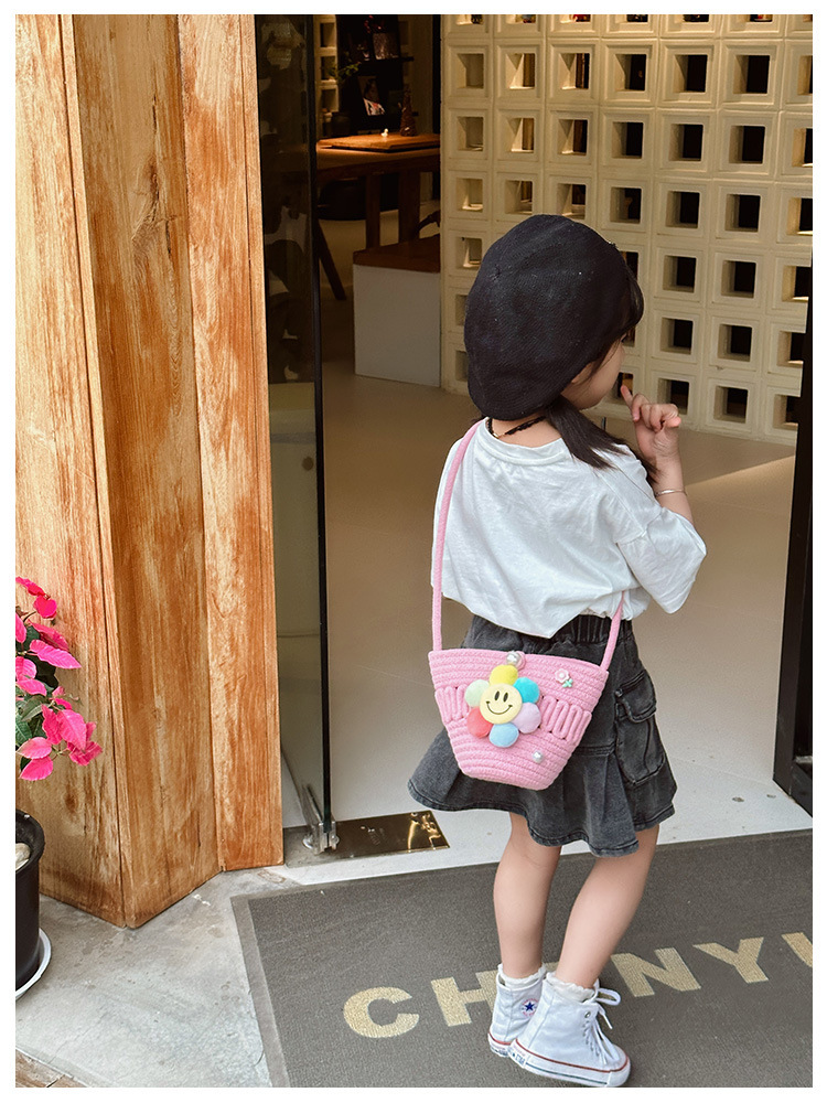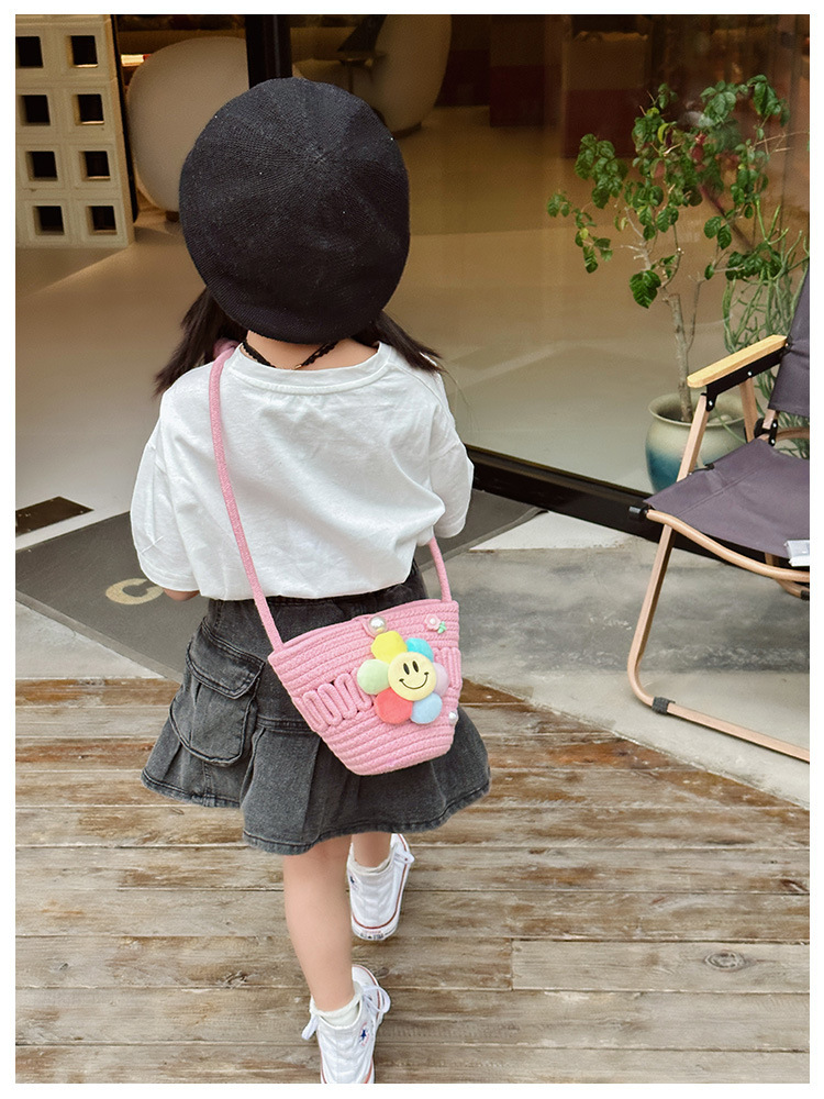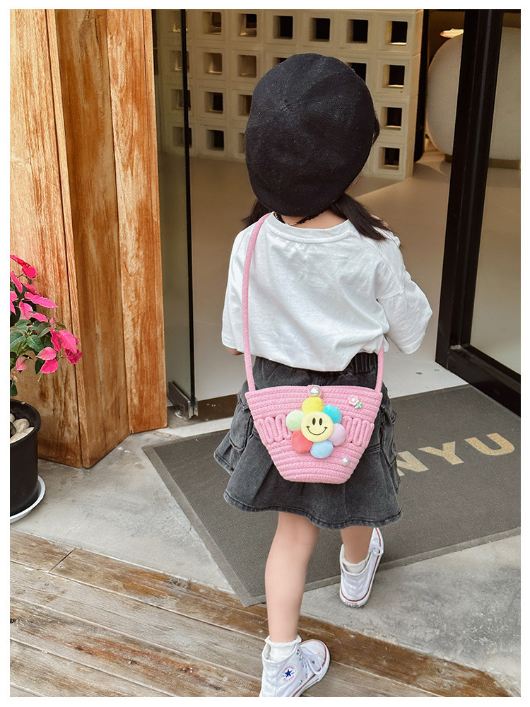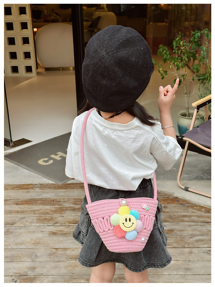 2026 어린이용 귀여운 핸드백 꽃무늬 스마일 인형 여행용 크로스백 외출 여행용 휴대폰 소형 가방스토어 가기