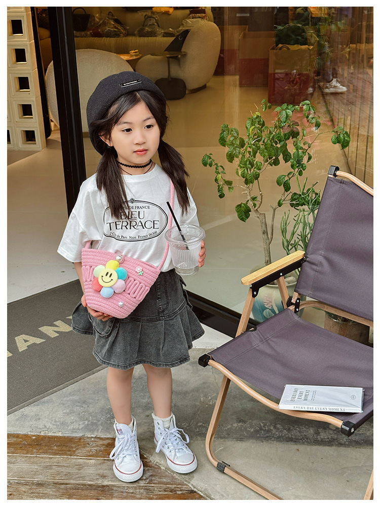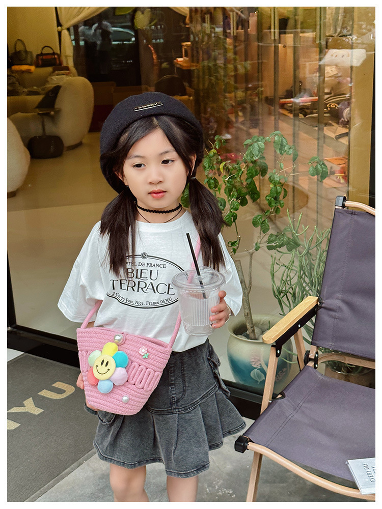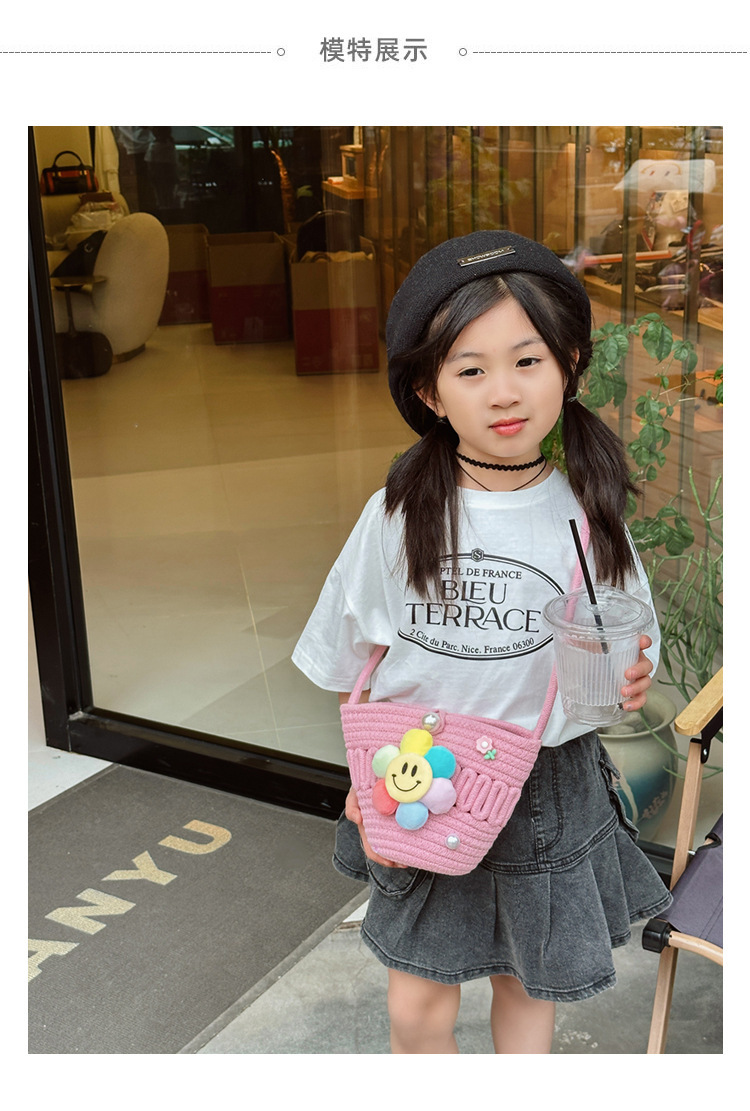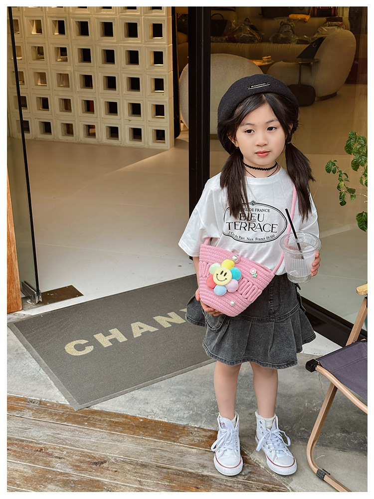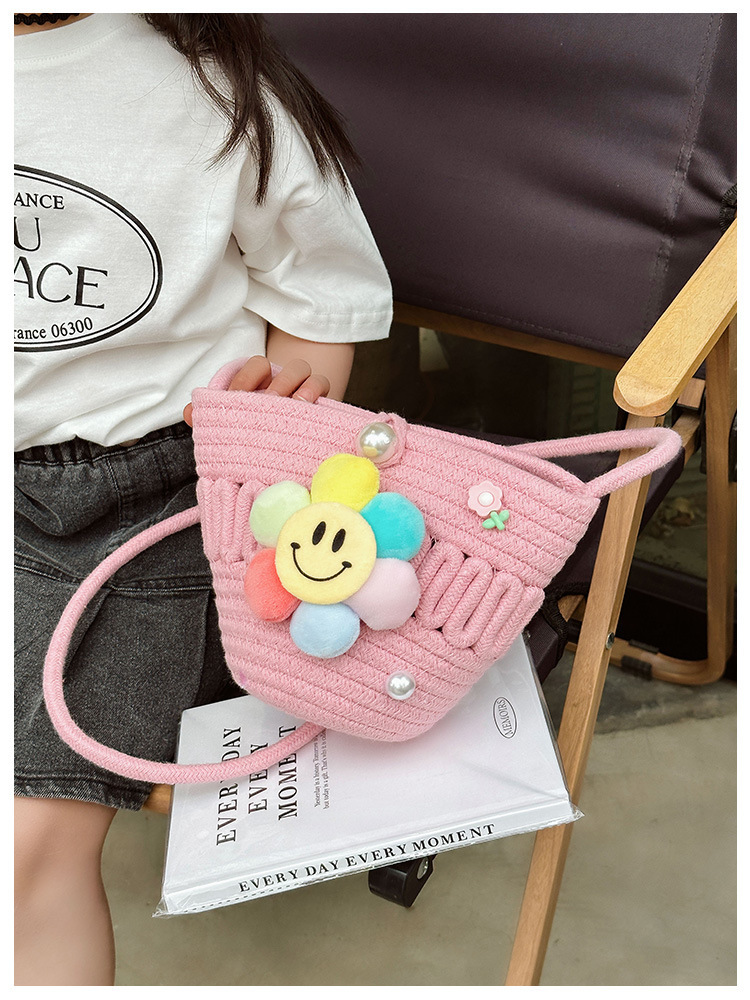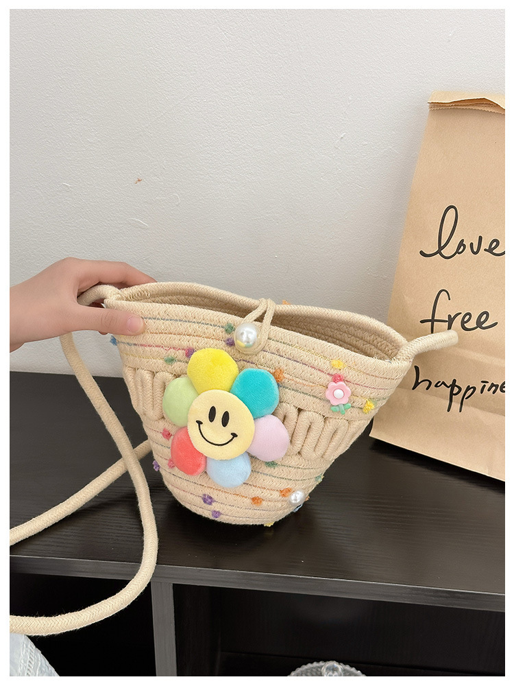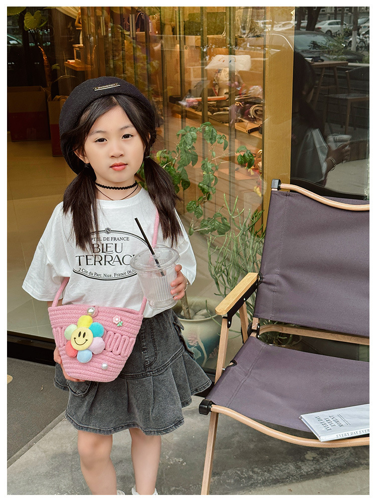 2026 어린이용 귀여운 핸드백 꽃무늬 스마일 인형 여행용 크로스백 외출 여행용 휴대폰 소형 가방스토어 가기