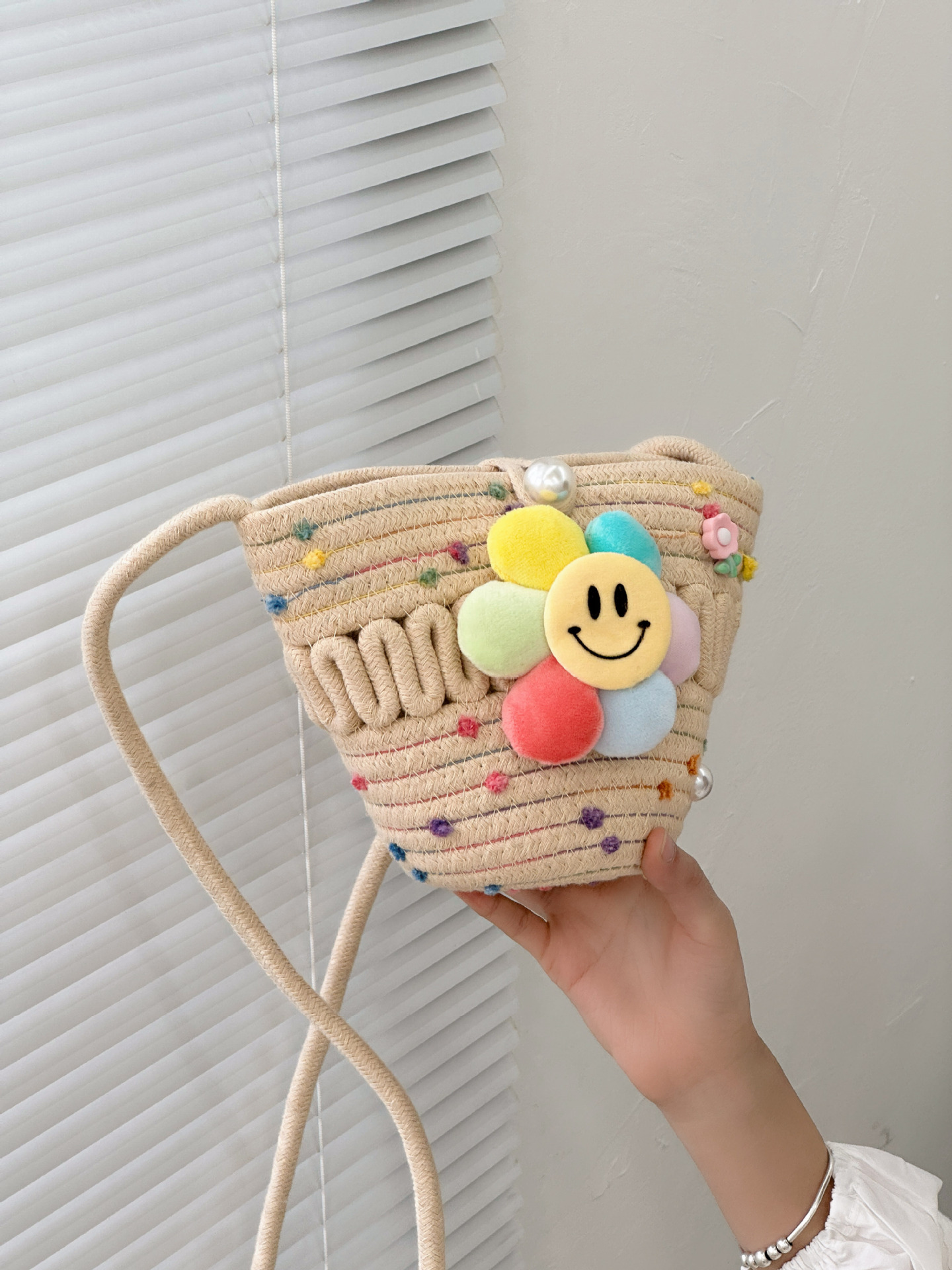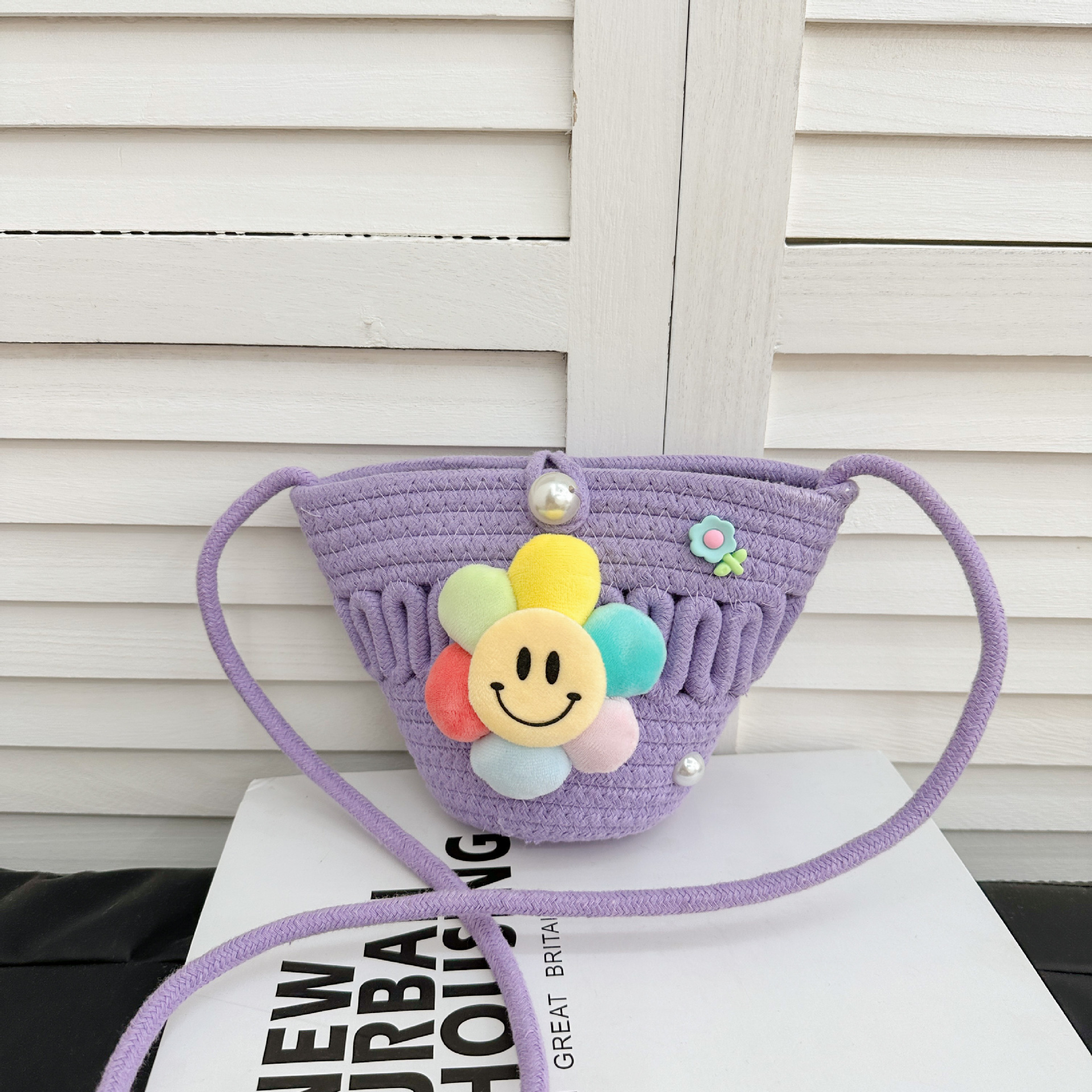 2026 어린이용 귀여운 핸드백 꽃무늬 스마일 인형 여행용 크로스백 외출 여행용 휴대폰 소형 가방