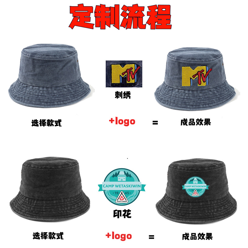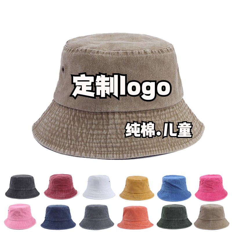 크로스보더 아동용 순면 워싱 어부 모자 맞춤형 로고 자수 야외 등산 여성용 모자 캐주얼 자외선 차단 버킷햇스토어 가기