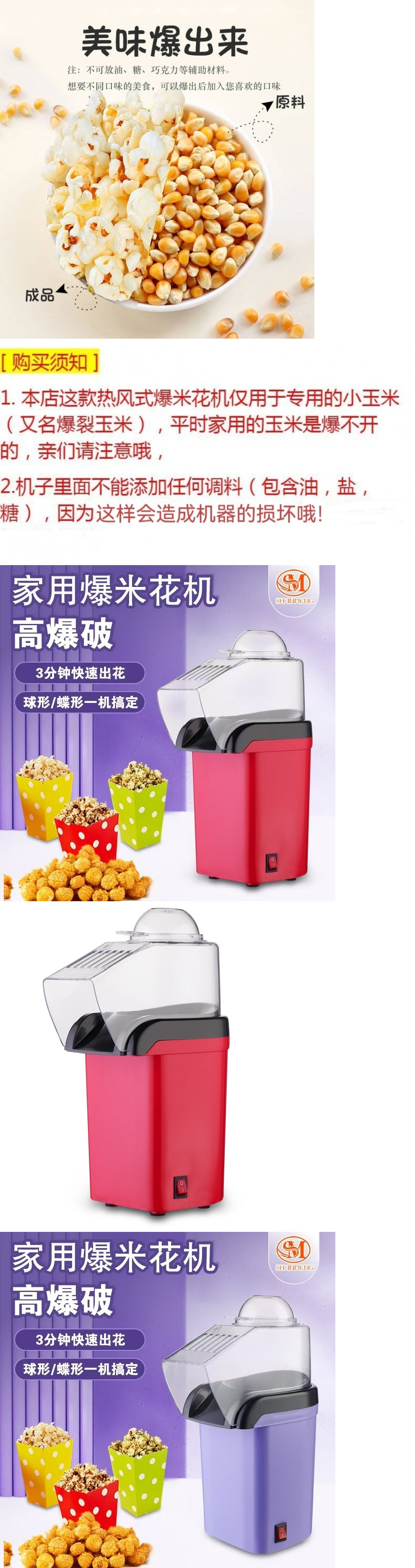 가정용 팝콘 기계 소형 완전 전기 가정용 베스트셀러 모델 3분 1냄비 고폭발 나비 모양 하트 모양