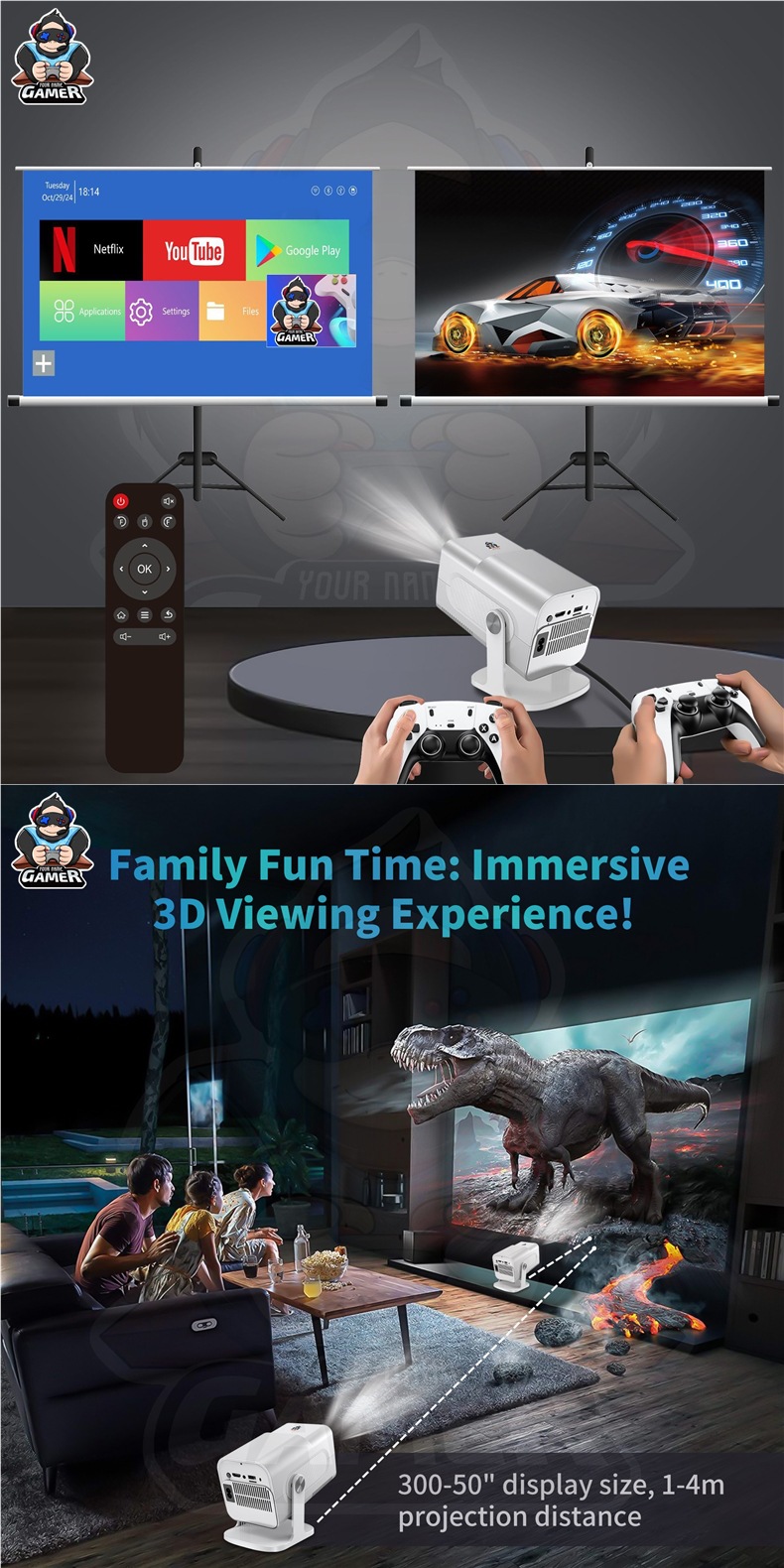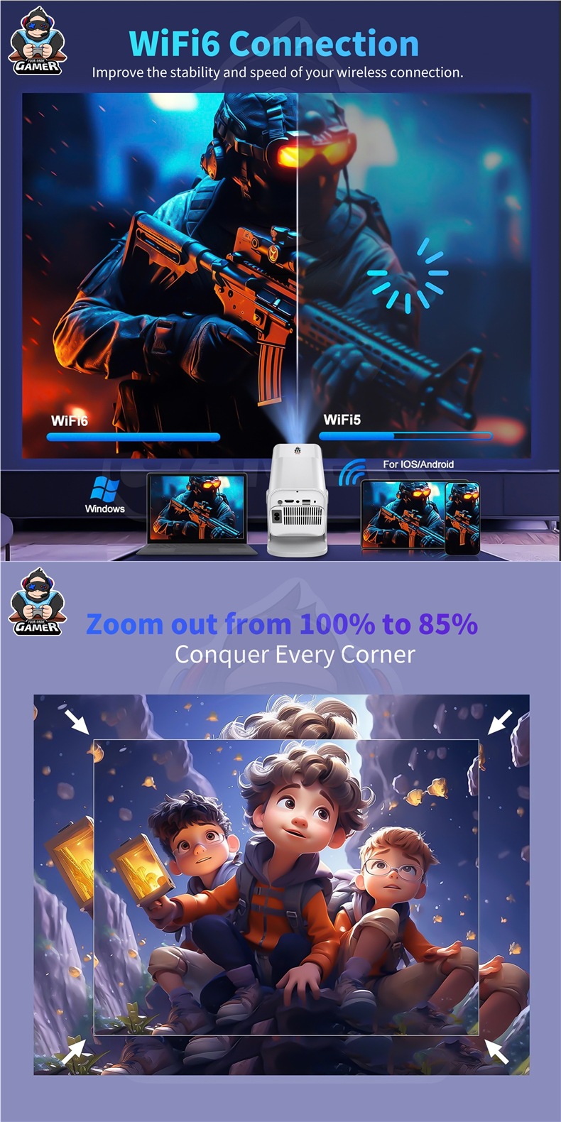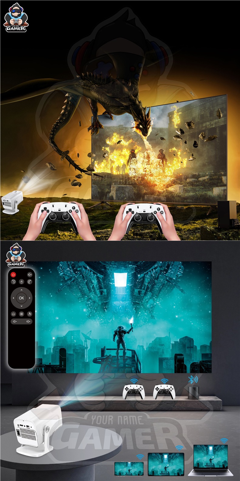 국경 간 HCS350PRO 안드로이드 게임 프로젝터 WiFi6G 게임 콘솔 아케이드 무선 고화질 홈 시어터
