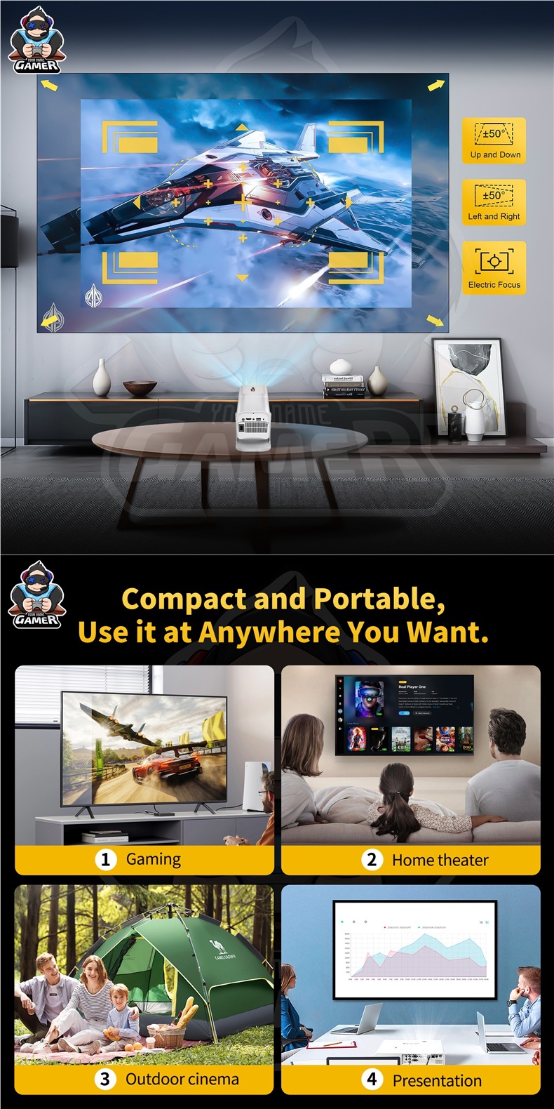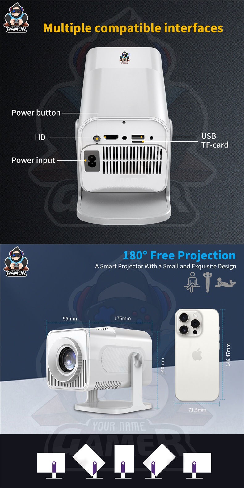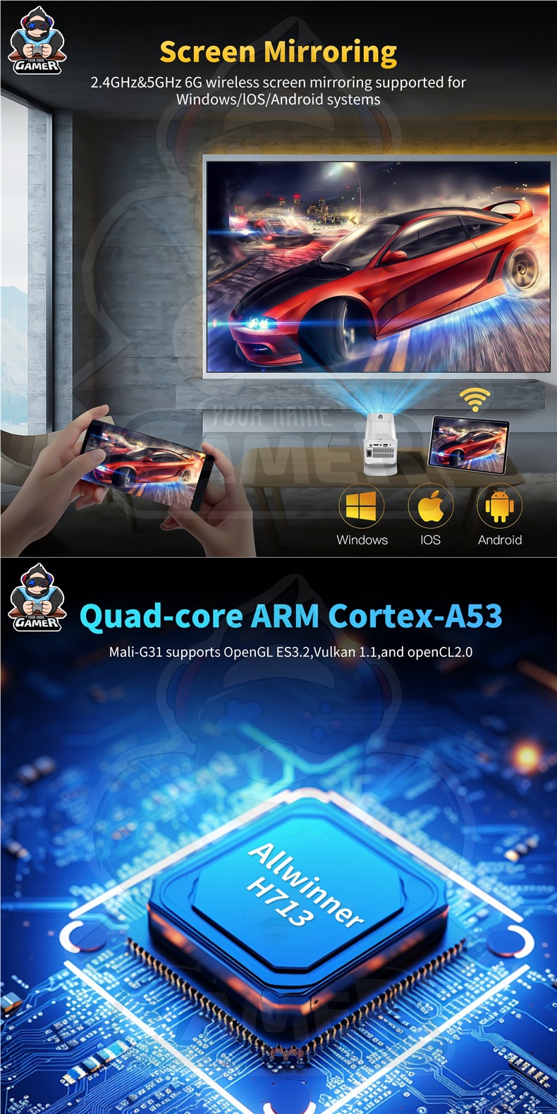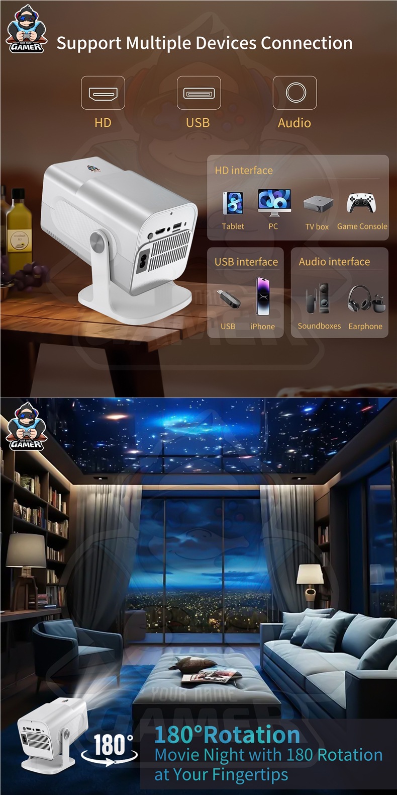국경 간 HCS350PRO 안드로이드 게임 프로젝터 WiFi6G 게임 콘솔 아케이드 무선 고화질 홈 시어터스토어 가기