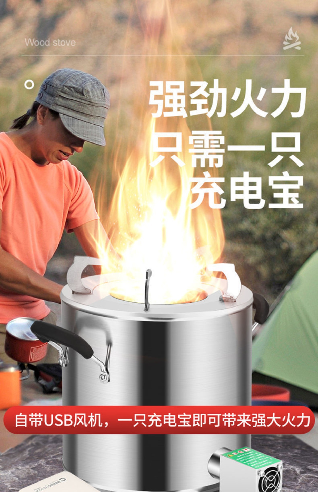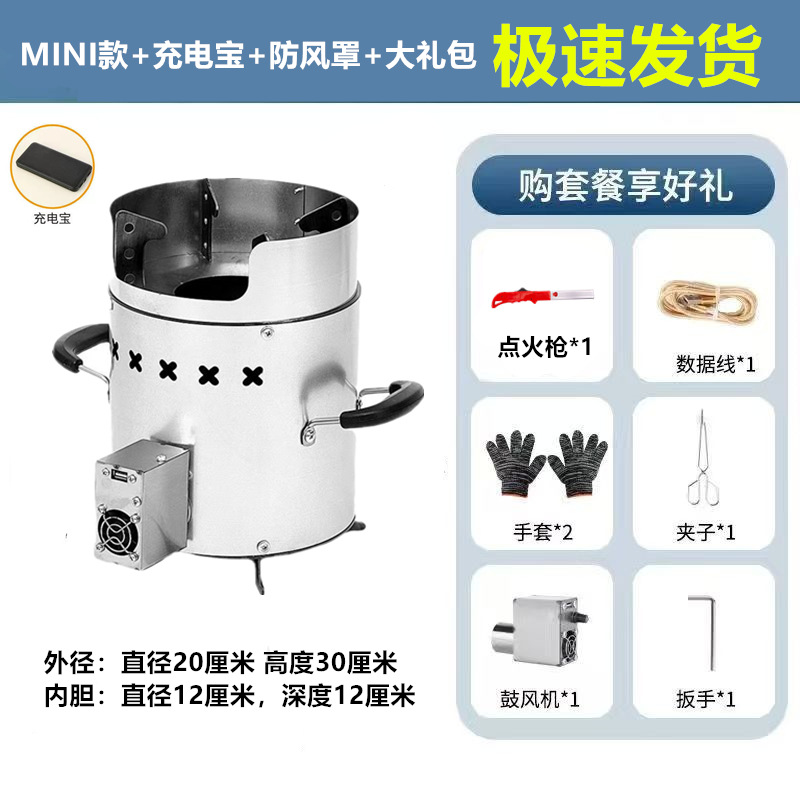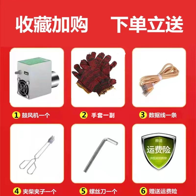 • 장작 난로 + 송풍기 + 보조 배터리 + 선물 패키지