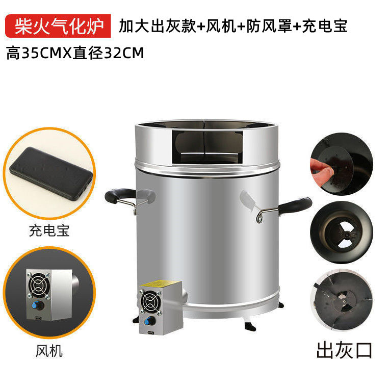 장작 스토브 에너지 절약형 가정용 목재 기화 장치 농촌 무연 휴대용 환경 친화적인 스테인레스 스틸 피크닉 야외 장작 스토브