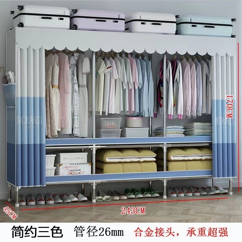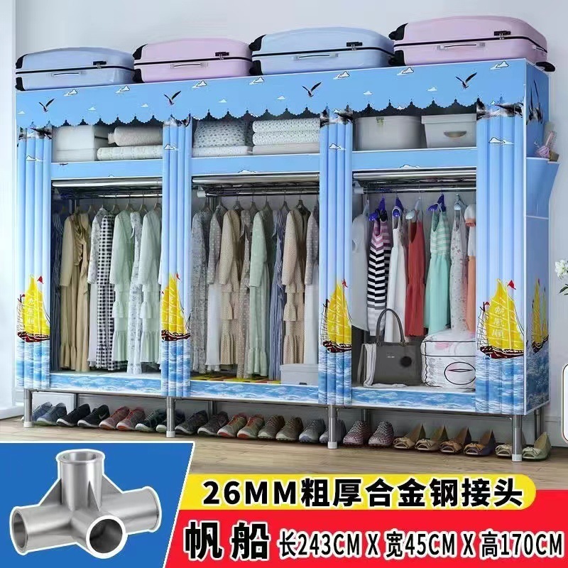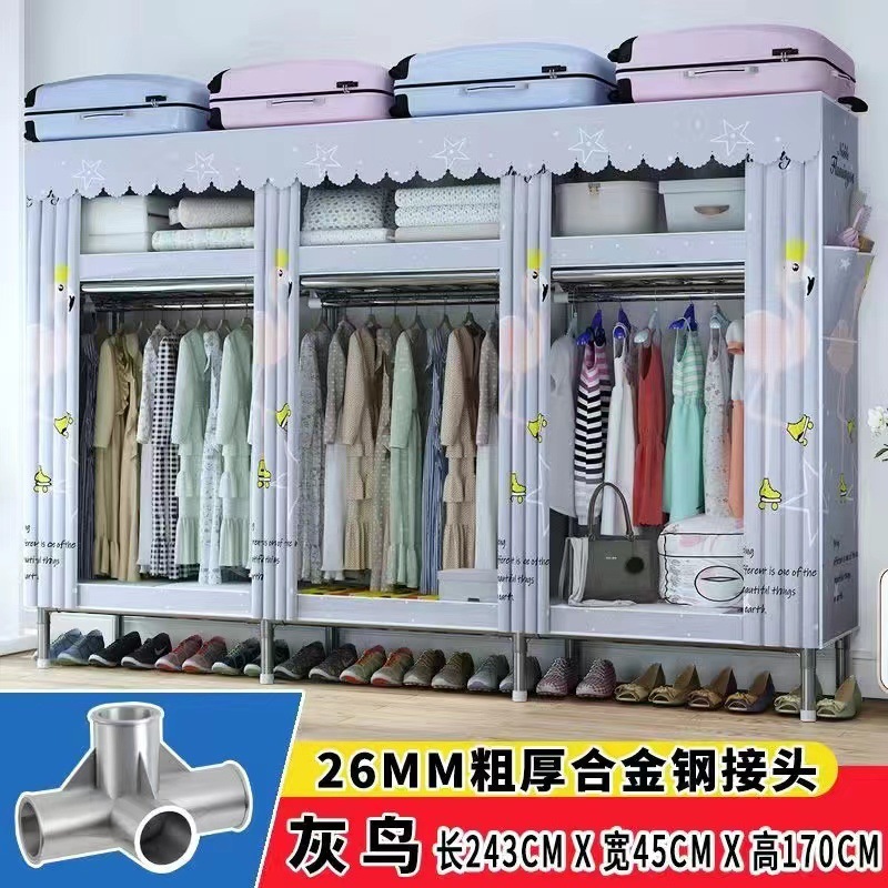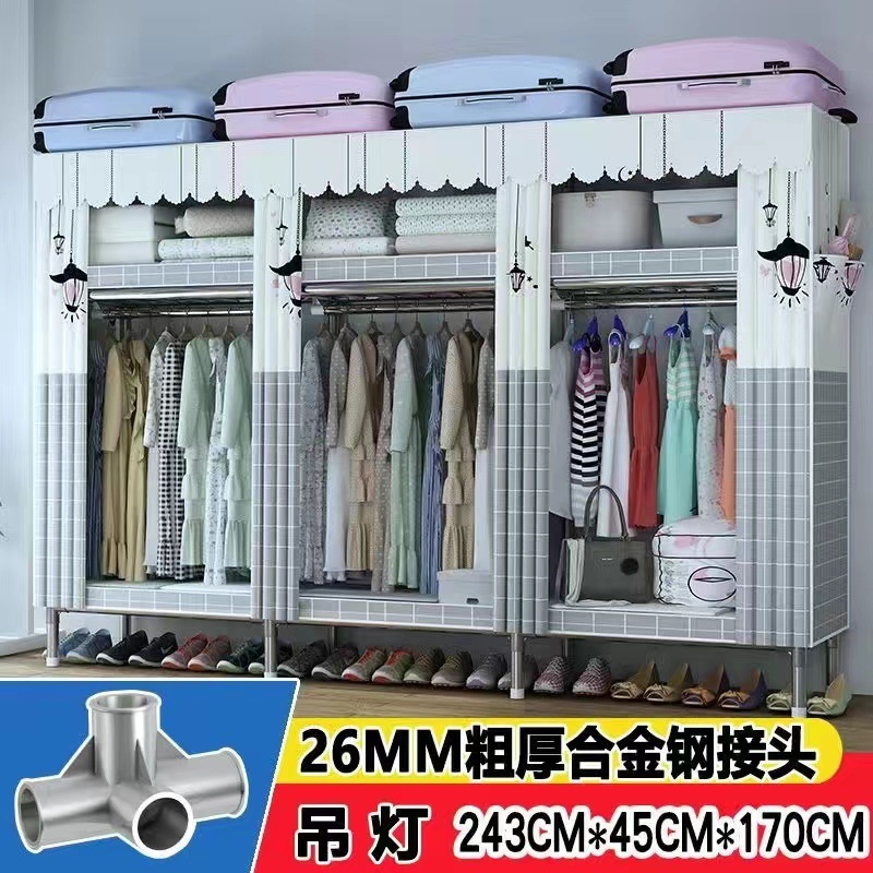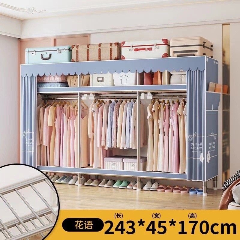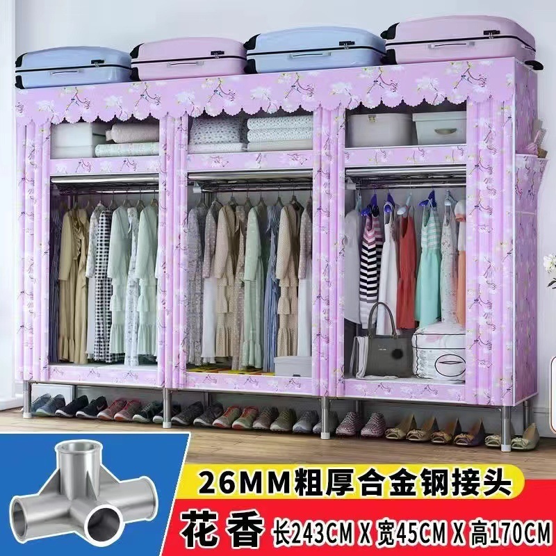 천 옷장 간단한 옷장 강철 파이프 두꺼운 강화 두꺼운 조립 접이식 강철 프레임 대형 더블 옷장 보관 캐비닛