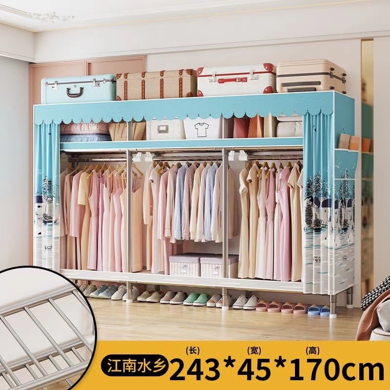 천 옷장 간단한 옷장 강철 파이프 두꺼운 강화 두꺼운 조립 접이식 강철 프레임 대형 더블 옷장 보관 캐비닛스토어 가기