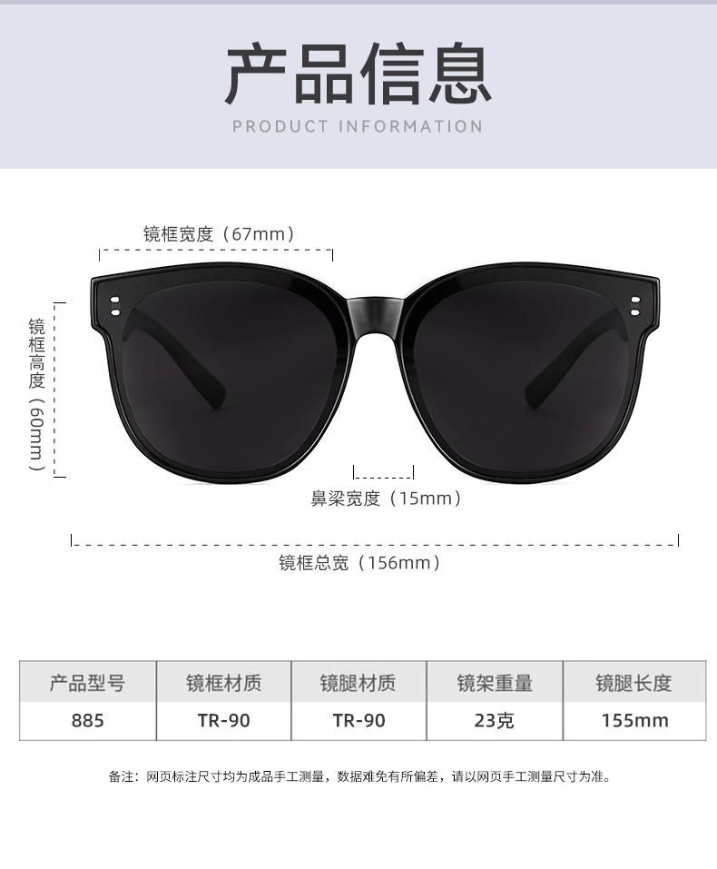 트렌디한 TR 선글라스 근시 안경 사각 프레임 885 초경량 고품질 선글라스 프레임 대형 테두리 없는 디자인
