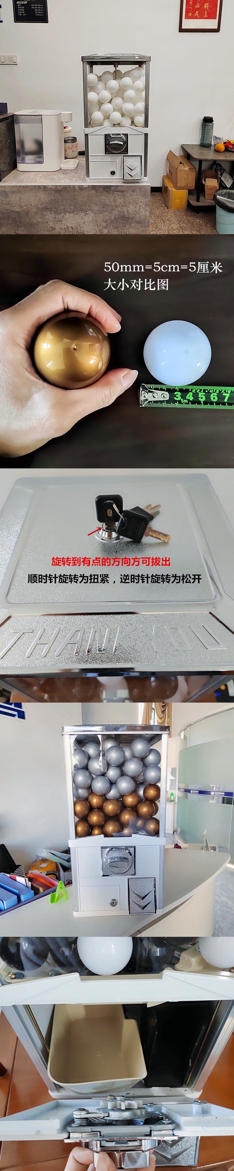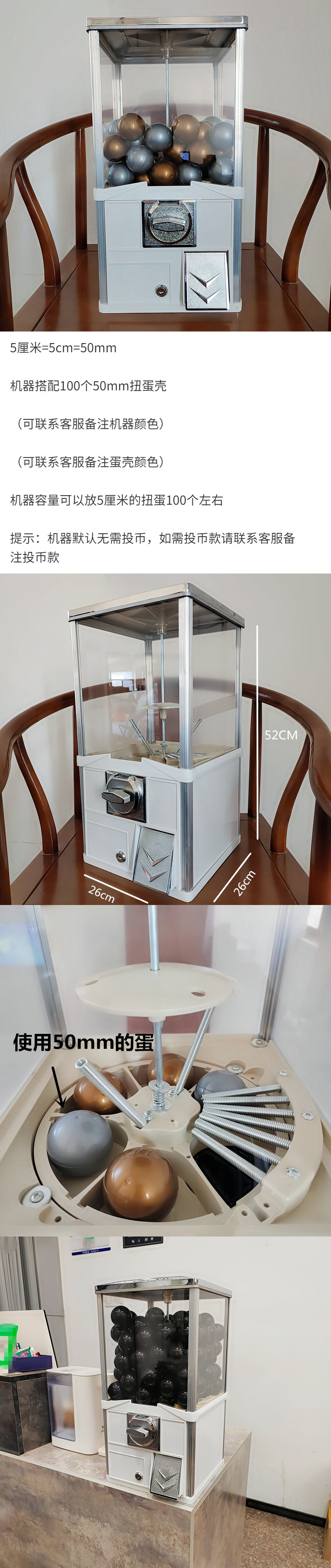 • 흰색 사각형 기계 - 50mm+100 은색 공을 직접 비틀어냅니다.