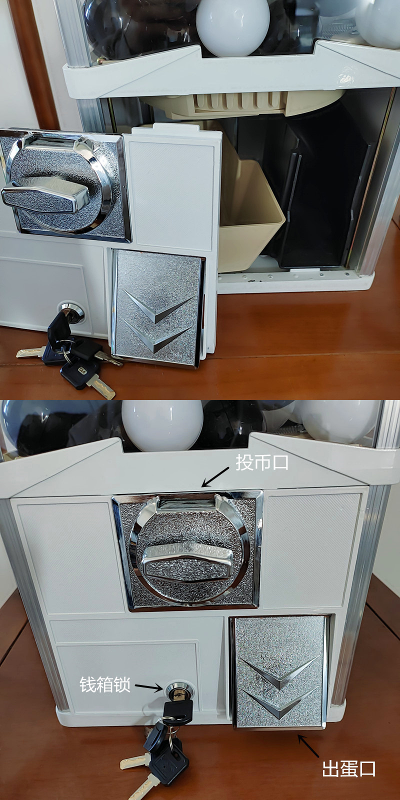 • 흰색 사각형 기계 - 50mm+50 흰색 공과 50 빨간색 공을 직접 비틀어냅니다.
