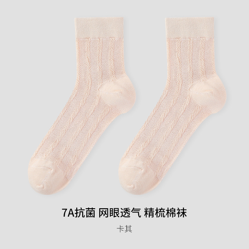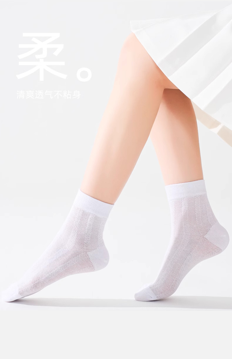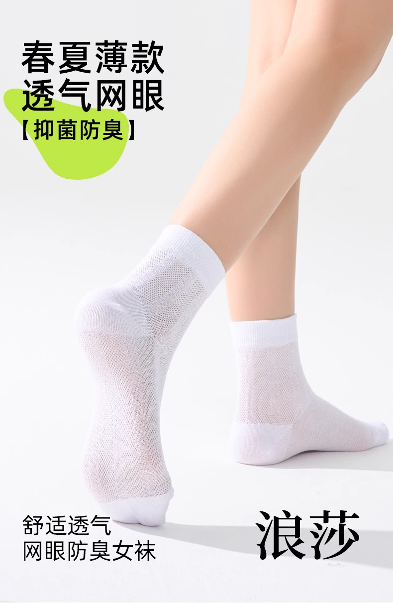 Langsha 양말 여성 여름 얇은 중간 튜브 양말 7A 항균 및 탈취제 메쉬 통기성 여성 양말 여름 스포츠 흰색면 양말스토어 가기