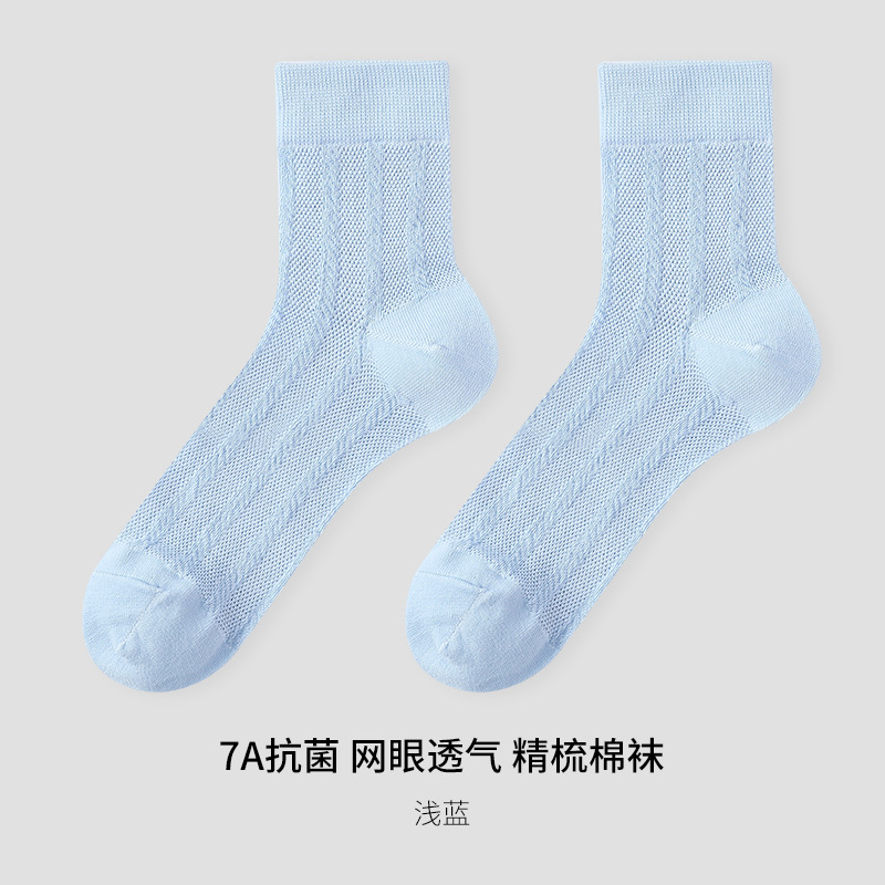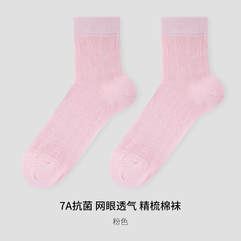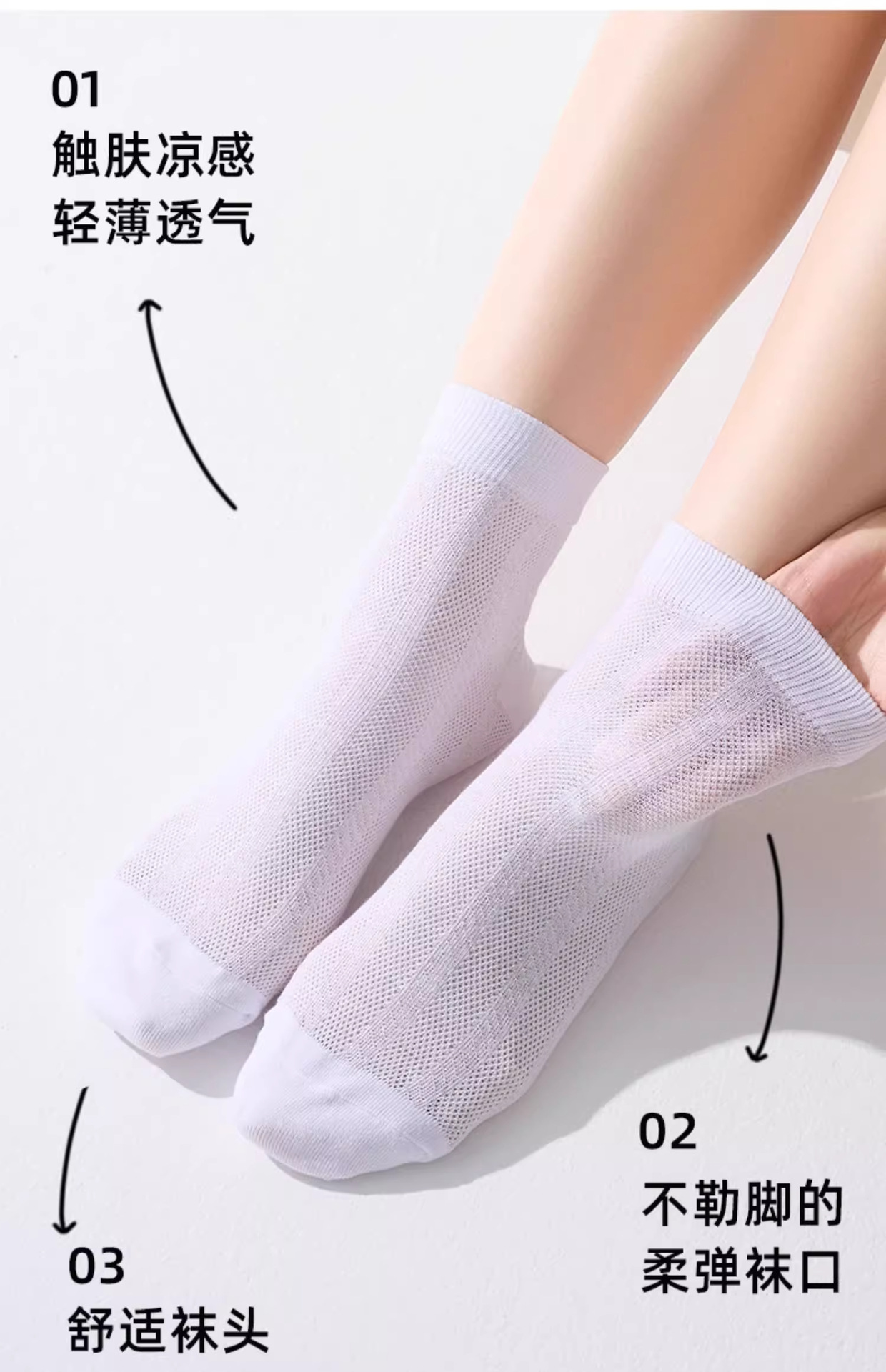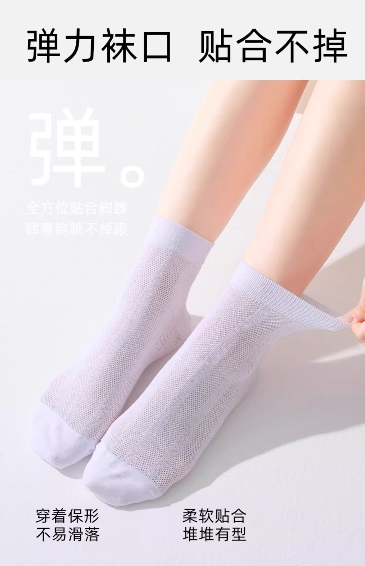 Langsha 양말 여성 여름 얇은 중간 튜브 양말 7A 항균 및 탈취제 메쉬 통기성 여성 양말 여름 스포츠 흰색면 양말스토어 가기