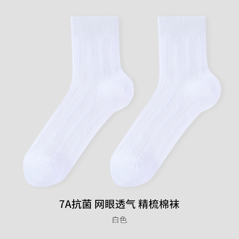 Langsha 양말 여성 여름 얇은 중간 튜브 양말 7A 항균 및 탈취제 메쉬 통기성 여성 양말 여름 스포츠 흰색면 양말
