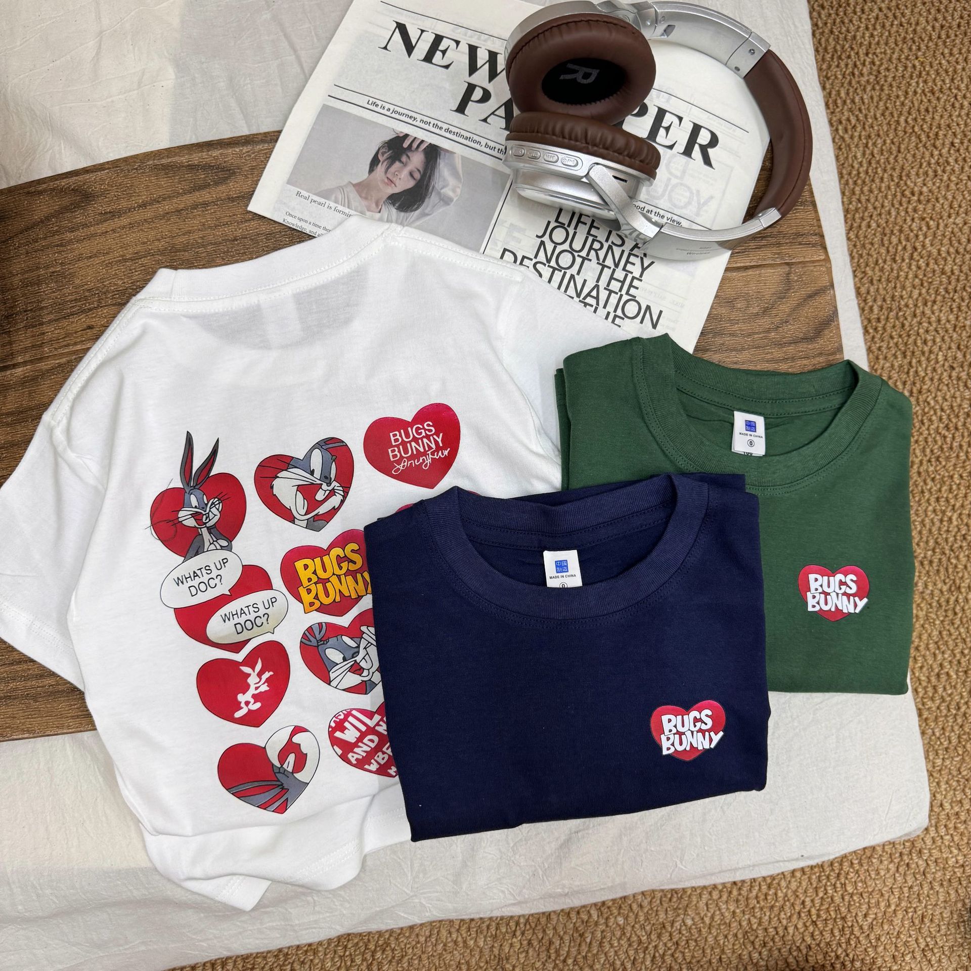 면 2025 새로운 여름 만화 인쇄 느슨한 올매치 반팔 티셔츠 슬리밍 캐주얼 반소매 탑 틈새스토어 가기