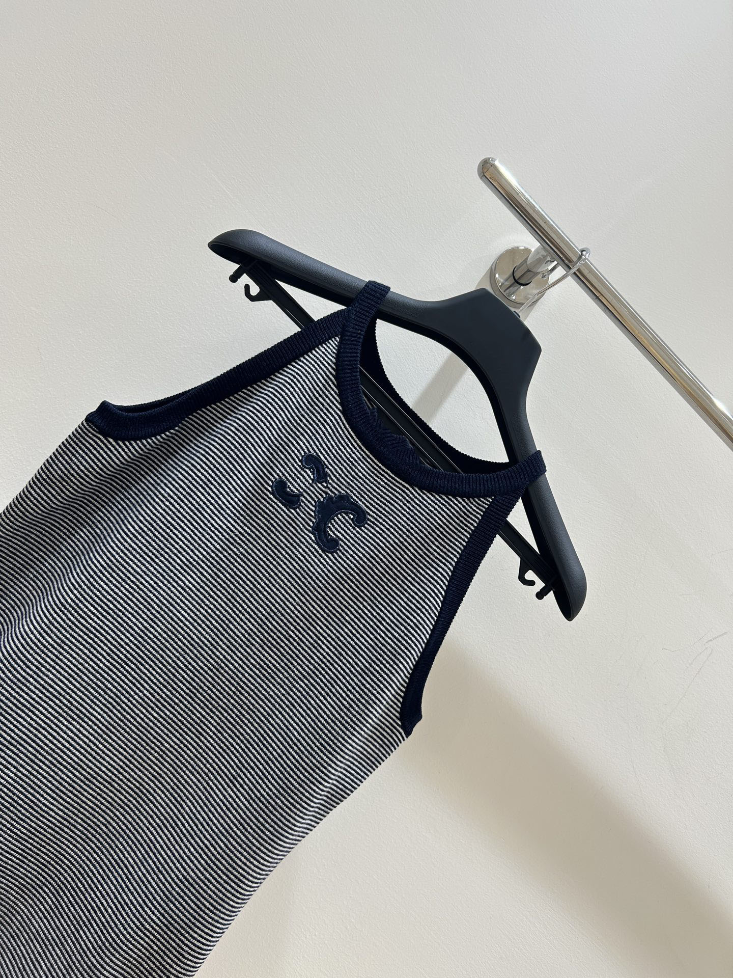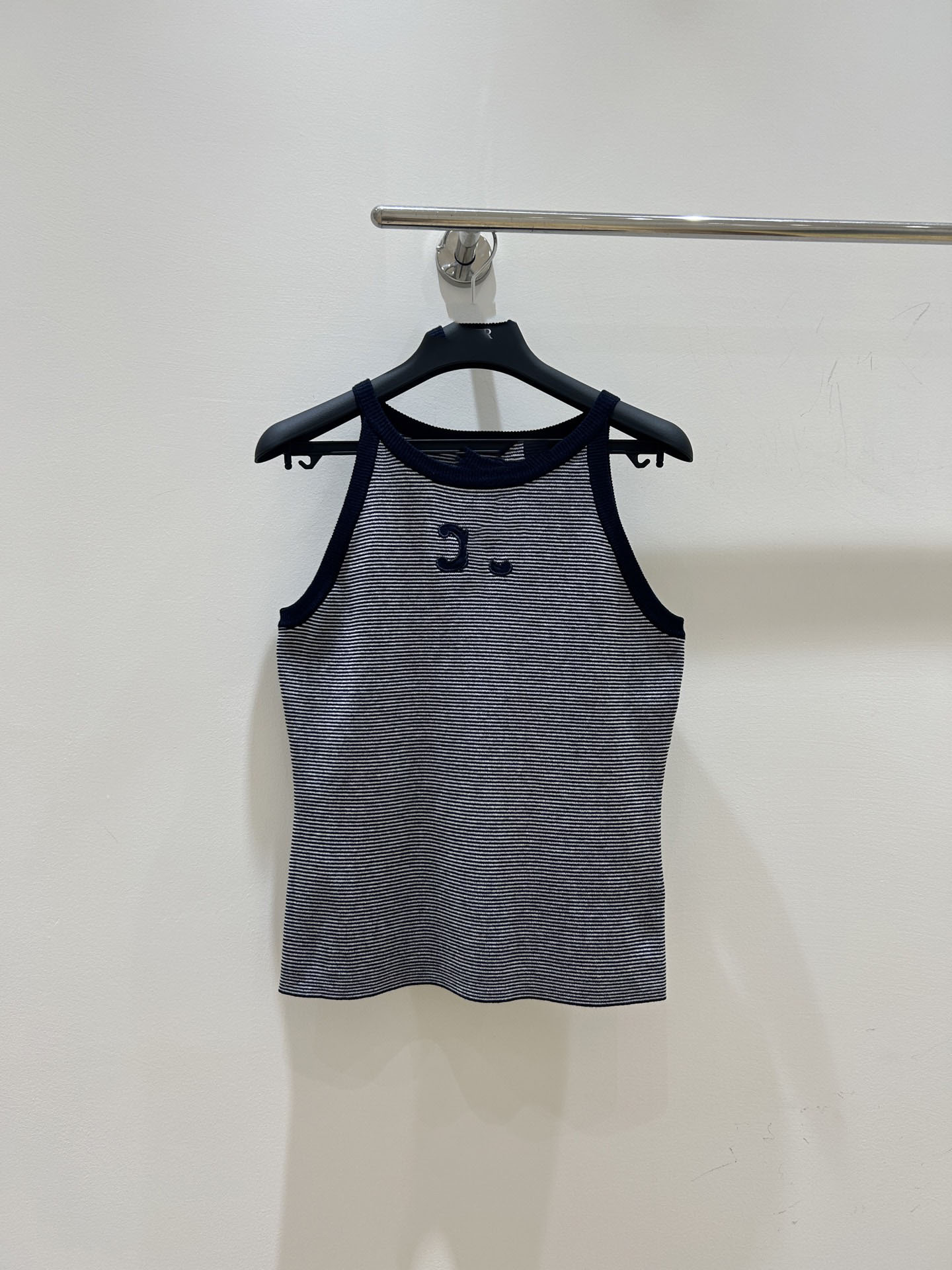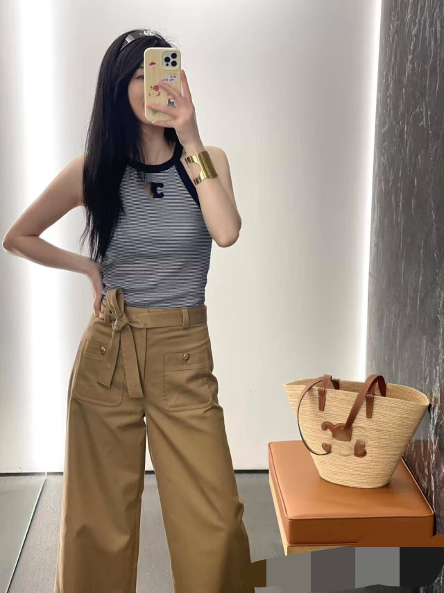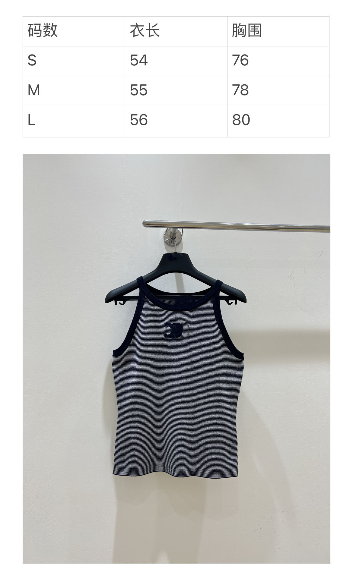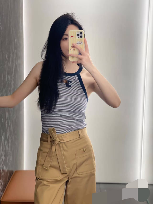 25 새로운 스트라이프 콘트라스트 컬러 아크 드 개선문 자수 로고 작은 카미솔 여성 아우터웨어 내베이스 민소매 탑
