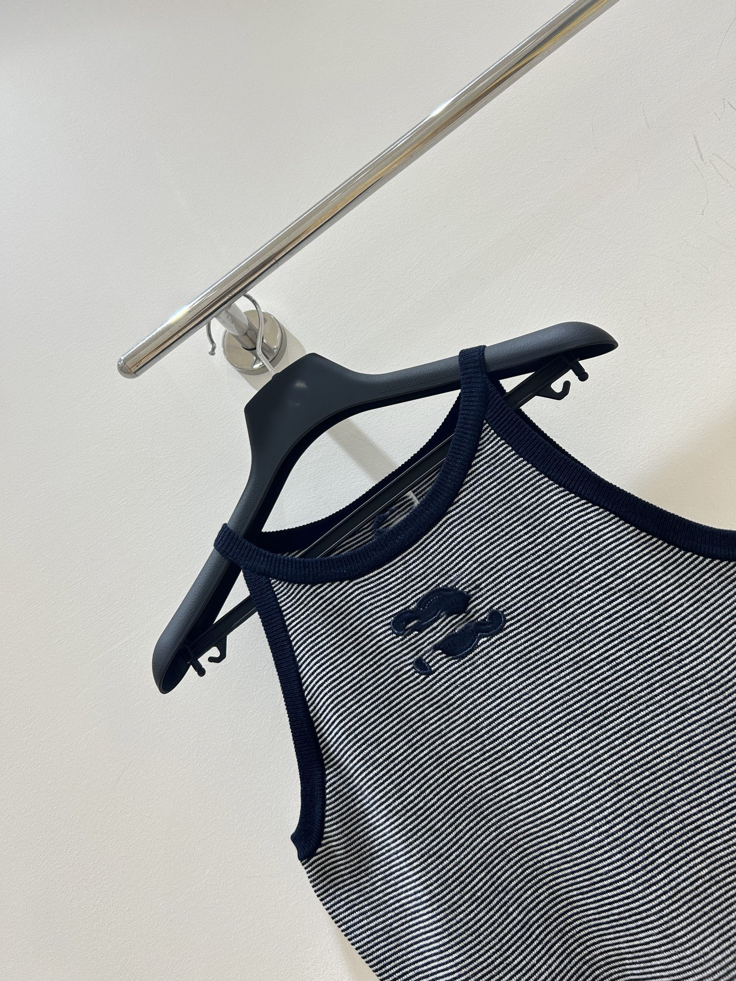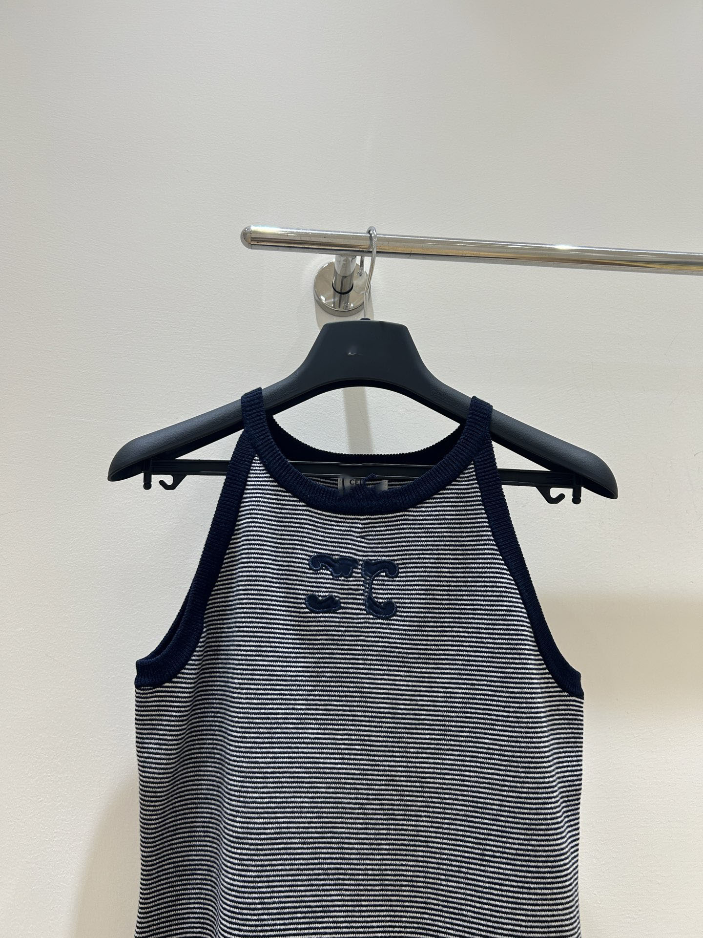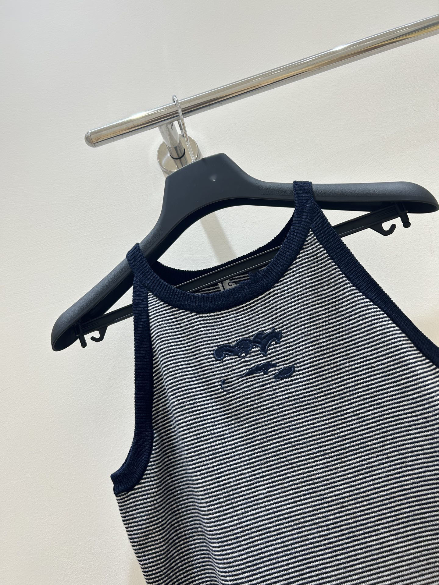 25 새로운 스트라이프 콘트라스트 컬러 아크 드 개선문 자수 로고 작은 카미솔 여성 아우터웨어 내베이스 민소매 탑