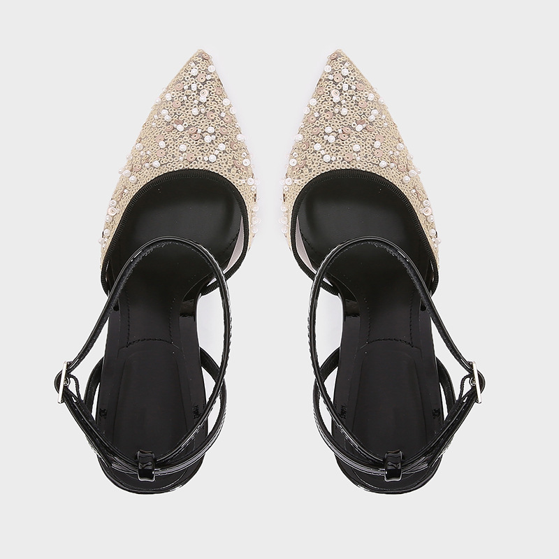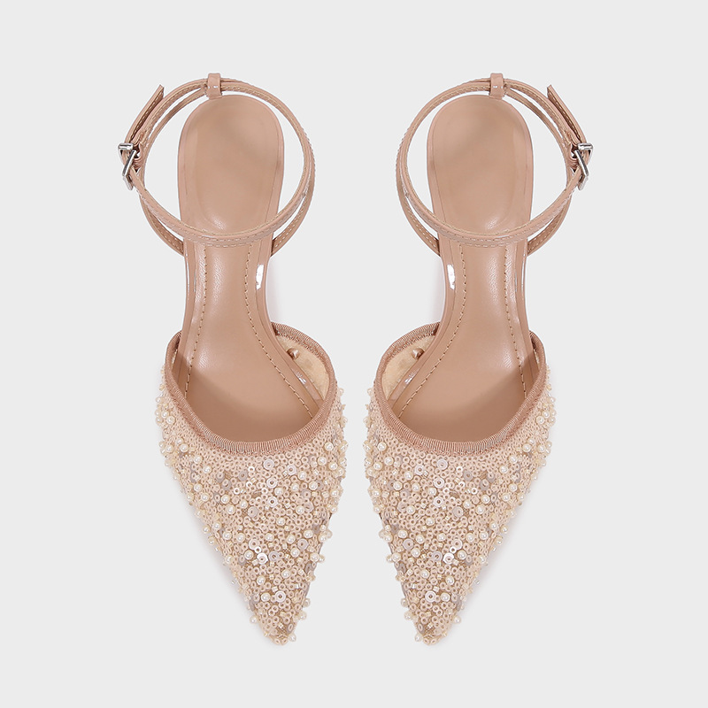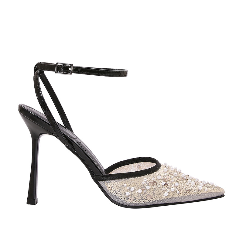 ZA2025 여름 새로운 여성 신발 Lustre Mesh 뾰족한 하이힐 뮬러 신발 여성용 얇은 굽 샌들스토어 가기