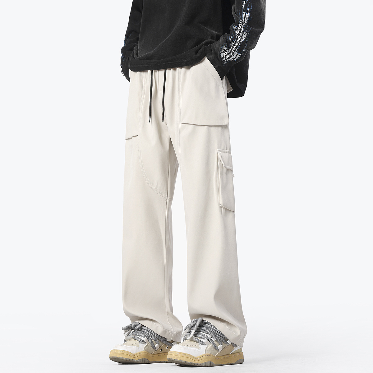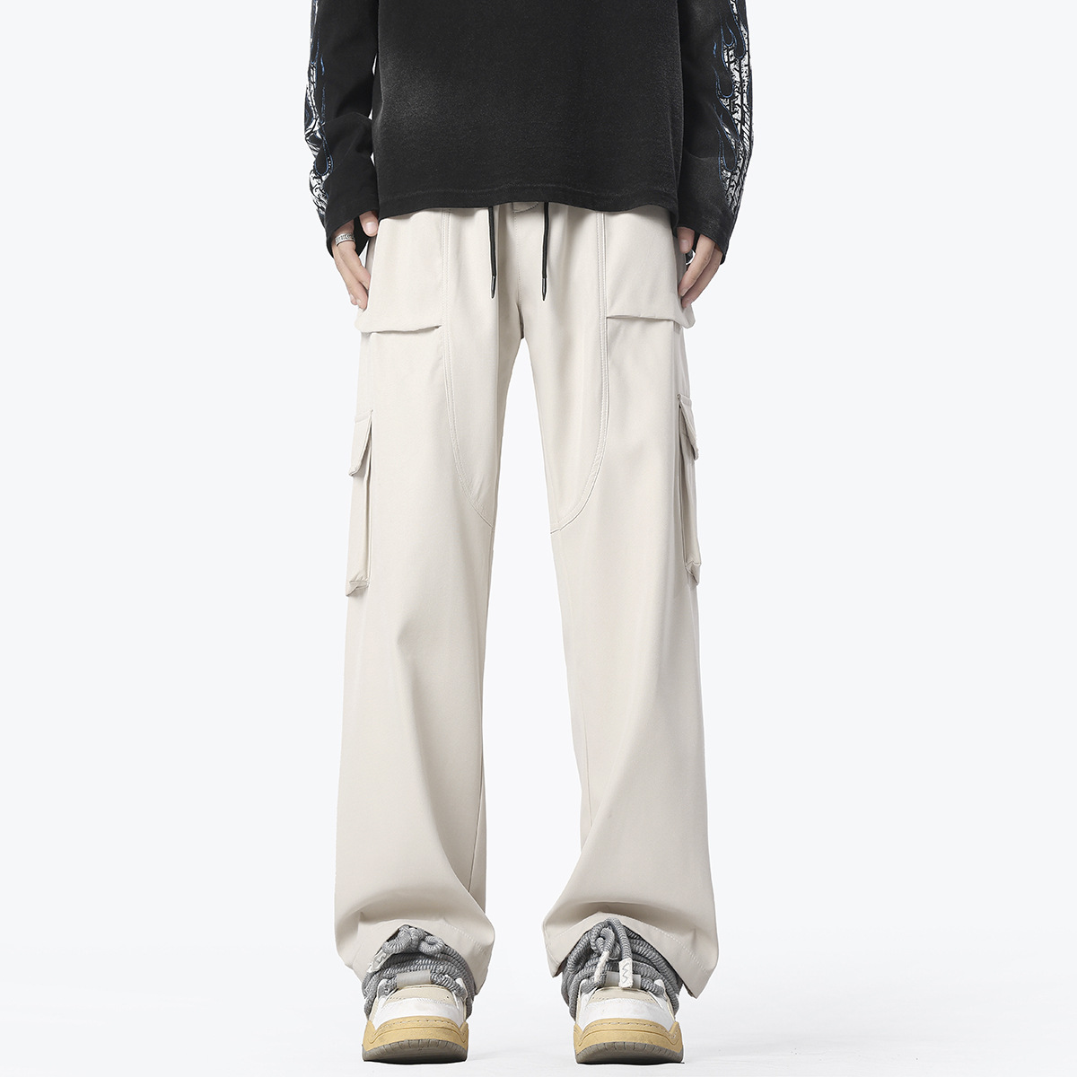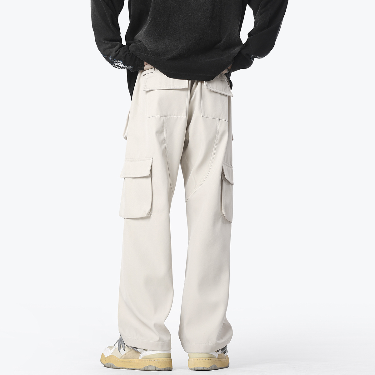 남성용 블랙 아메리칸 오버올, 봄, 가을 스타일, 멋진 스트레이트 캐주얼 팬츠, 멀티 포켓, 하이웨이스트, 슬리밍 기능성 아웃도어 팬츠