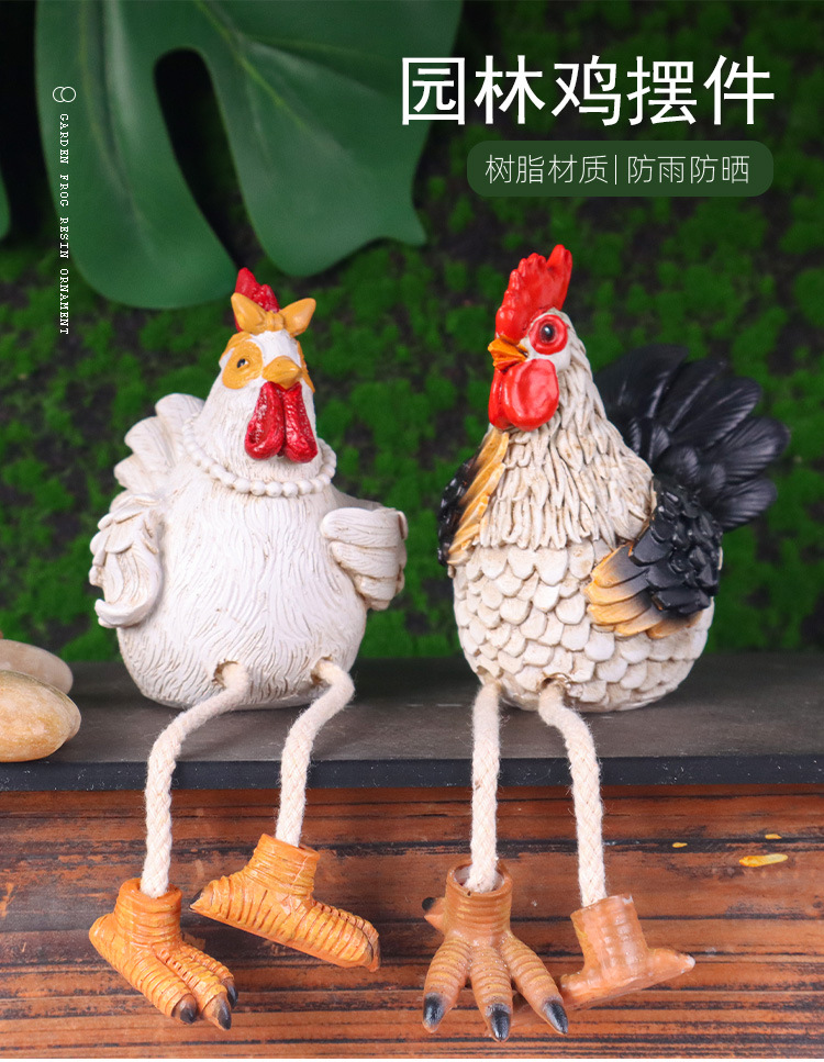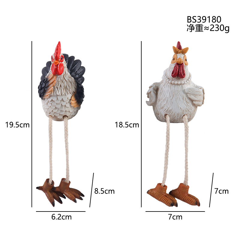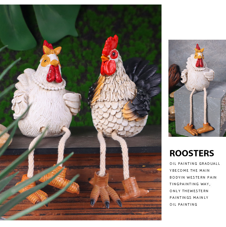 국경 간 창조적 인 홈 데스크탑 귀여운 장식 교수형 수탉과 암탉 장식품 수지 공예품 동상