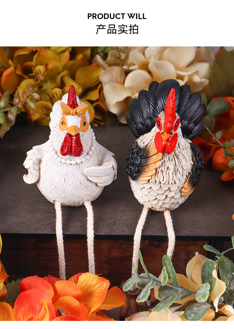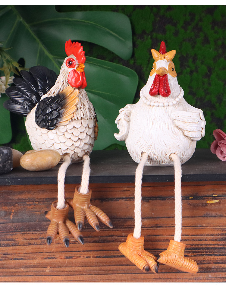 국경 간 창조적 인 홈 데스크탑 귀여운 장식 교수형 수탉과 암탉 장식품 수지 공예품 동상스토어 가기