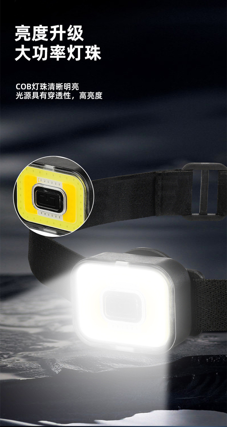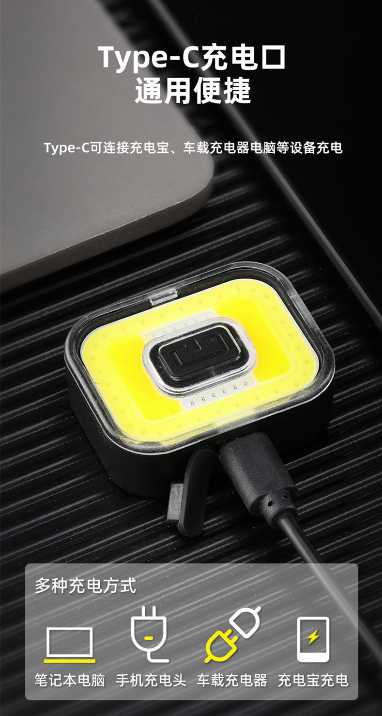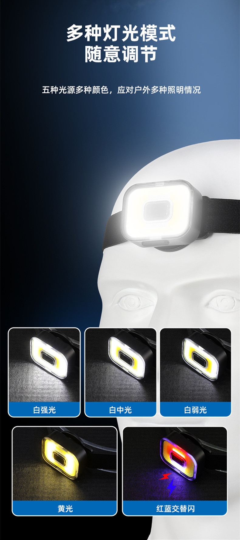 새로운 다기능 흰색과 노란색 빛 충전식 미니 투광 조명 야외 사이클링 및 등산 자기 강한 빛 장거리 헤드 라이트