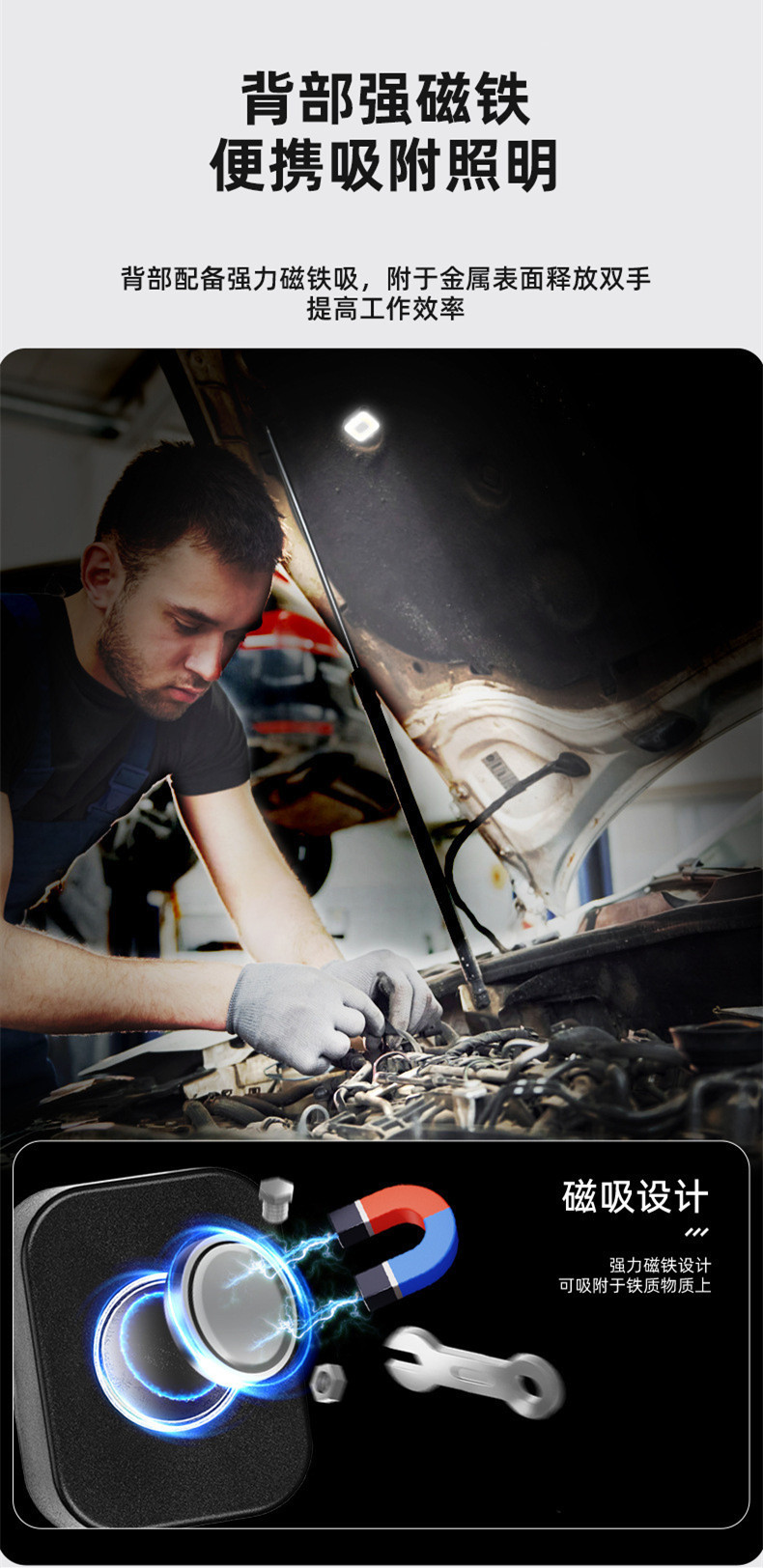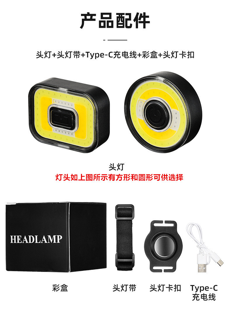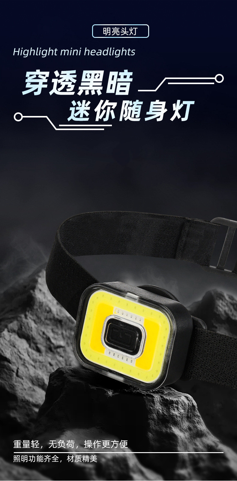 새로운 다기능 흰색과 노란색 빛 충전식 미니 투광 조명 야외 사이클링 및 등산 자기 강한 빛 장거리 헤드 라이트