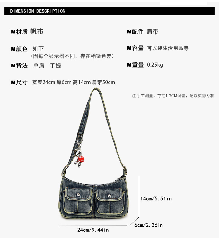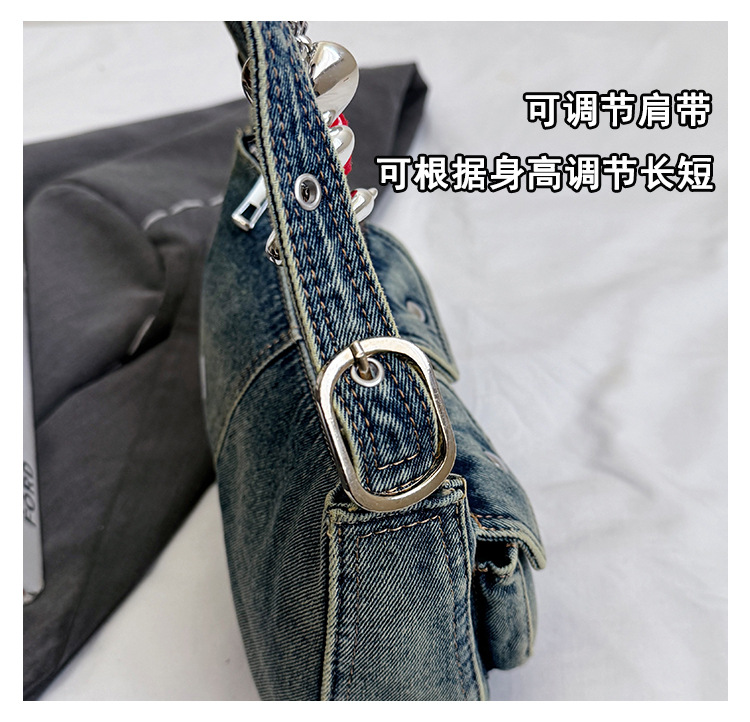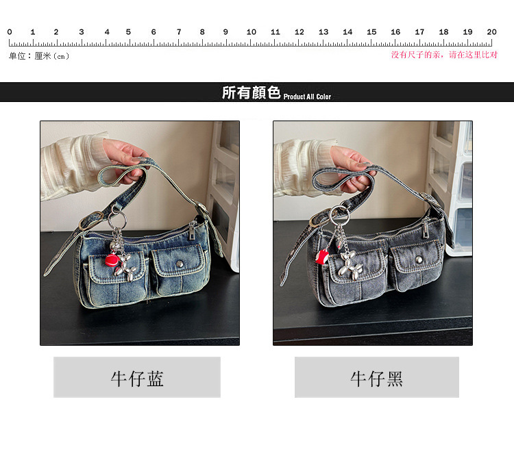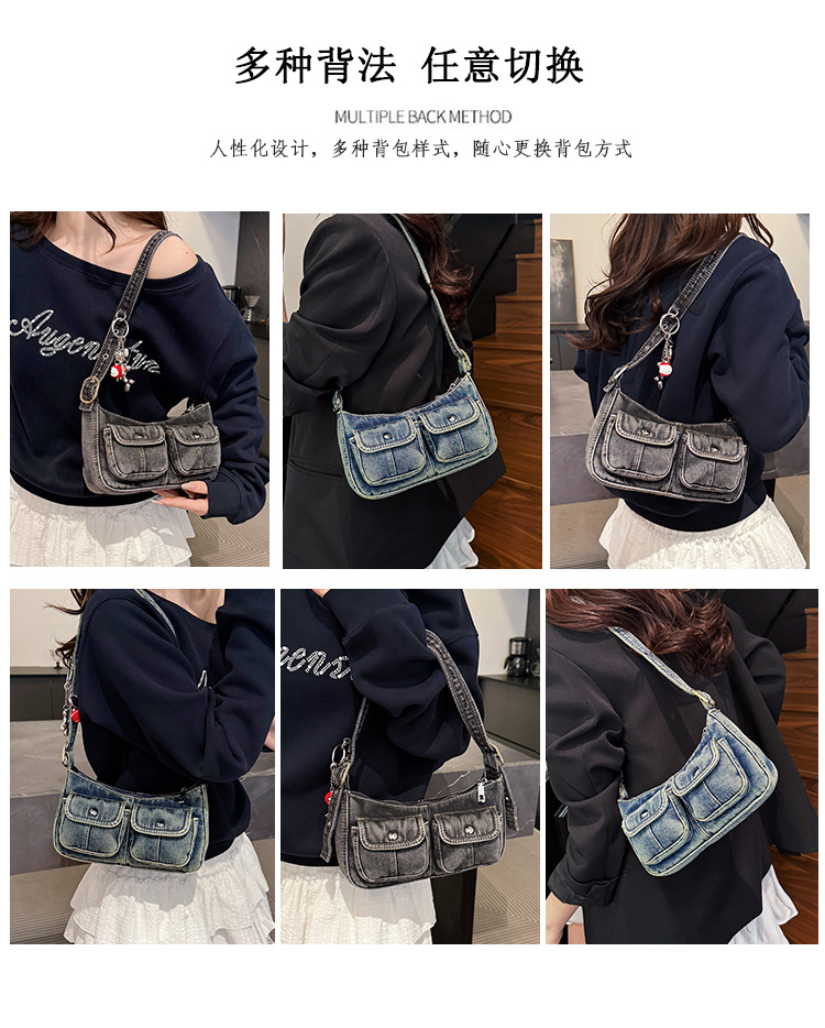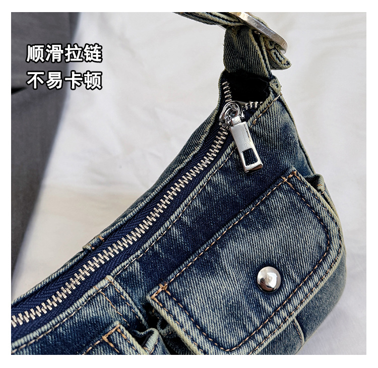 Zong 패션 겨드랑이 가방 2025 새로운 복고풍 오래된 데님 가방 작은 여성 핫 소녀 바게트 가방 통근 숄더백스토어 가기