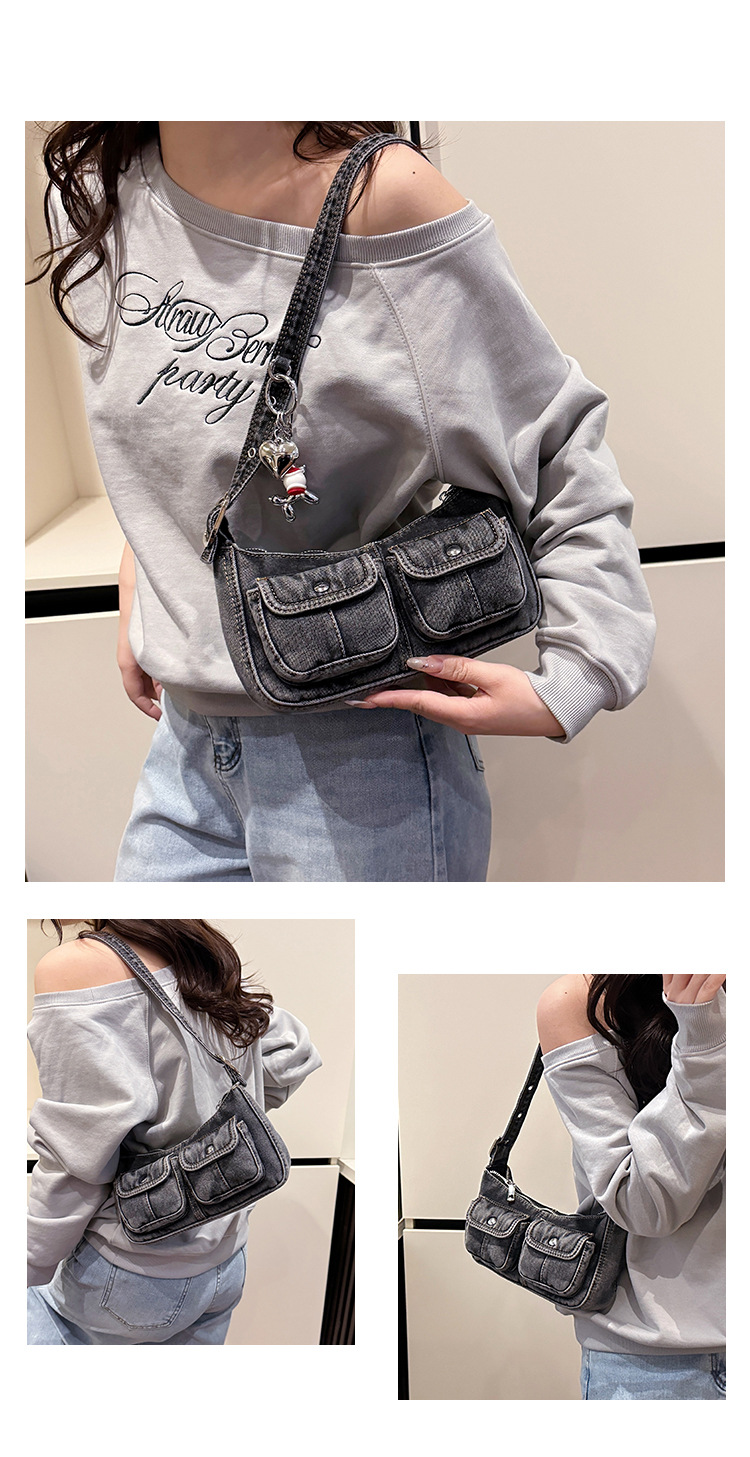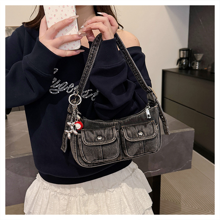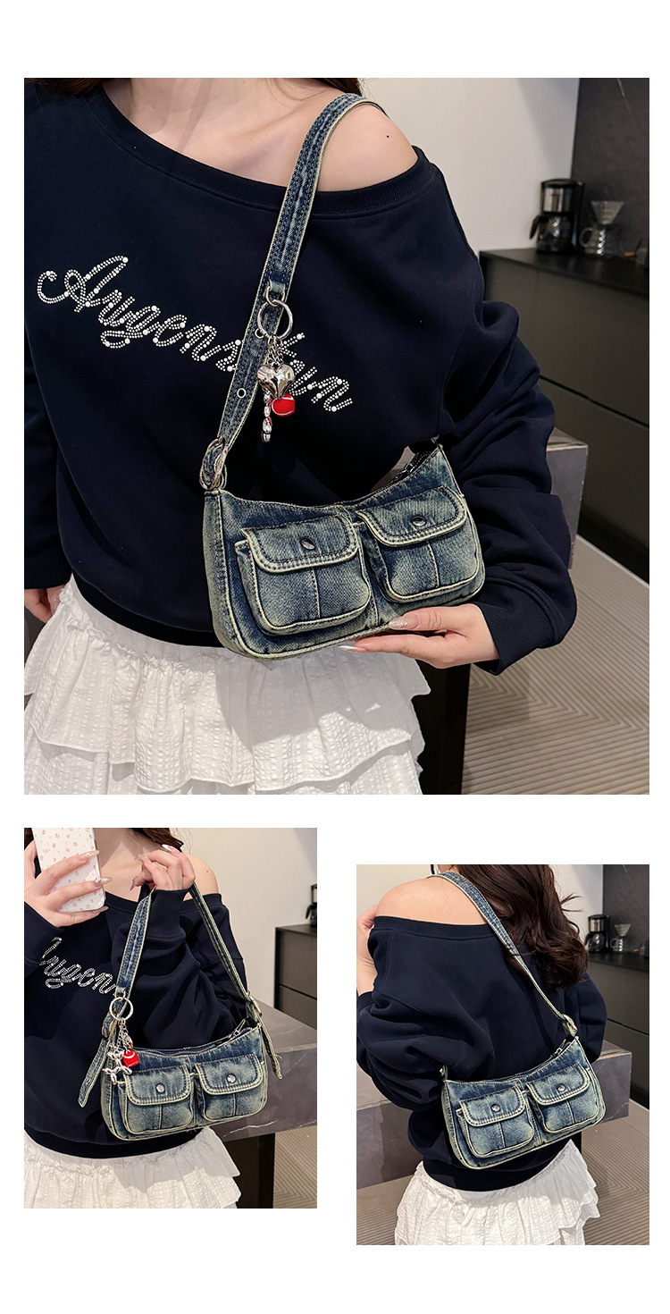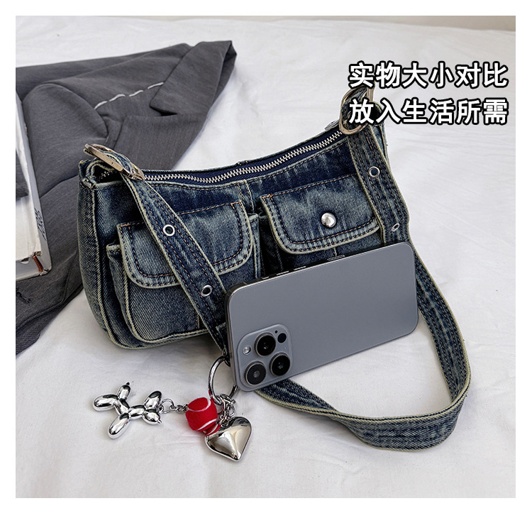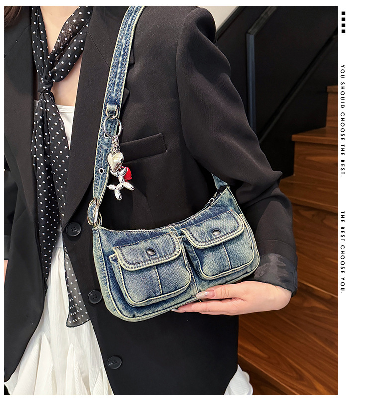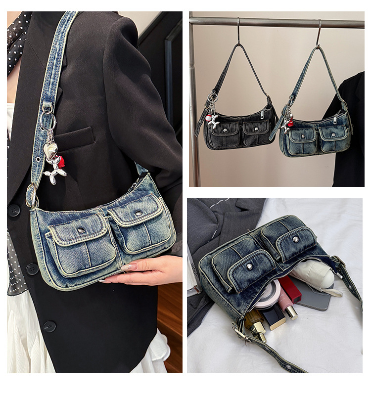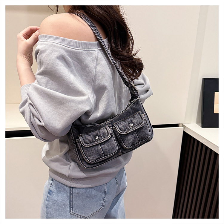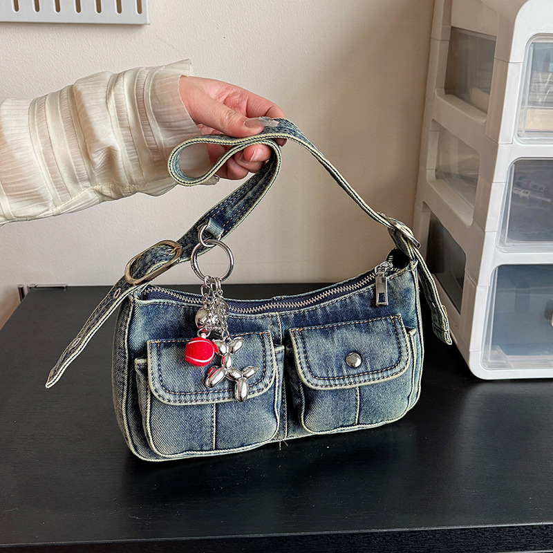 Zong 패션 겨드랑이 가방 2025 새로운 복고풍 오래된 데님 가방 작은 여성 핫 소녀 바게트 가방 통근 숄더백