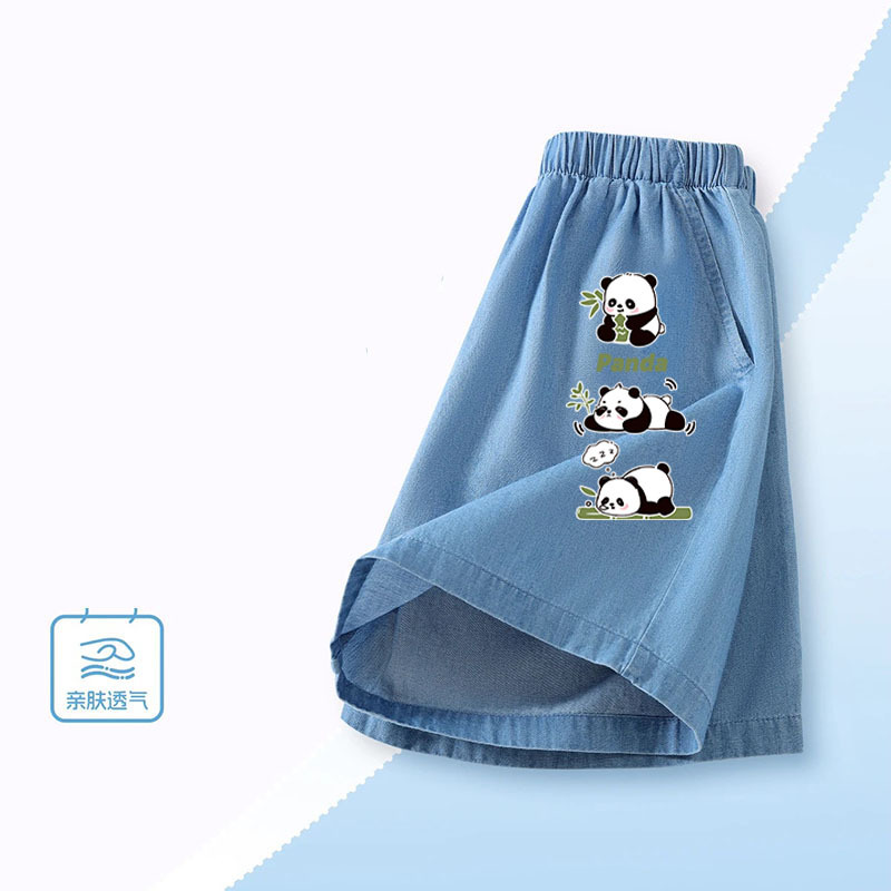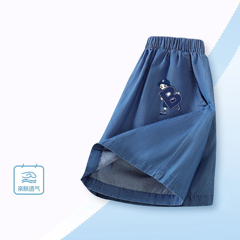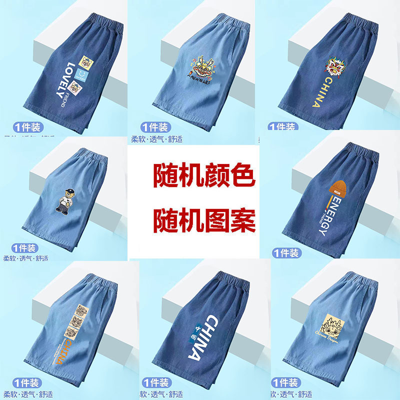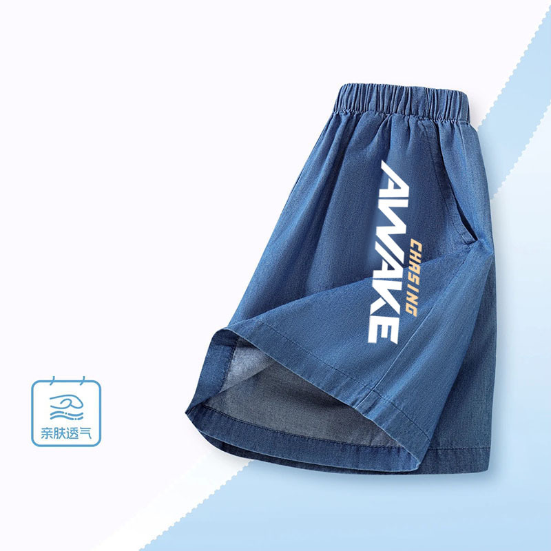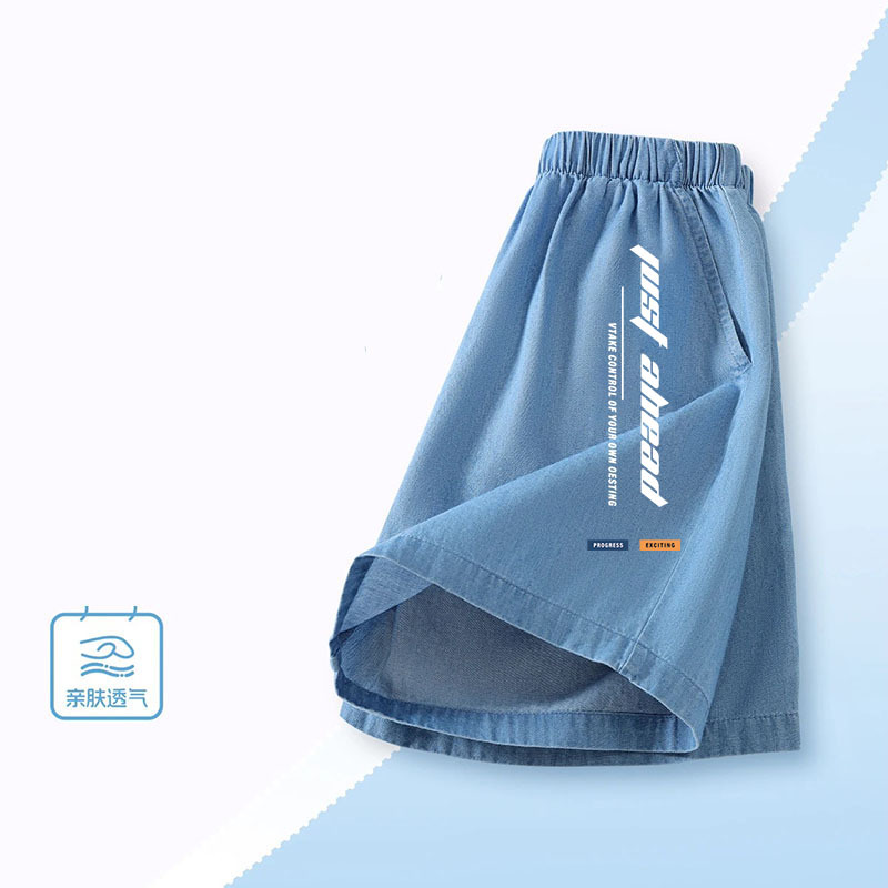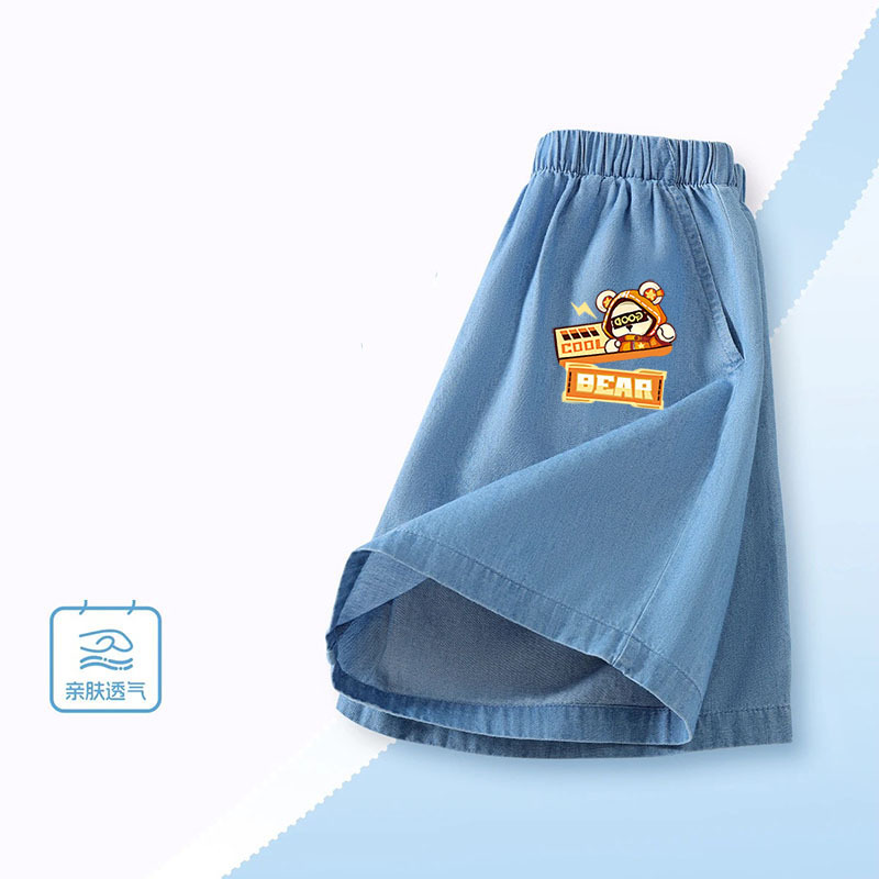 소년 여름 얇고 잘 생긴 얼음 실크 데님 반바지 2025 새로운 어린이 만화 스포츠 다목적 소년 바지스토어 가기