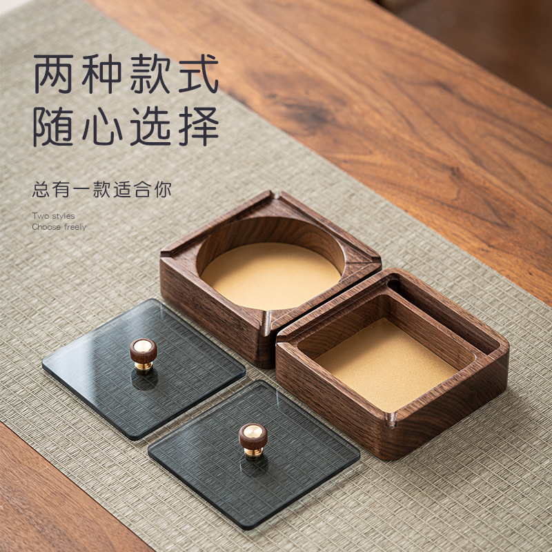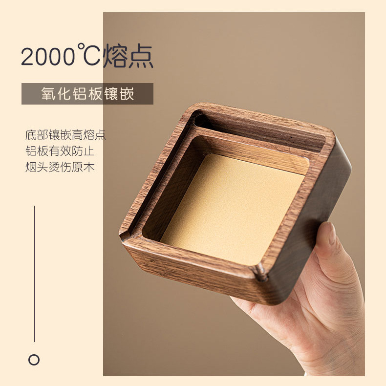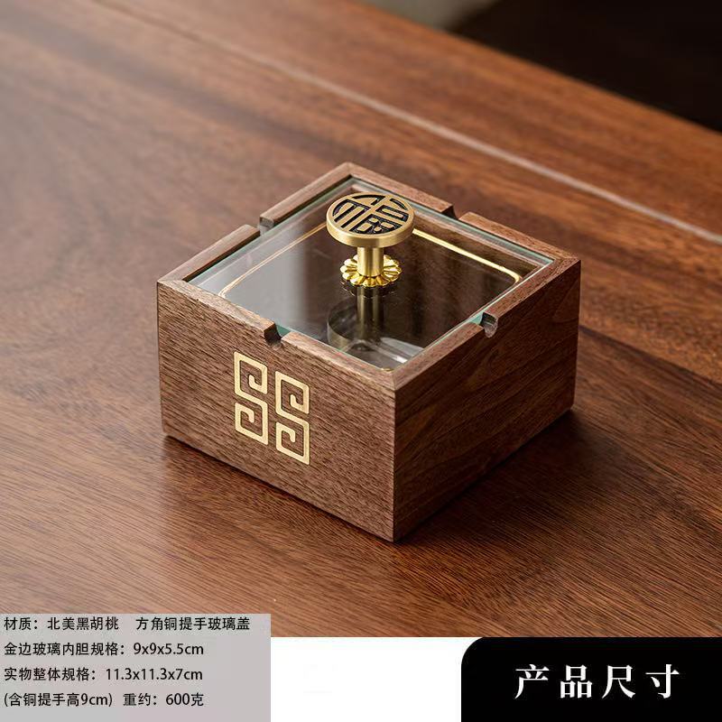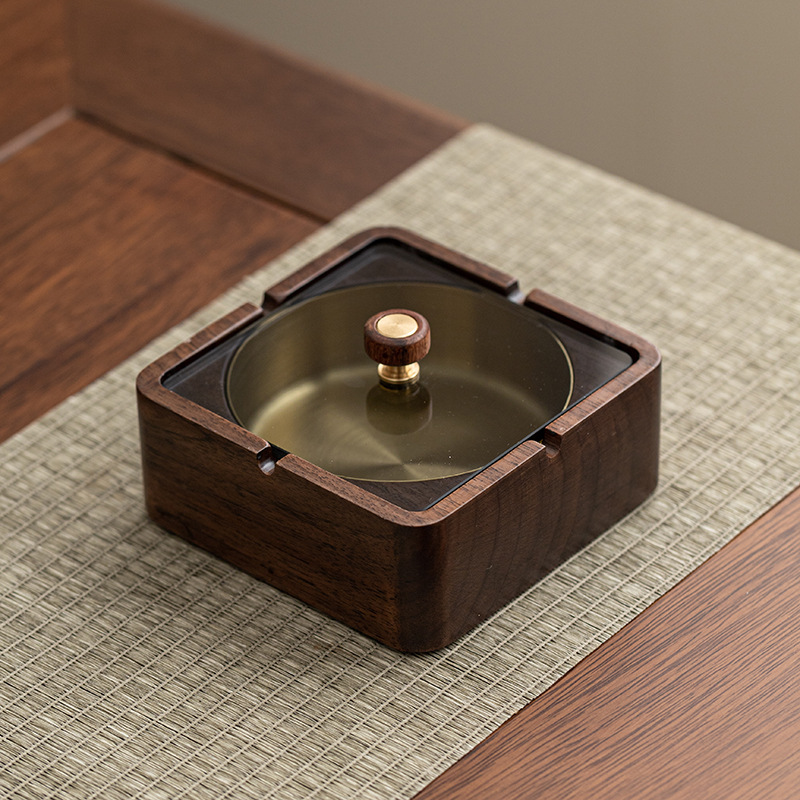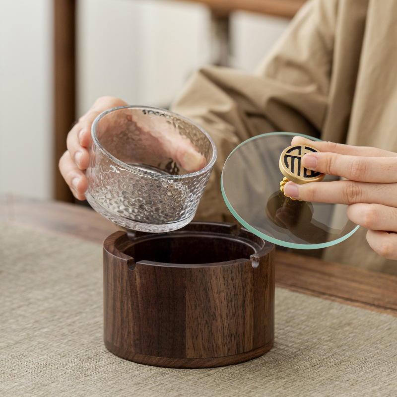 • 검은 호두나무 유리 뚜껑 자석 재떨이