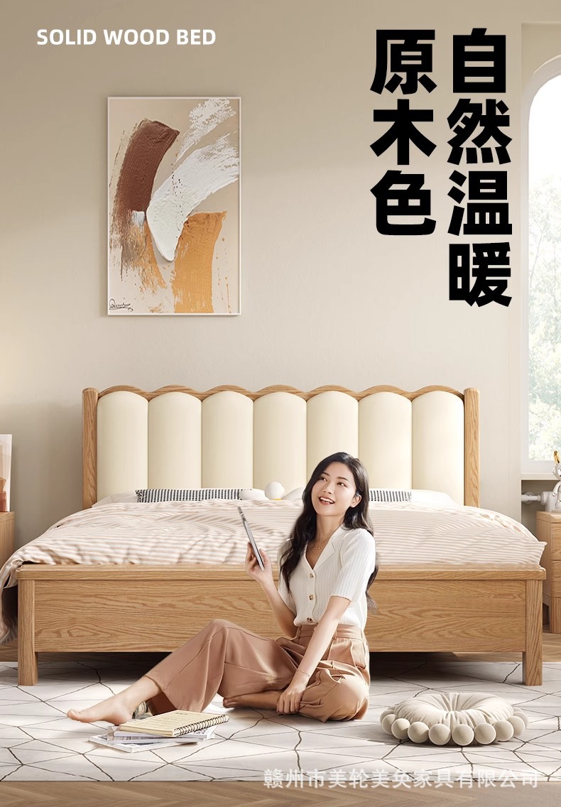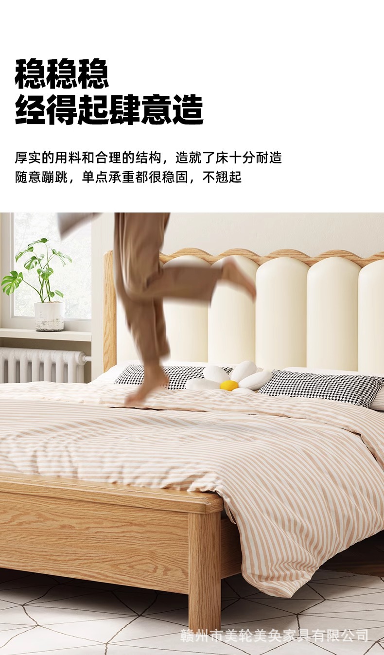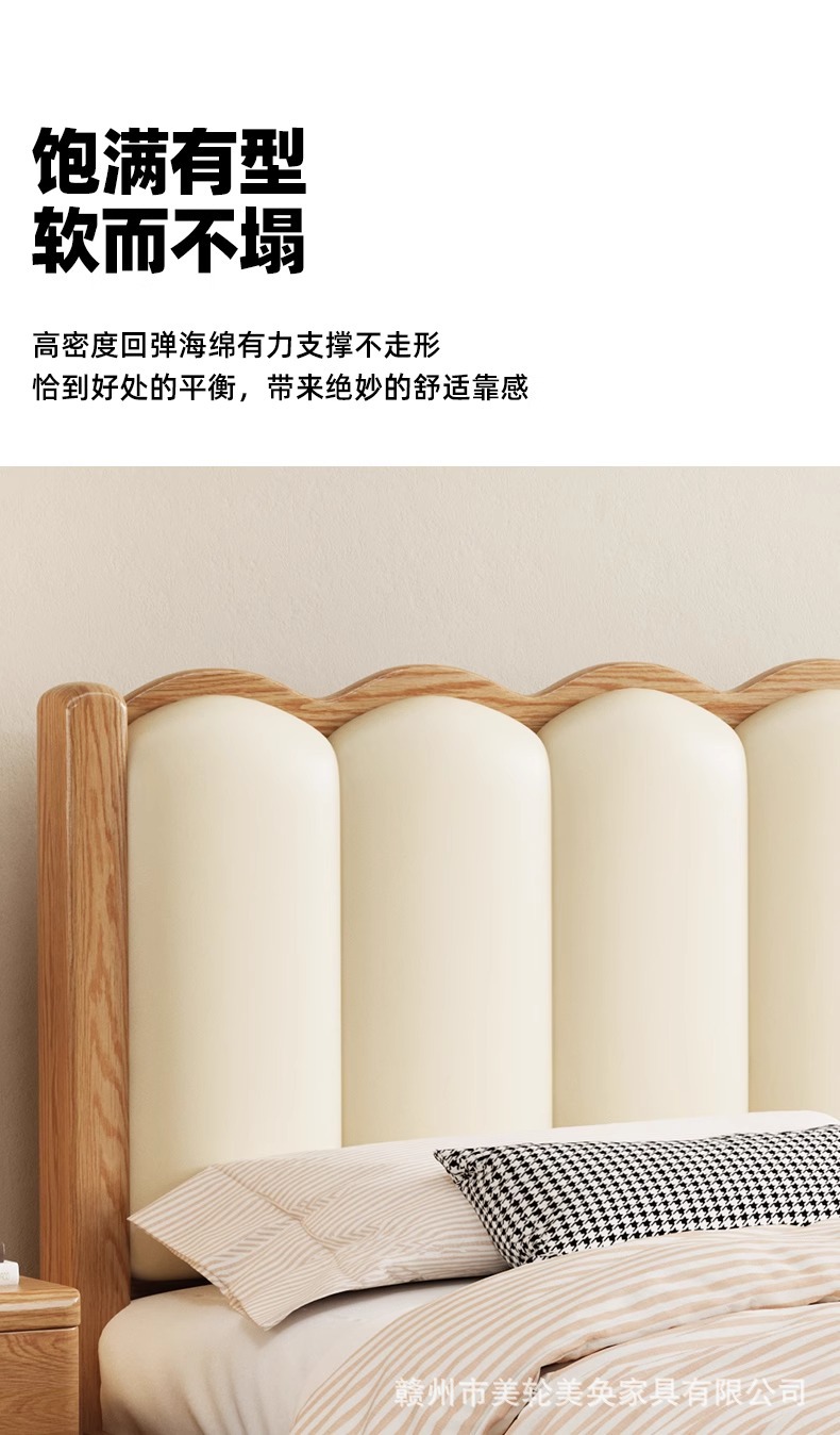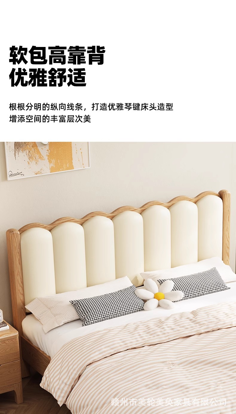 북유럽 스타일 단단한 붉은 오크 침대 1.8m 더블 침대 마스터 침실 간단한 크림 스타일 부드러운 등받이 1.5m 어린이 싱글 침대