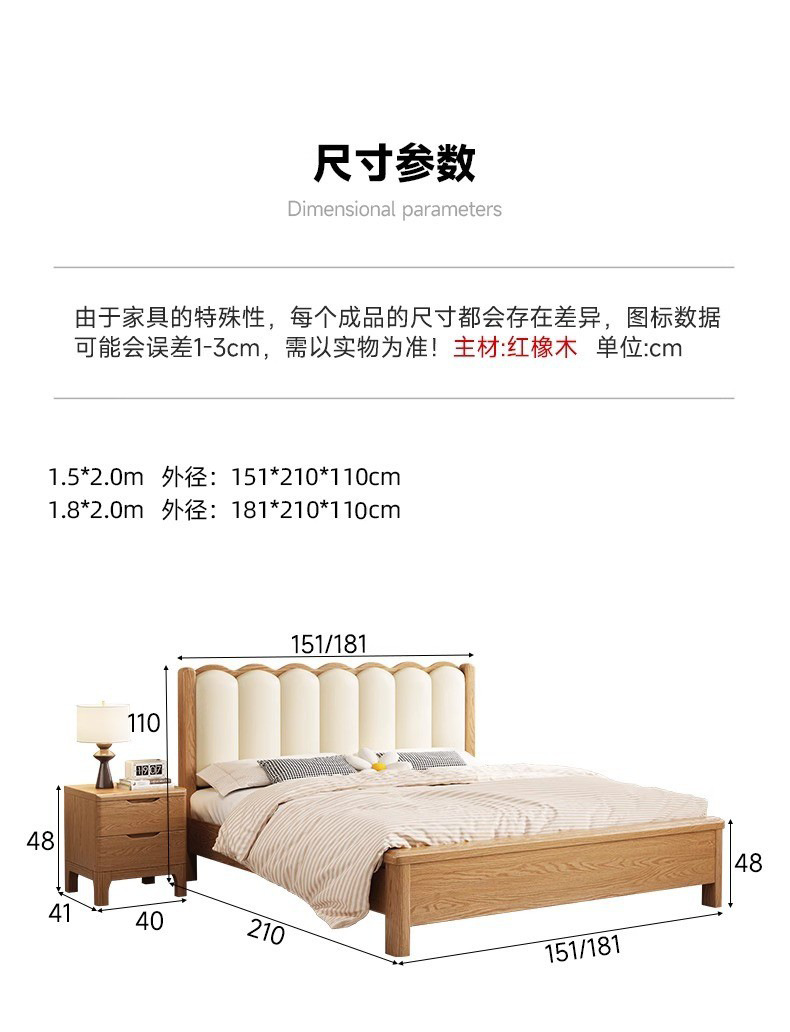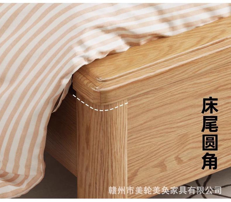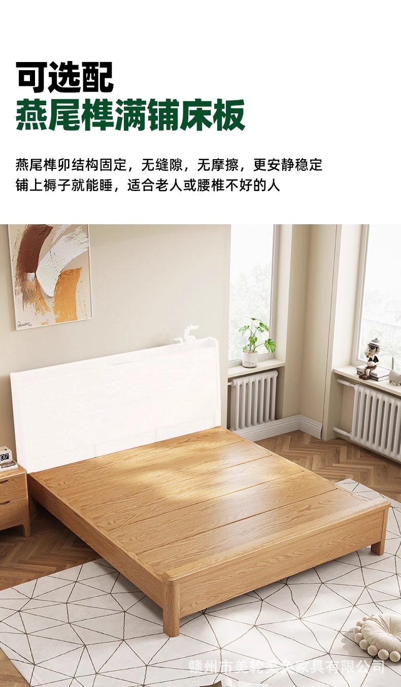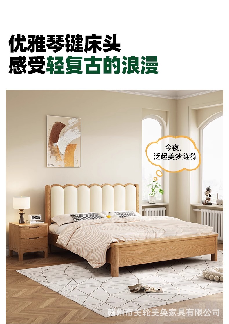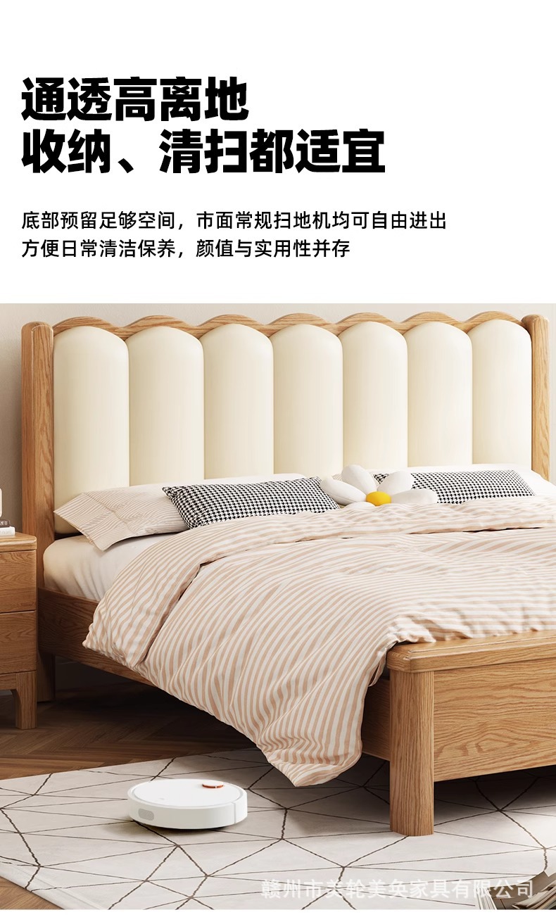 북유럽 스타일 단단한 붉은 오크 침대 1.8m 더블 침대 마스터 침실 간단한 크림 스타일 부드러운 등받이 1.5m 어린이 싱글 침대