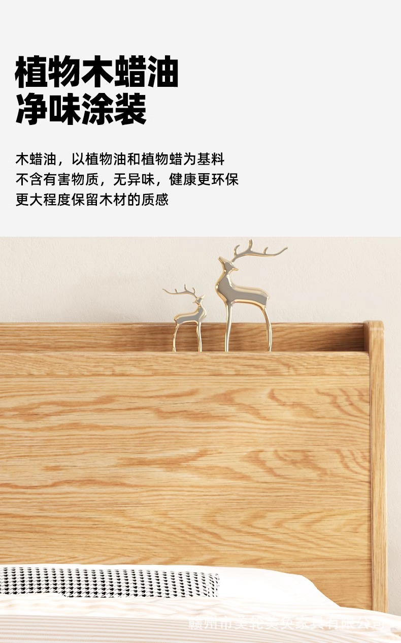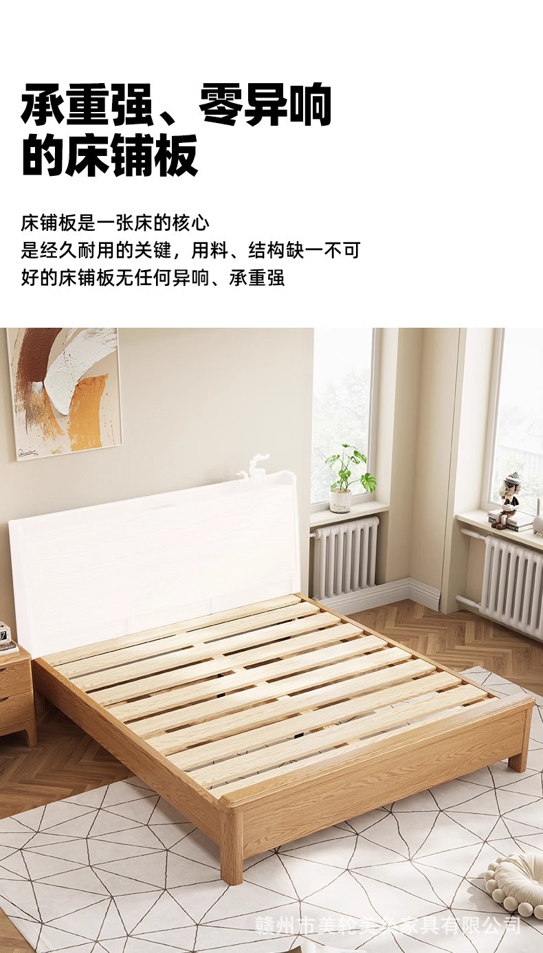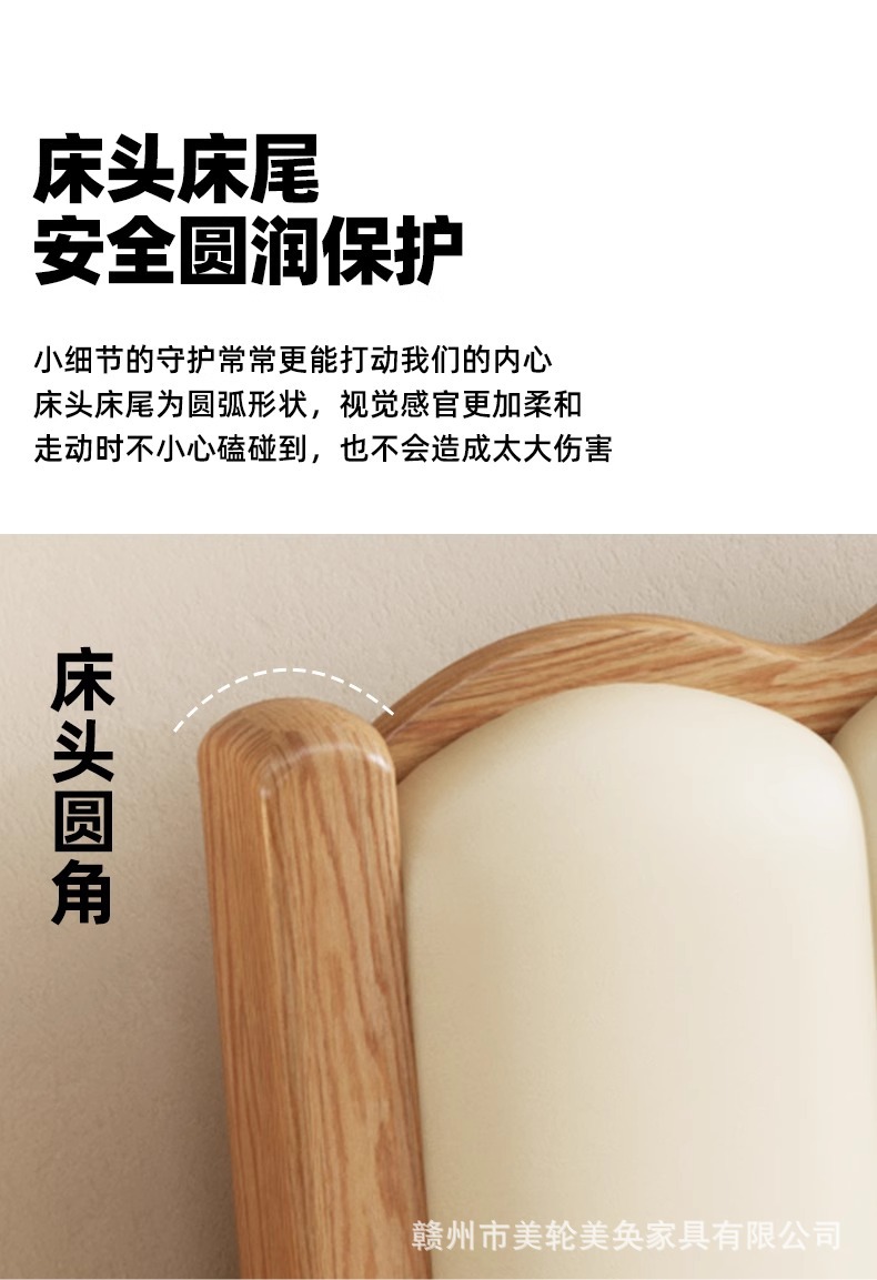 북유럽 스타일 단단한 붉은 오크 침대 1.8m 더블 침대 마스터 침실 간단한 크림 스타일 부드러운 등받이 1.5m 어린이 싱글 침대스토어 가기