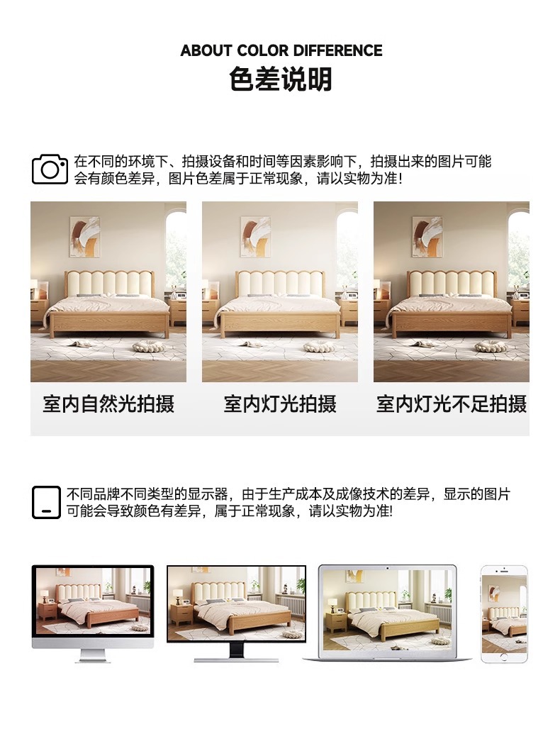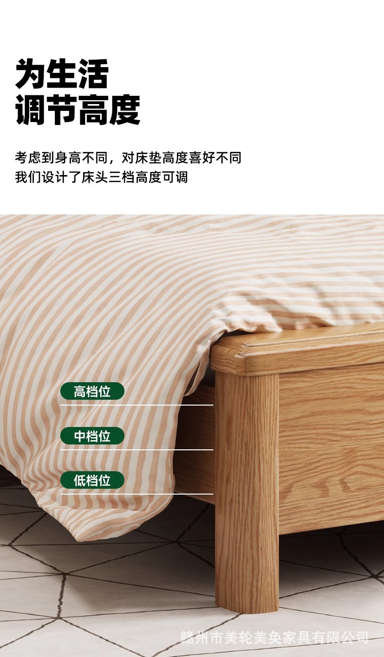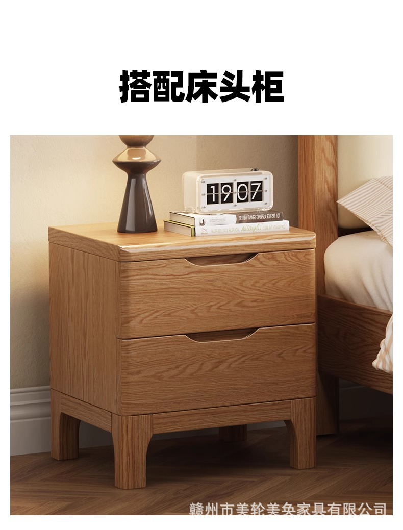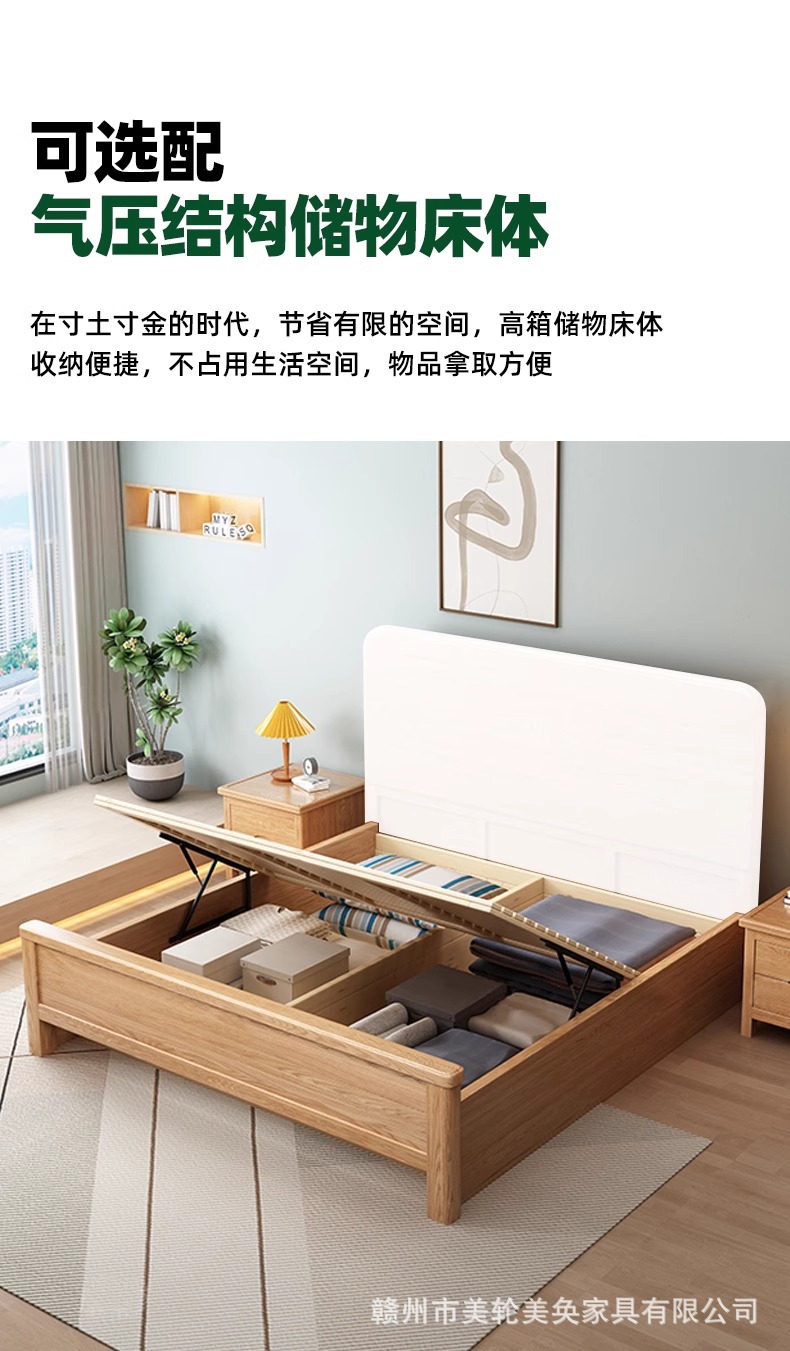 북유럽 스타일 단단한 붉은 오크 침대 1.8m 더블 침대 마스터 침실 간단한 크림 스타일 부드러운 등받이 1.5m 어린이 싱글 침대스토어 가기