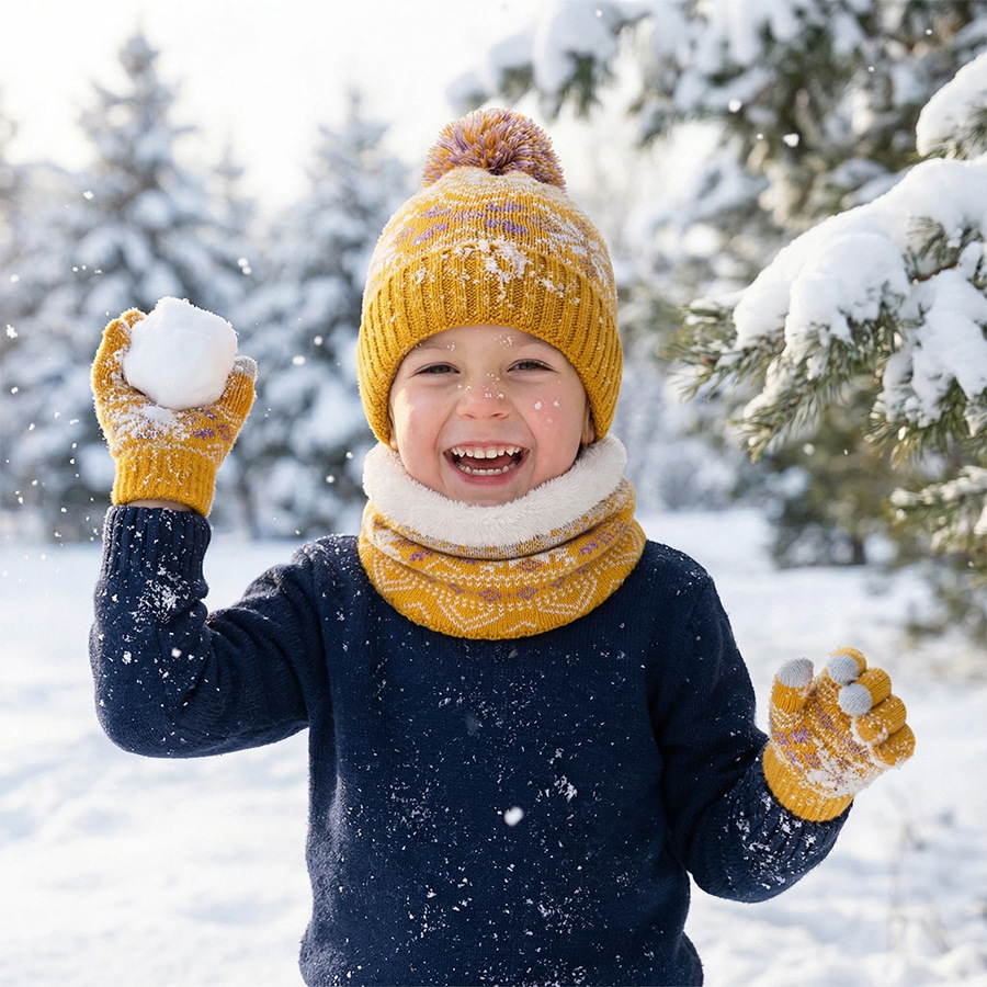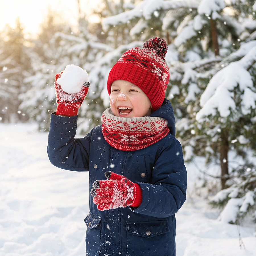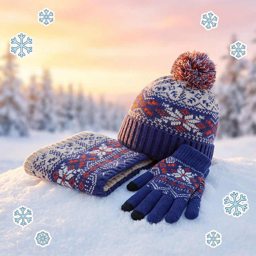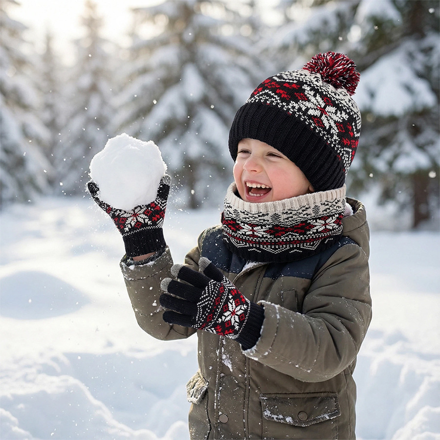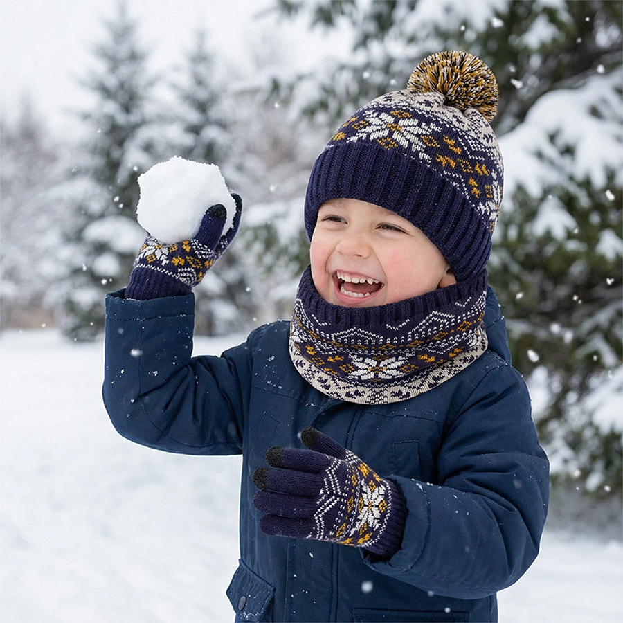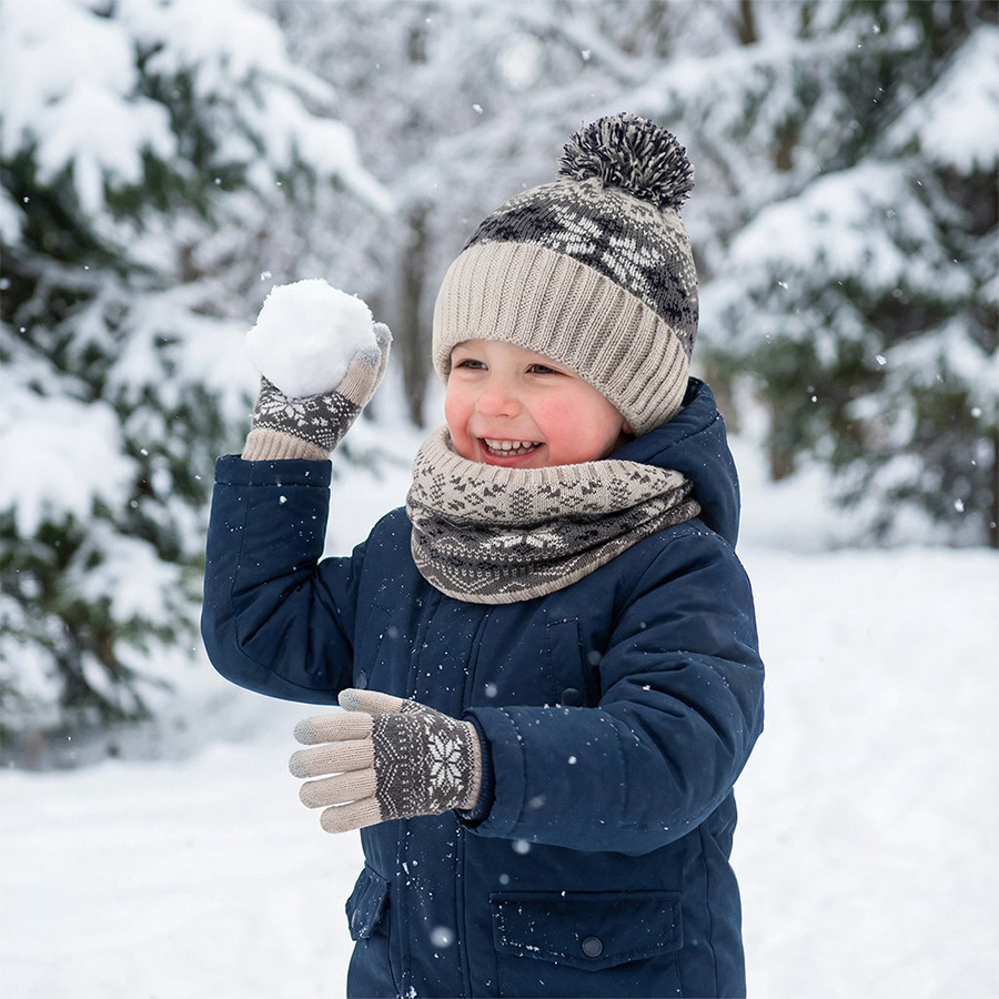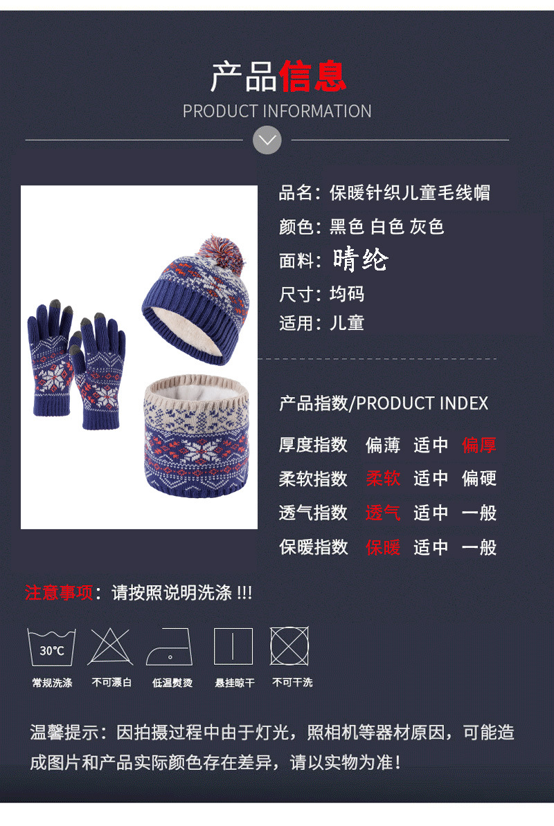 크로스보더 벨벳 넥 가드 어린이 니트 모자 스카프 장갑 새로운 따뜻한 어린이 눈송이 3피스 세트스토어 가기