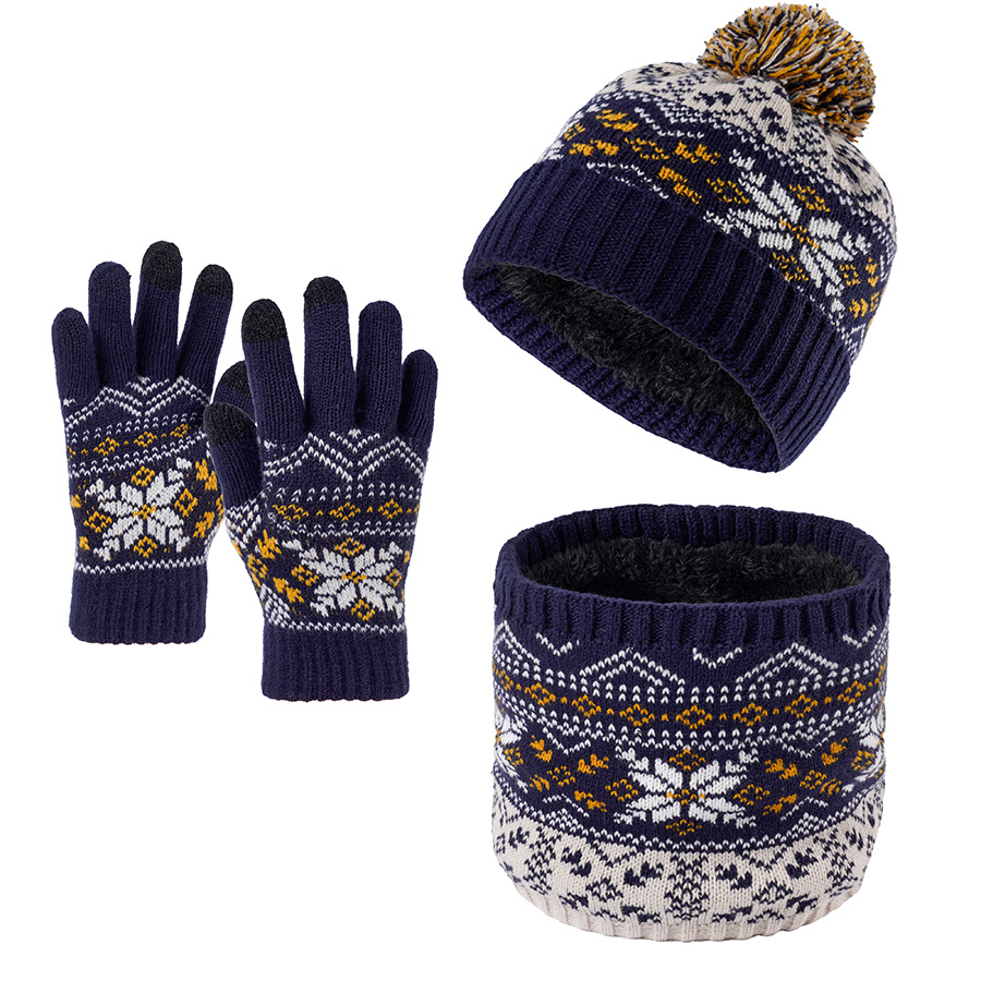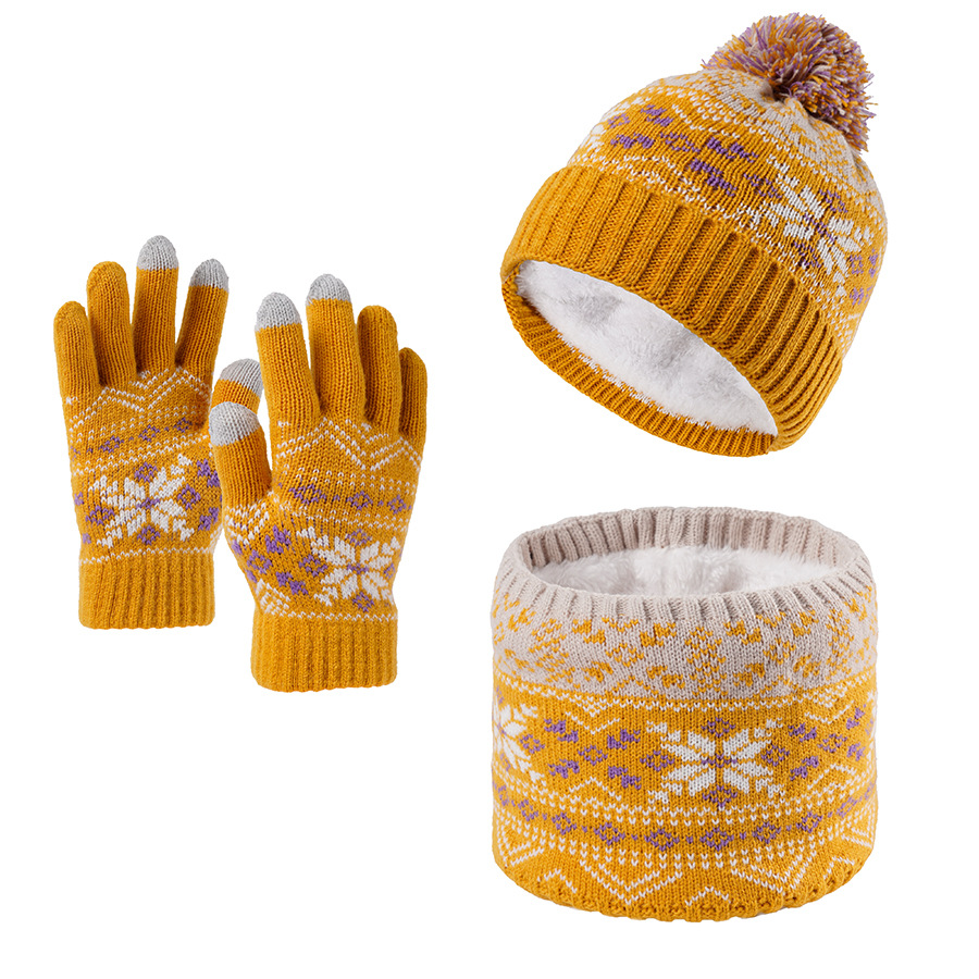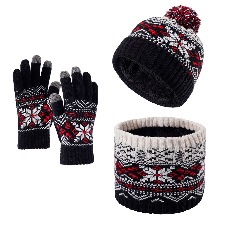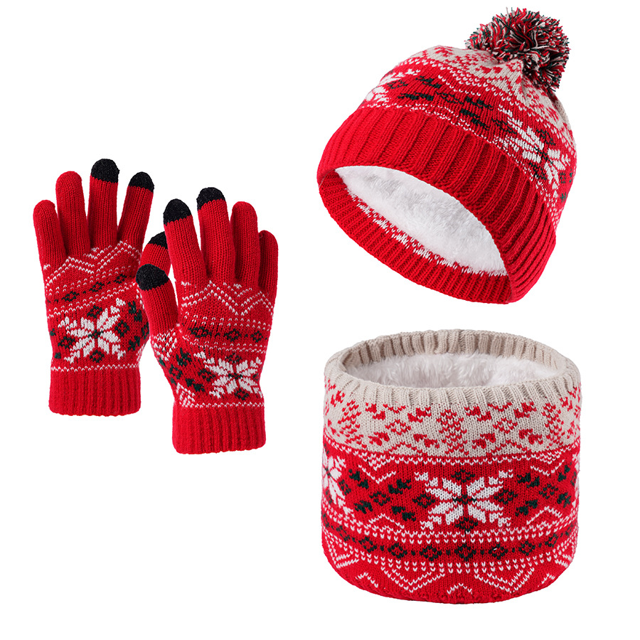 크로스보더 벨벳 넥 가드 어린이 니트 모자 스카프 장갑 새로운 따뜻한 어린이 눈송이 3피스 세트