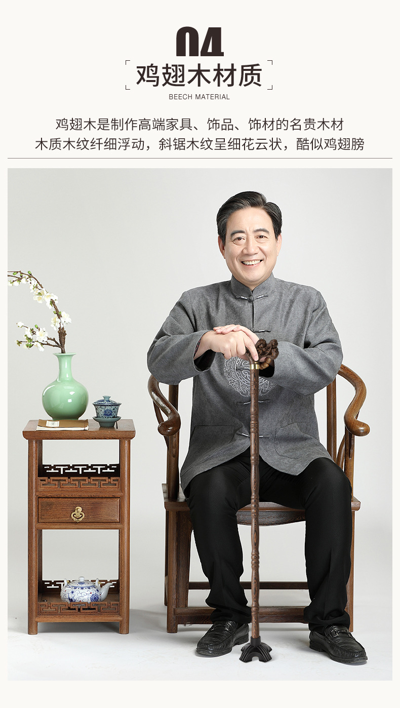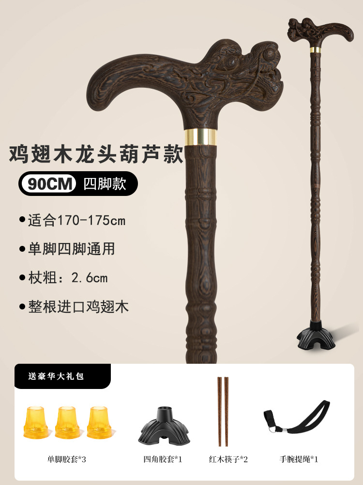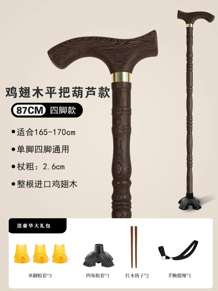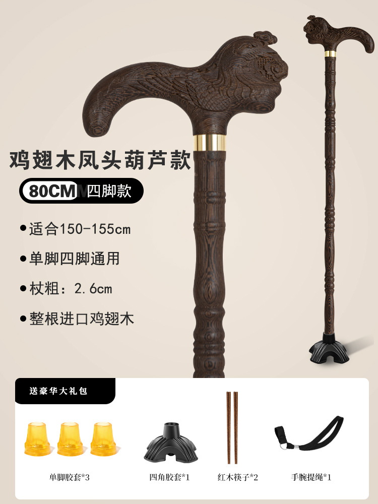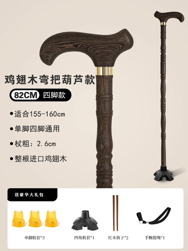 노인을 위한 검은색 치킨윙 원목 지팡이, 미끄럼 방지 지팡이, 노인을 위한 마호가니 지팡이, 4개의 다리가 있는 나무 손잡이 지팡이
