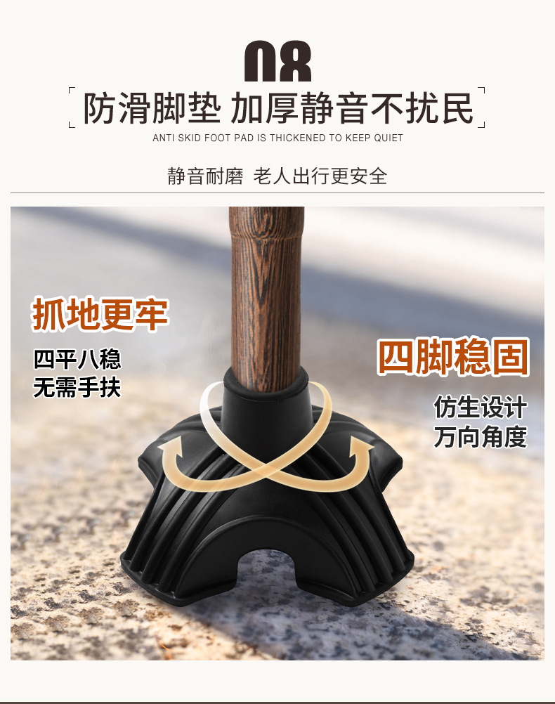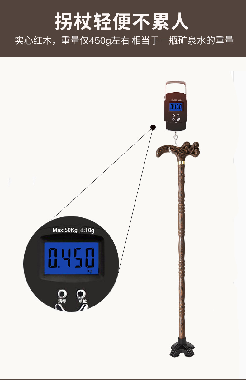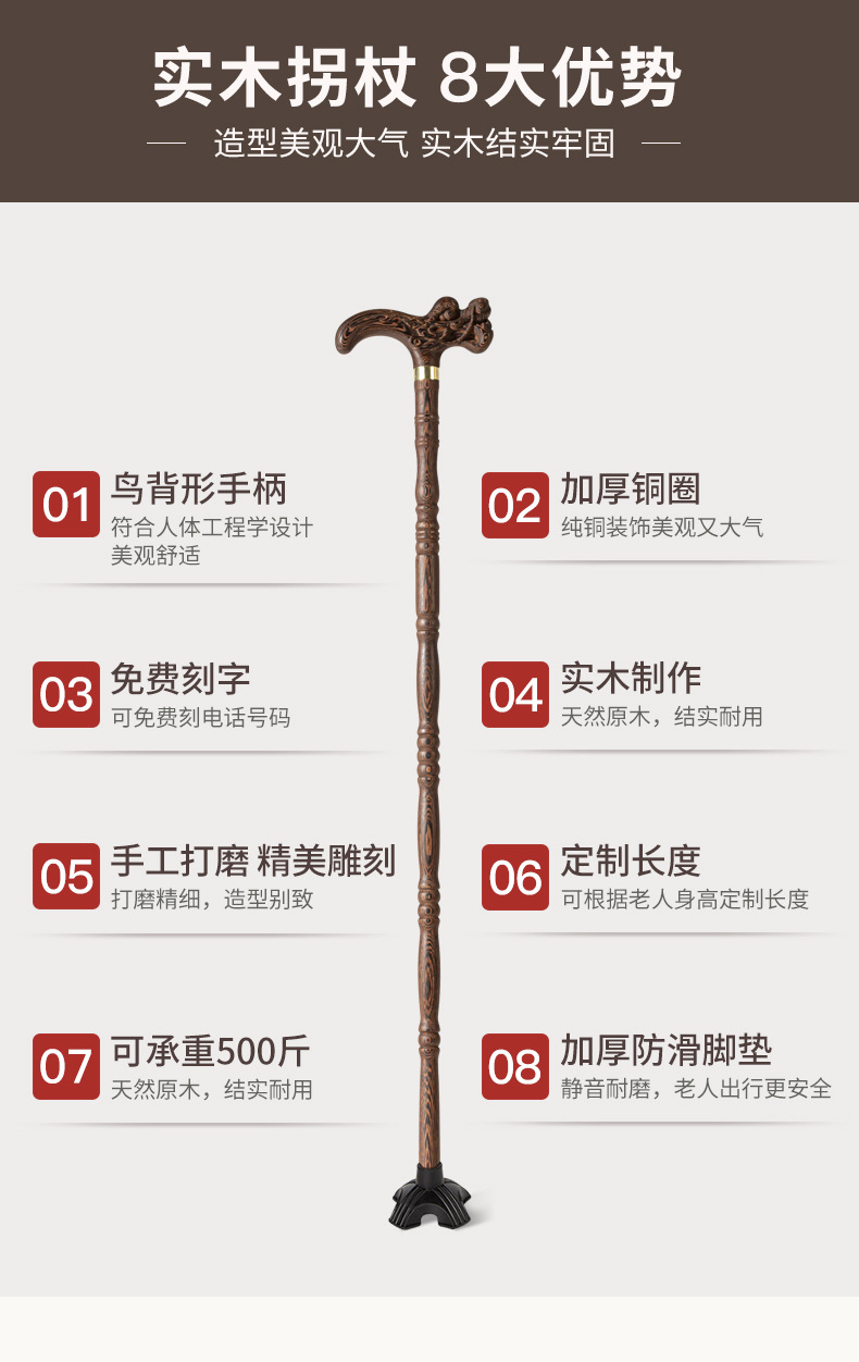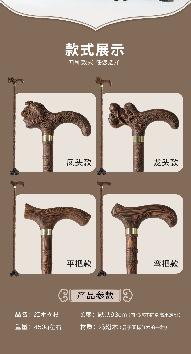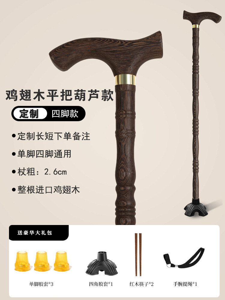 노인을 위한 검은색 치킨윙 원목 지팡이, 미끄럼 방지 지팡이, 노인을 위한 마호가니 지팡이, 4개의 다리가 있는 나무 손잡이 지팡이