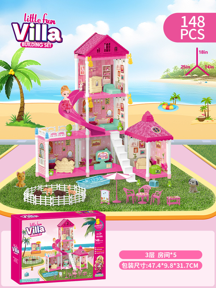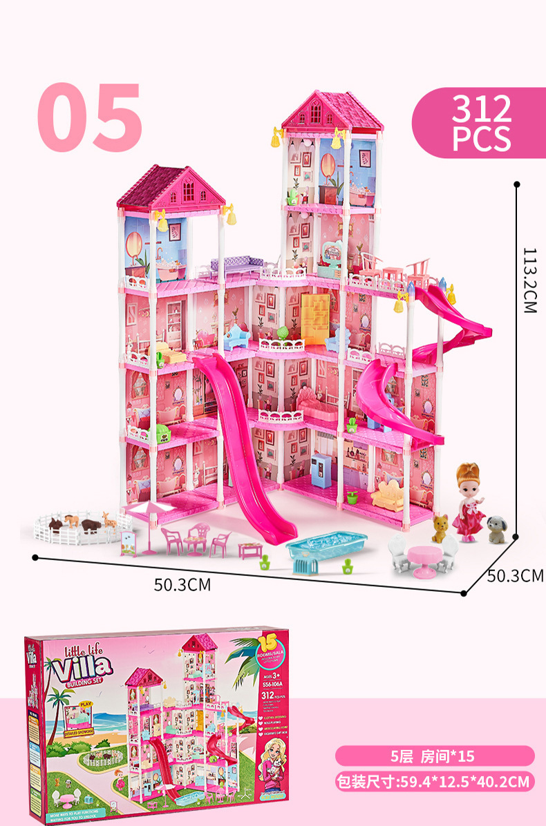 국경 공주 성 장난감 집 소녀 놀이 집 인형 세트 시뮬레이션 빌라 DIY 교육 조립 장난감