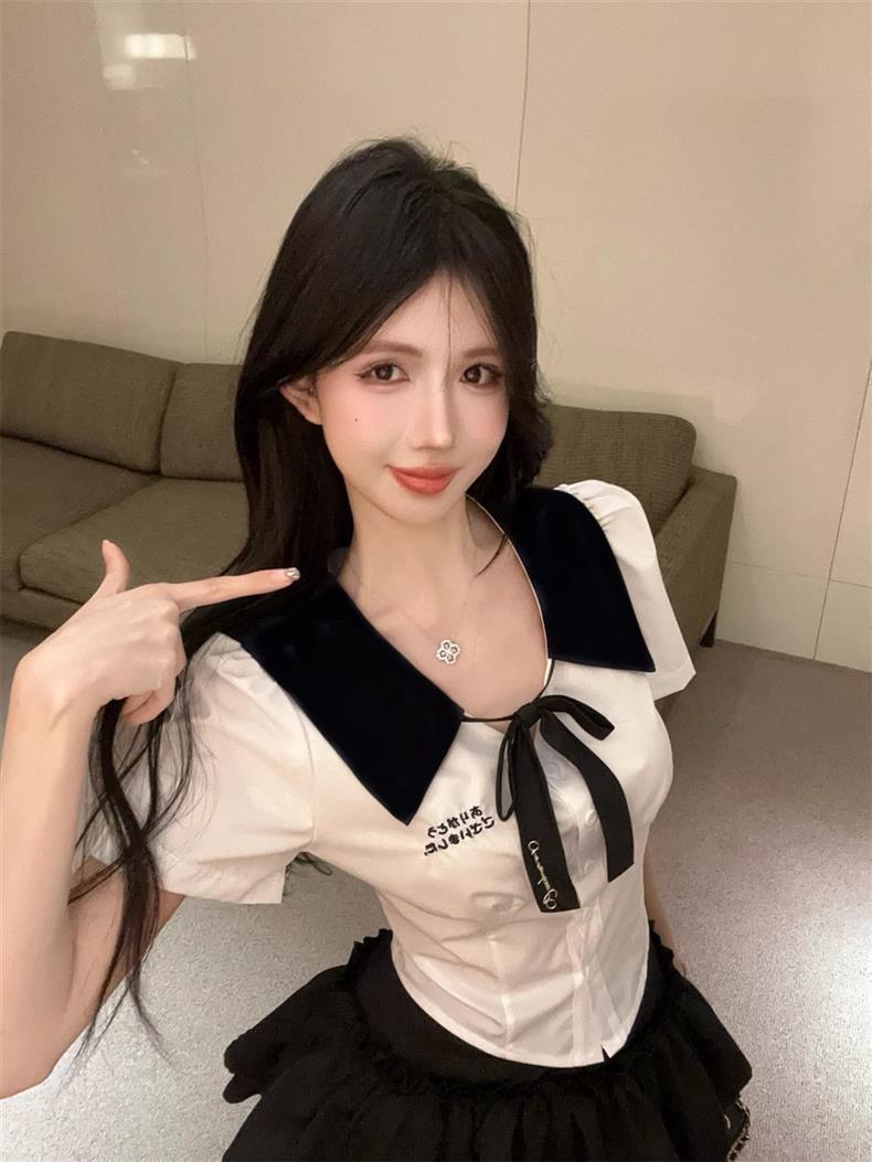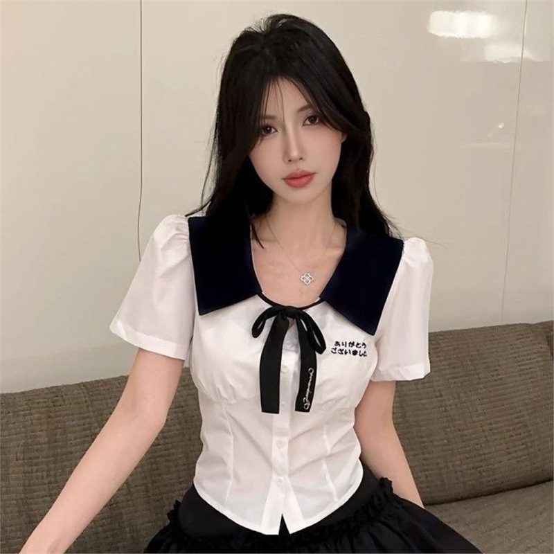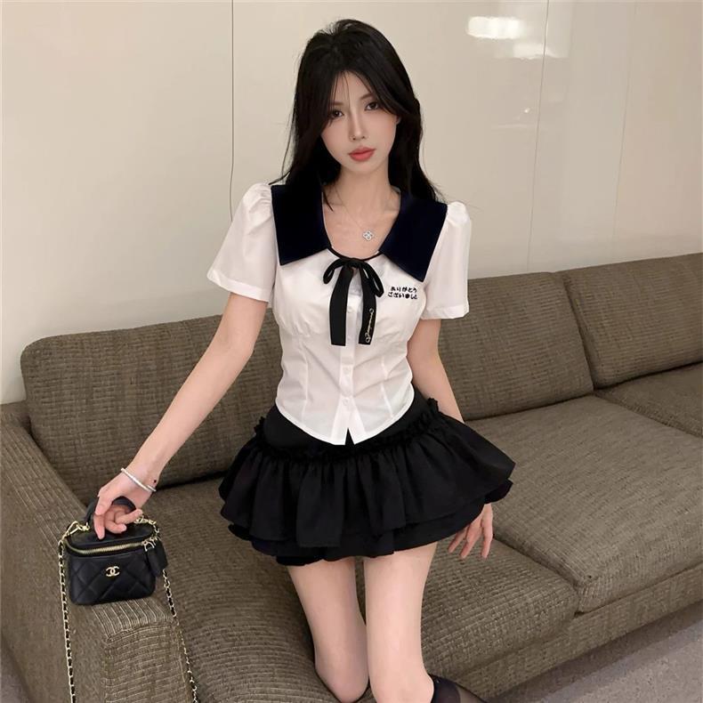 순수 욕망 대학 스타일 JK 유니폼 세트 여성 여름 쇼트 탑 하이 허리 케이크 바지 스커트 나비 넥타이 3 피스 세트스토어 가기