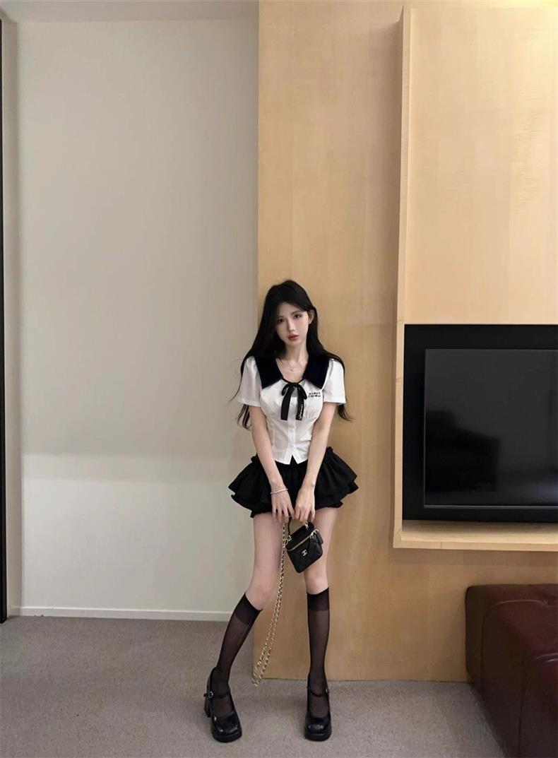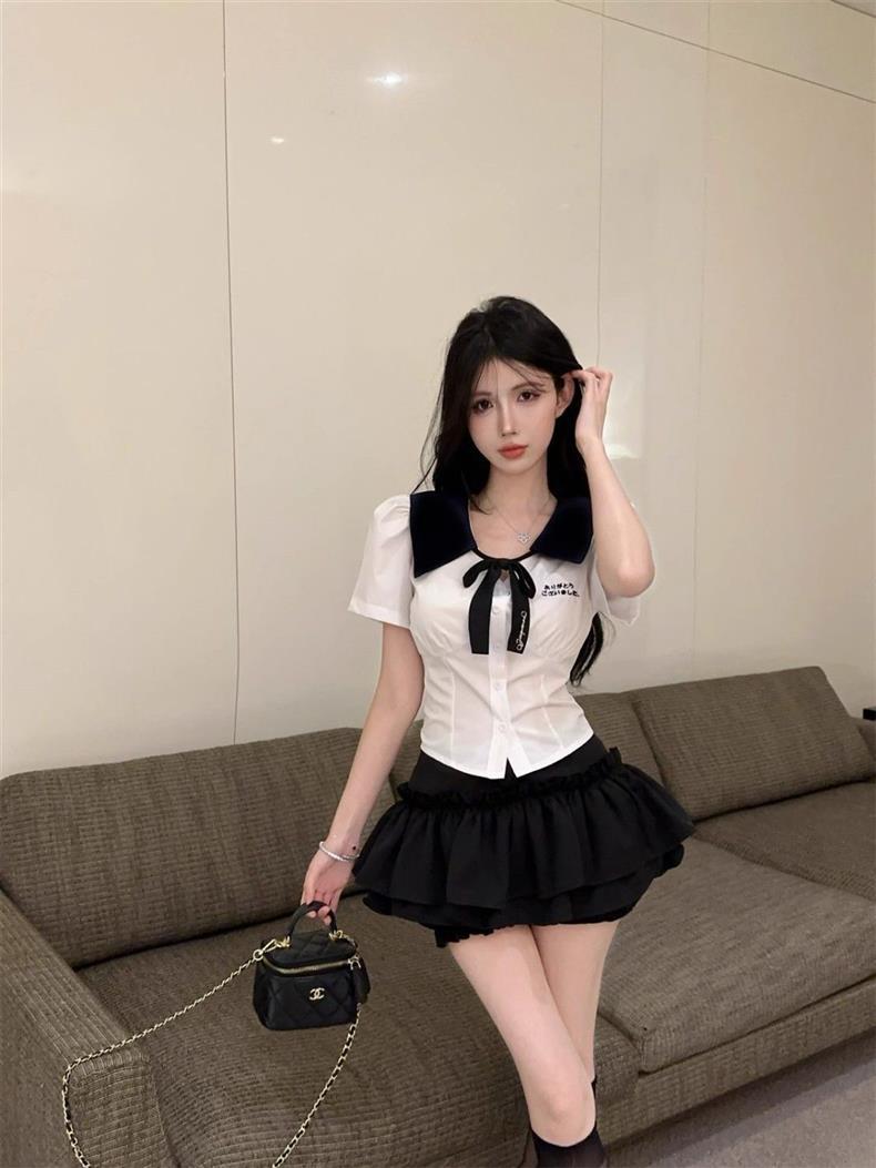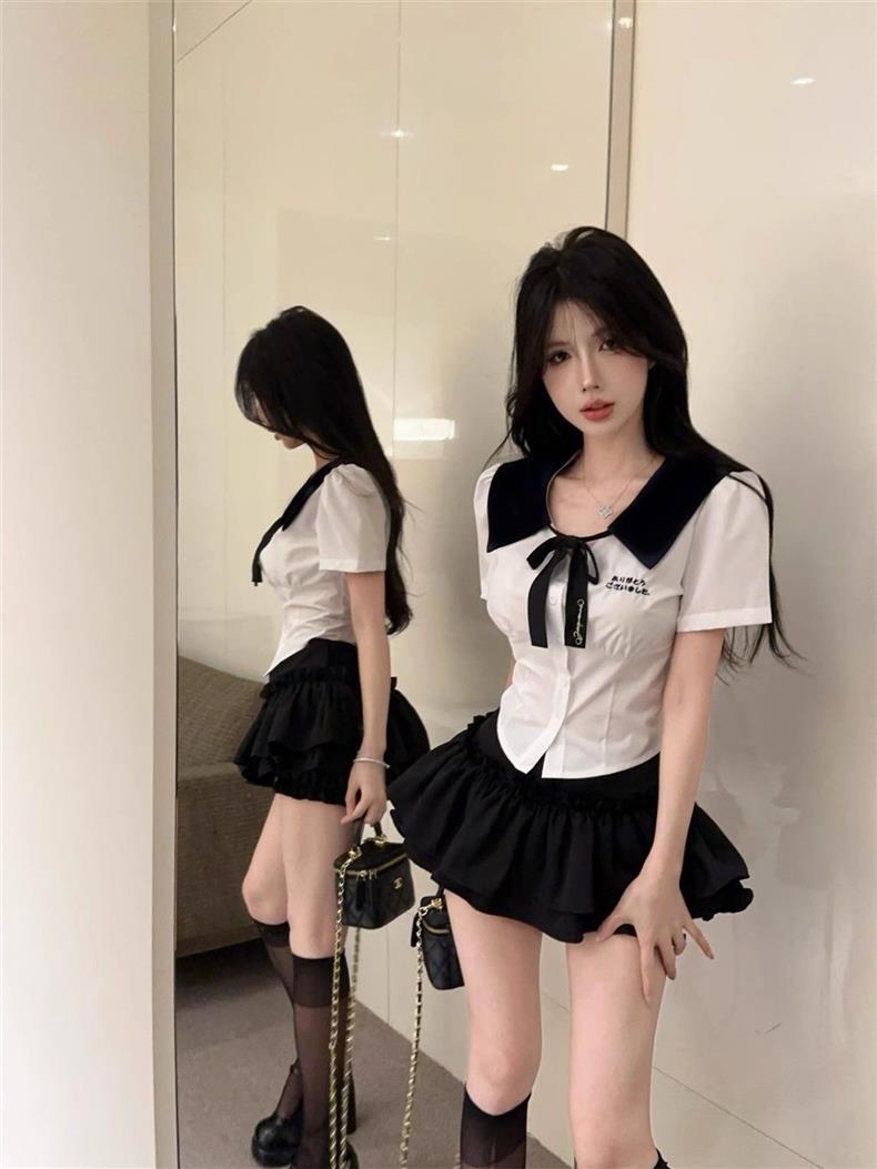 • [3종세트] 상의 + 나비넥타이 + 블랙 팬츠 스커트