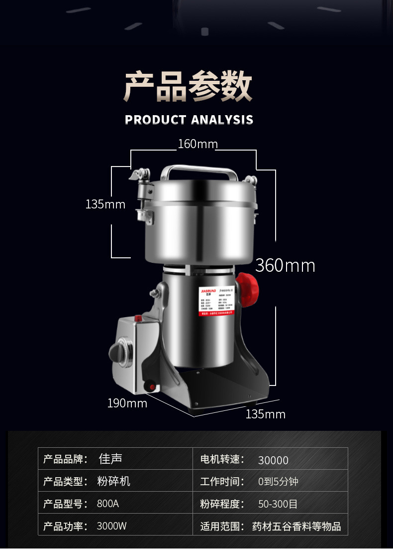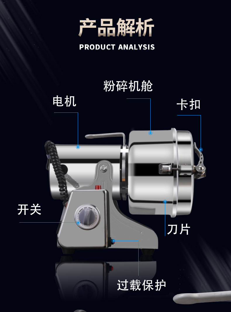 2500g 대용량 다기능 소형 분쇄기 상업용 분쇄기 가정용 전기 분말 기계
