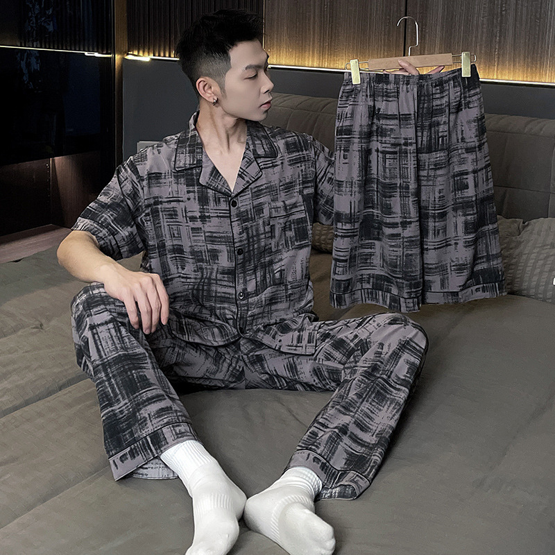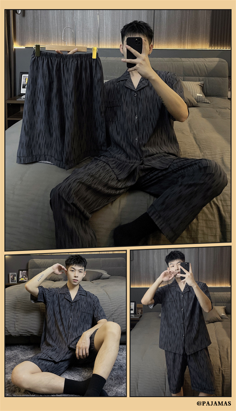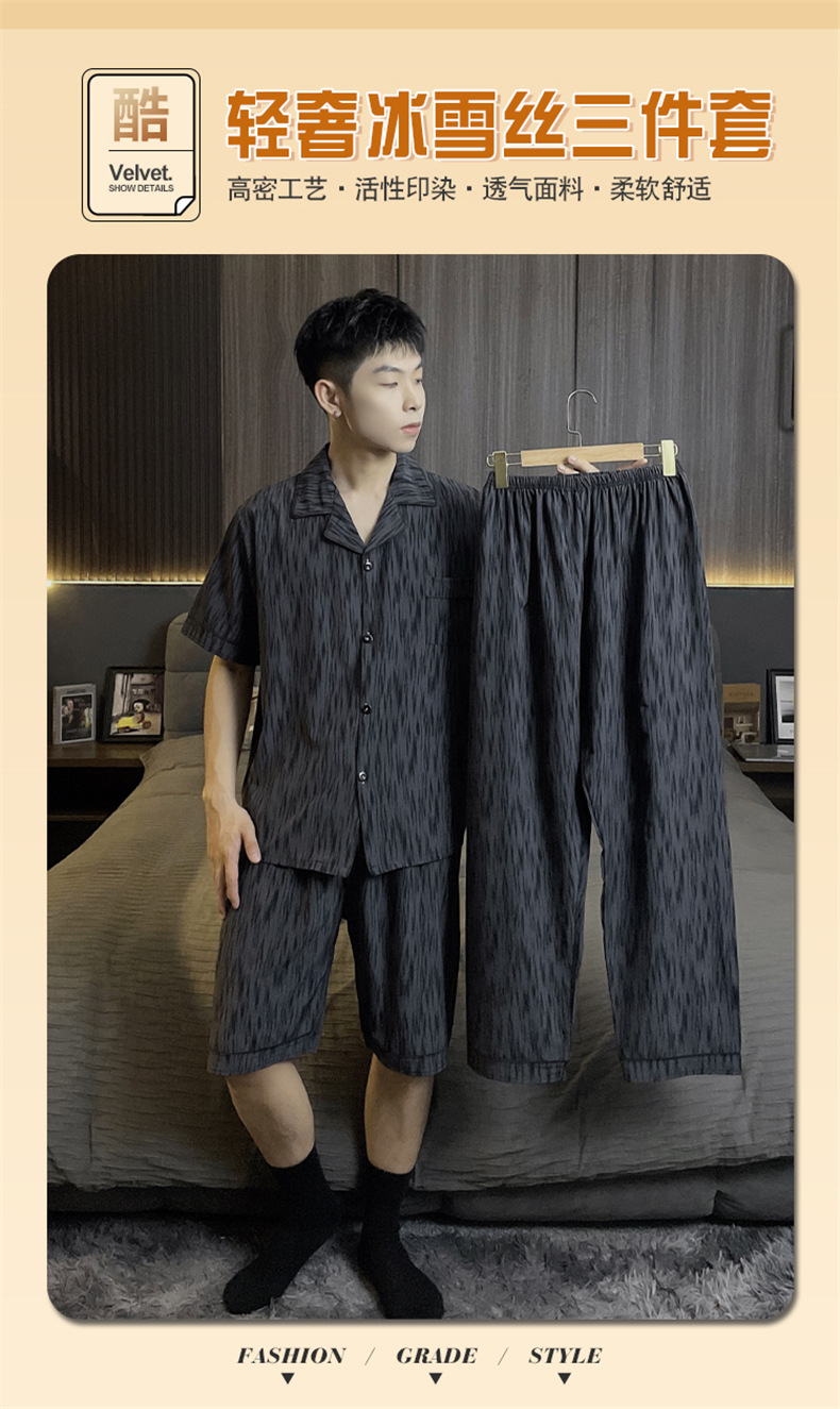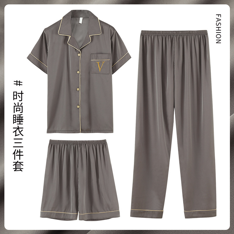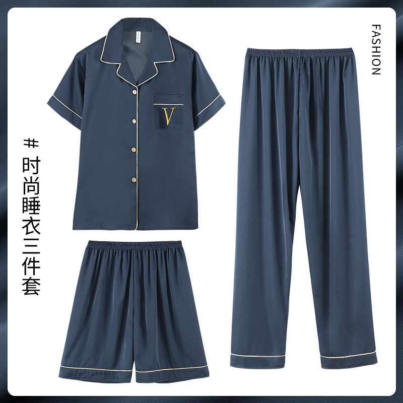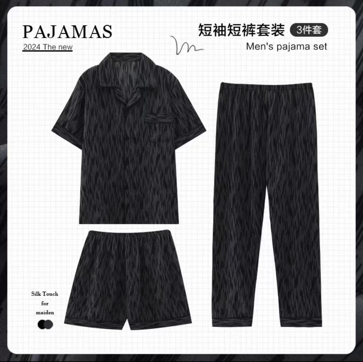 남성용 여름 잠옷, 얇은 아이스 실크 반팔 긴바지 3종 세트, 2026년 신상, 큰 사이즈 남성 홈웨어, 고급스러운 느낌스토어 가기