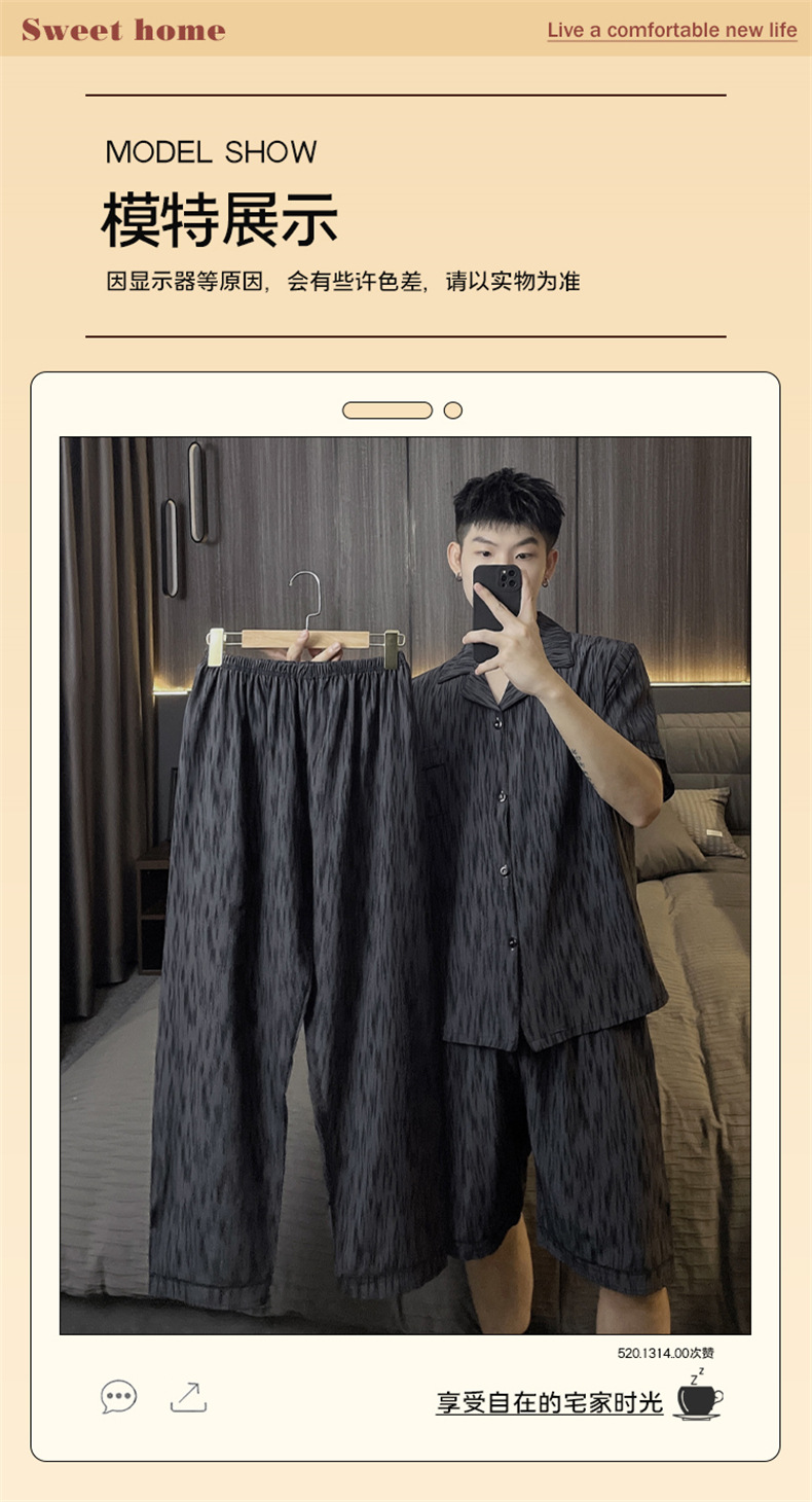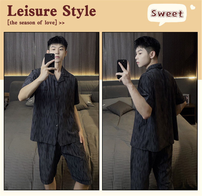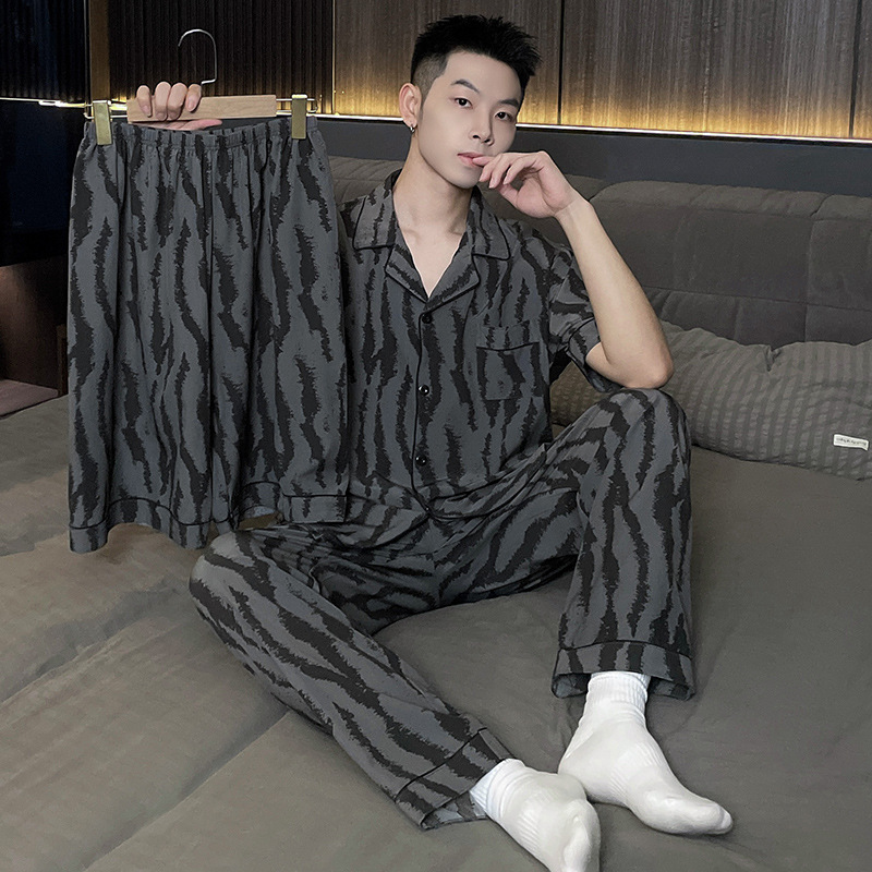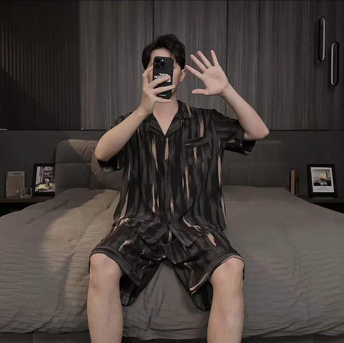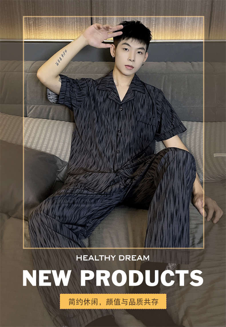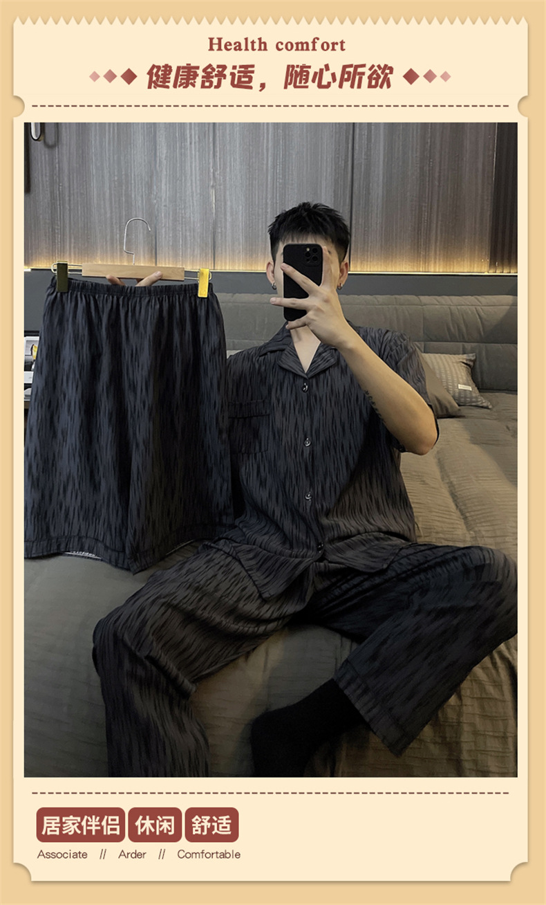 남성용 여름 잠옷, 얇은 아이스 실크 반팔 긴바지 3종 세트, 2026년 신상, 큰 사이즈 남성 홈웨어, 고급스러운 느낌스토어 가기