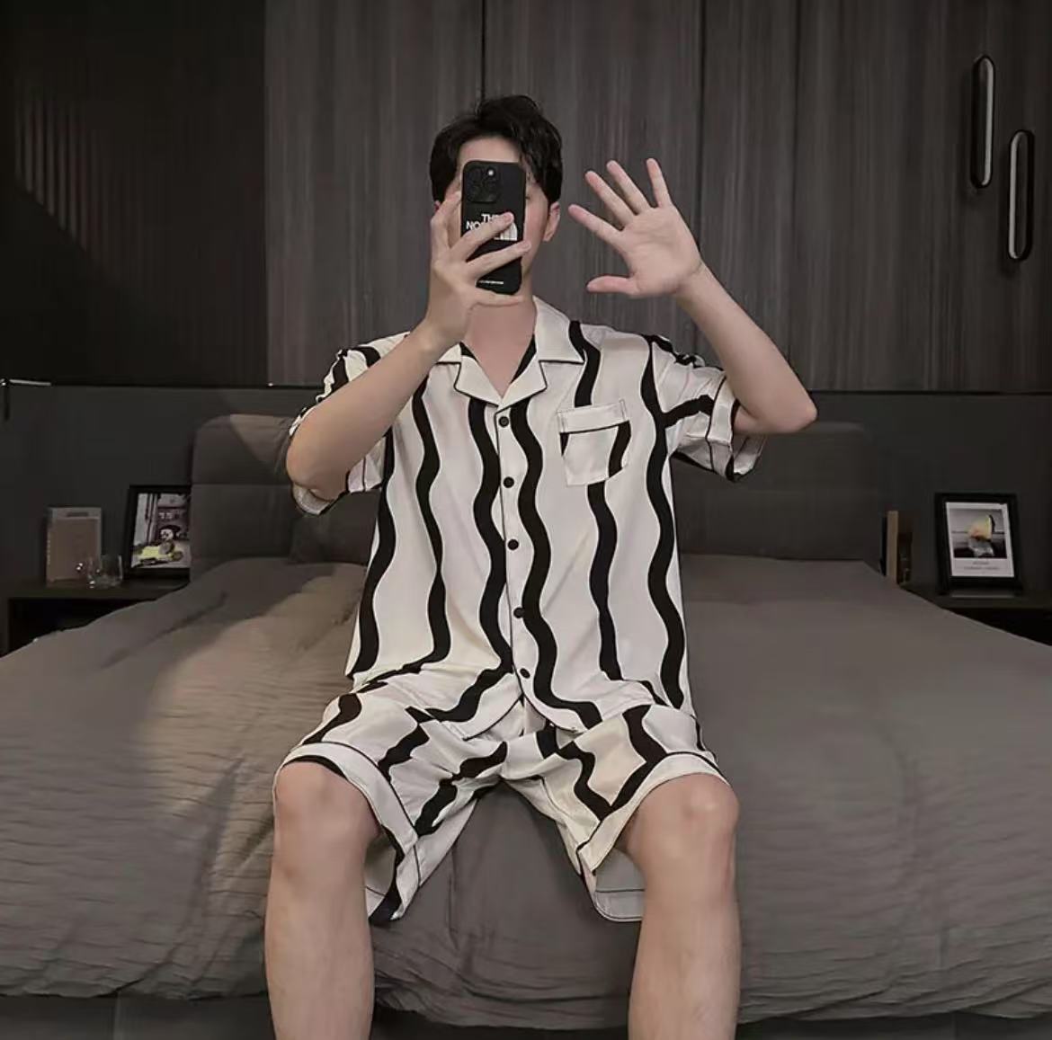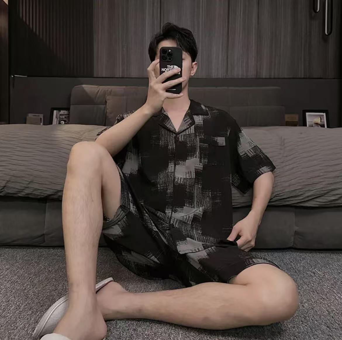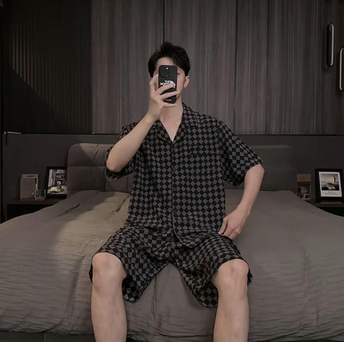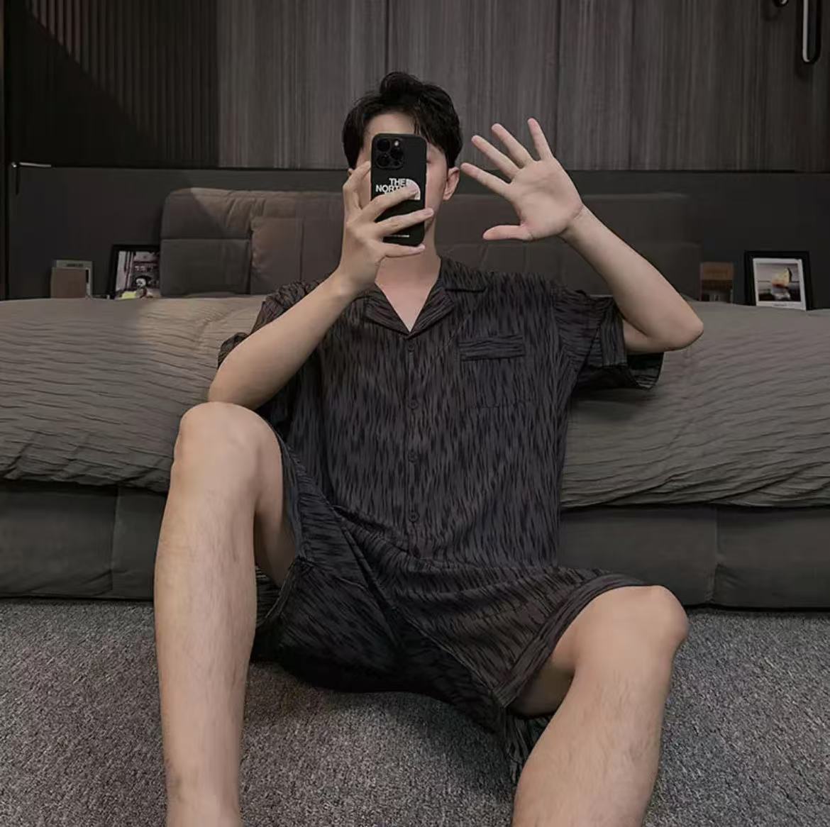 남성용 여름 잠옷, 얇은 아이스 실크 반팔 긴바지 3종 세트, 2026년 신상, 큰 사이즈 남성 홈웨어, 고급스러운 느낌스토어 가기