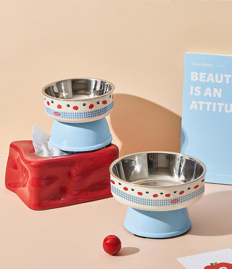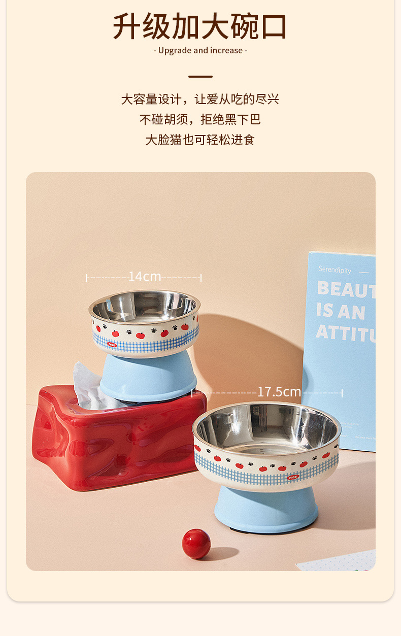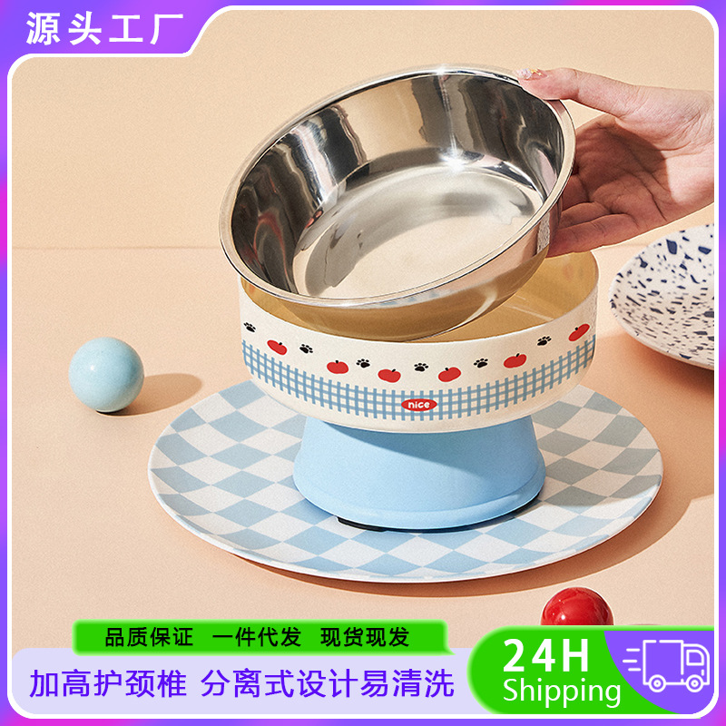 애완 동물 스테인레스 스틸 높은 그릇 만화 패턴 단일 그릇 안티 검은 입 보호 경추 고양이 식기 대구경 마시는 그릇스토어 가기