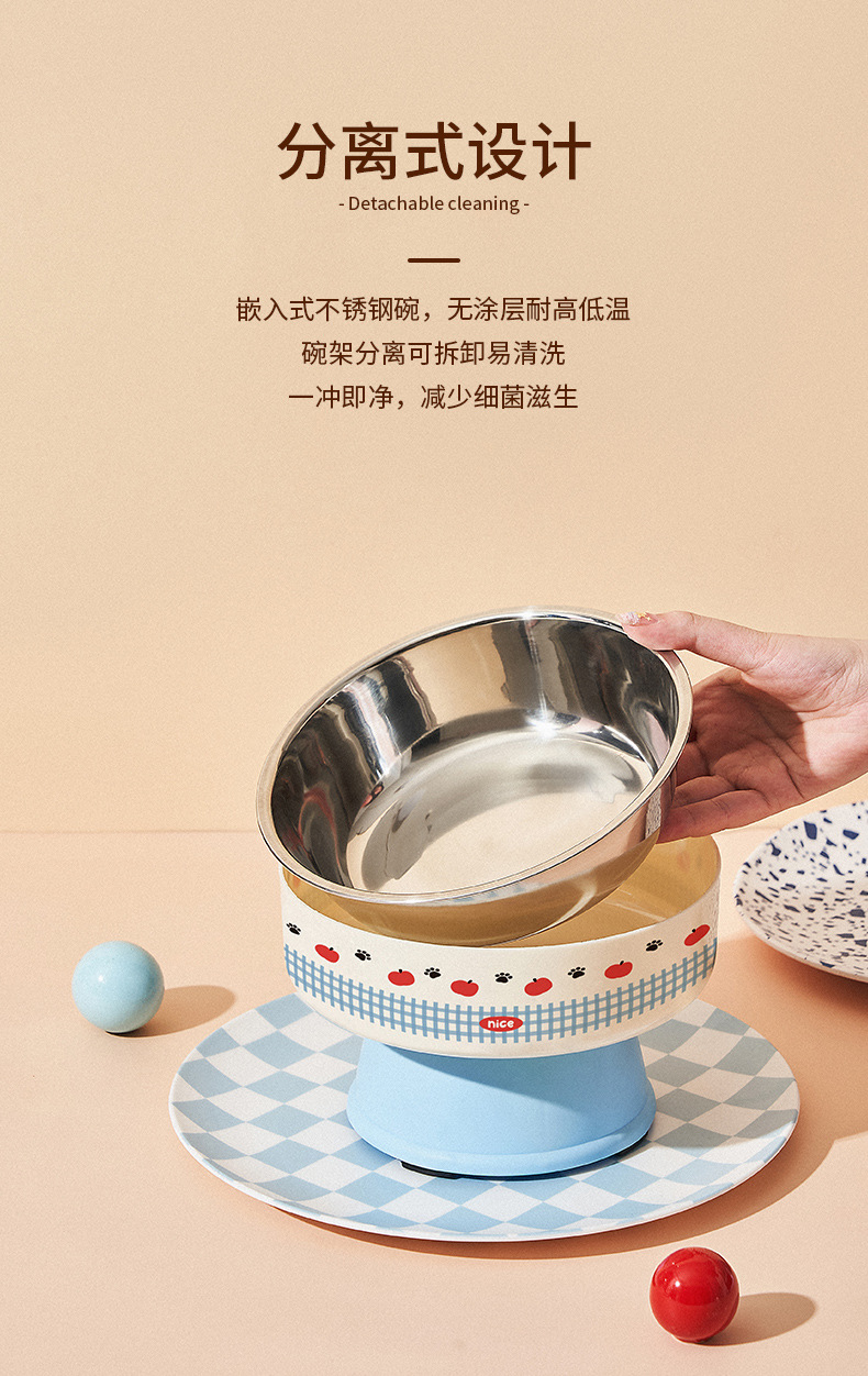 애완 동물 스테인레스 스틸 높은 그릇 만화 패턴 단일 그릇 안티 검은 입 보호 경추 고양이 식기 대구경 마시는 그릇