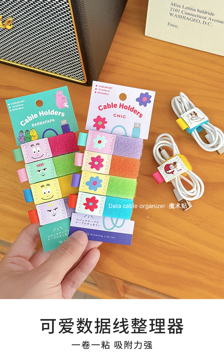 귀여운 만화 코코 소스 데이터 케이블 주최자 다기능 와이어 주최자 컴퓨터 케이블 헤드셋 벨크로 케이블 타이