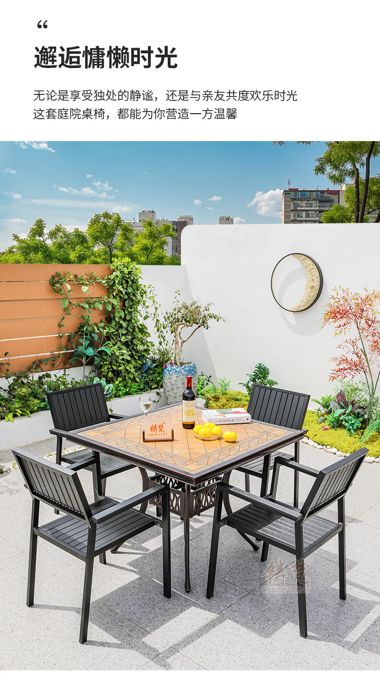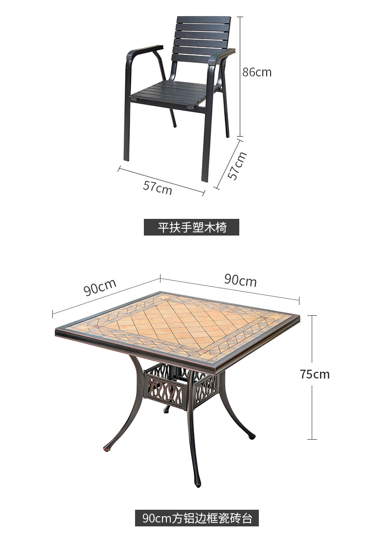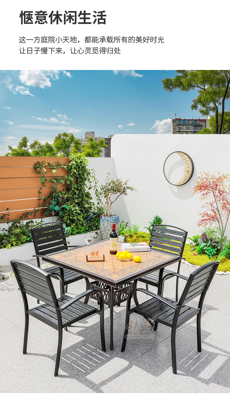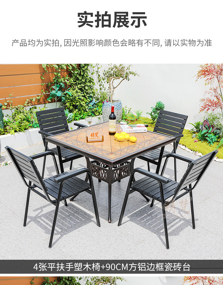 야외 플라스틱 목재 타일 테이블과 의자 안뜰 야외 레저 식탁 정원 야외 발코니 카페 테이블과 의자 조합